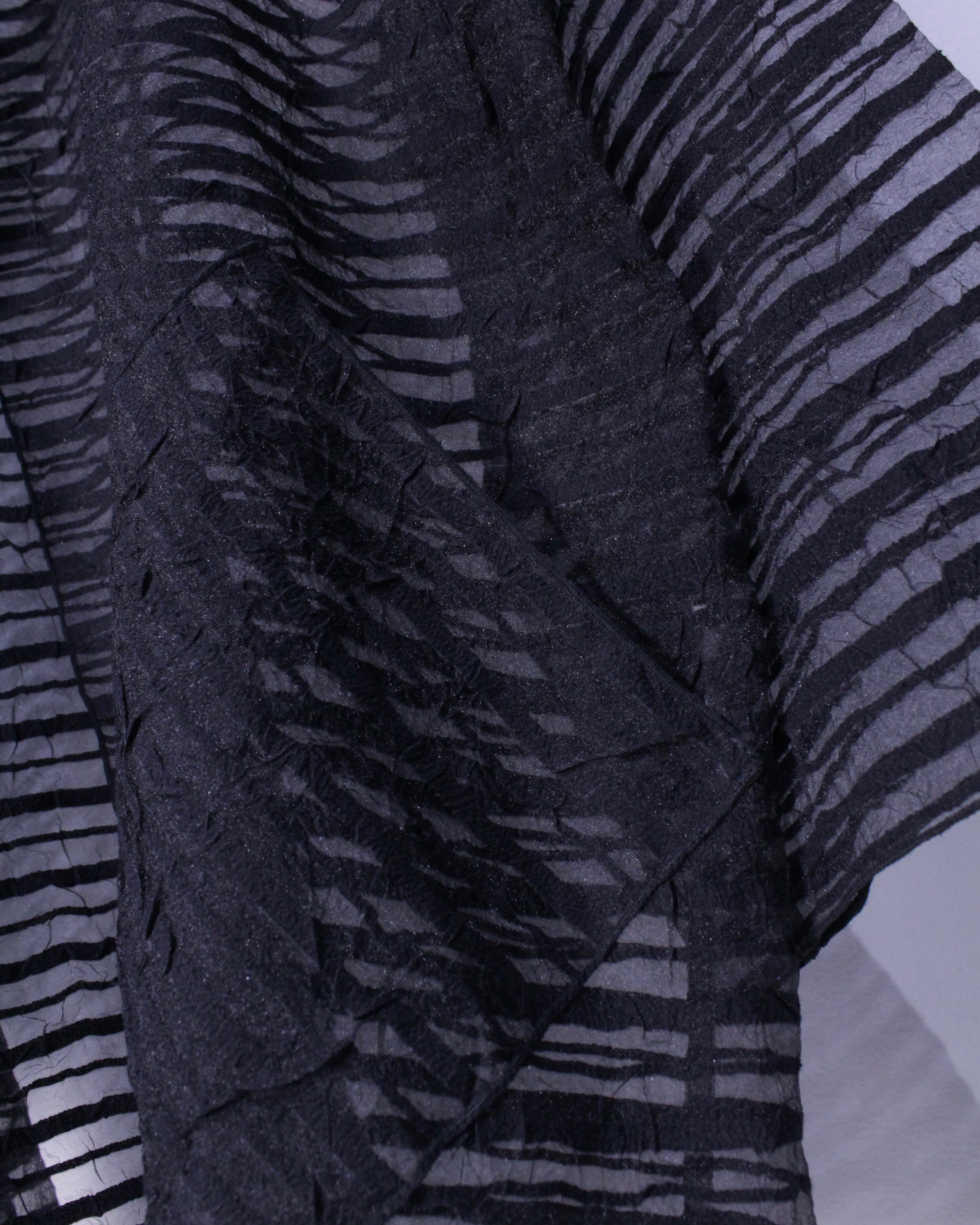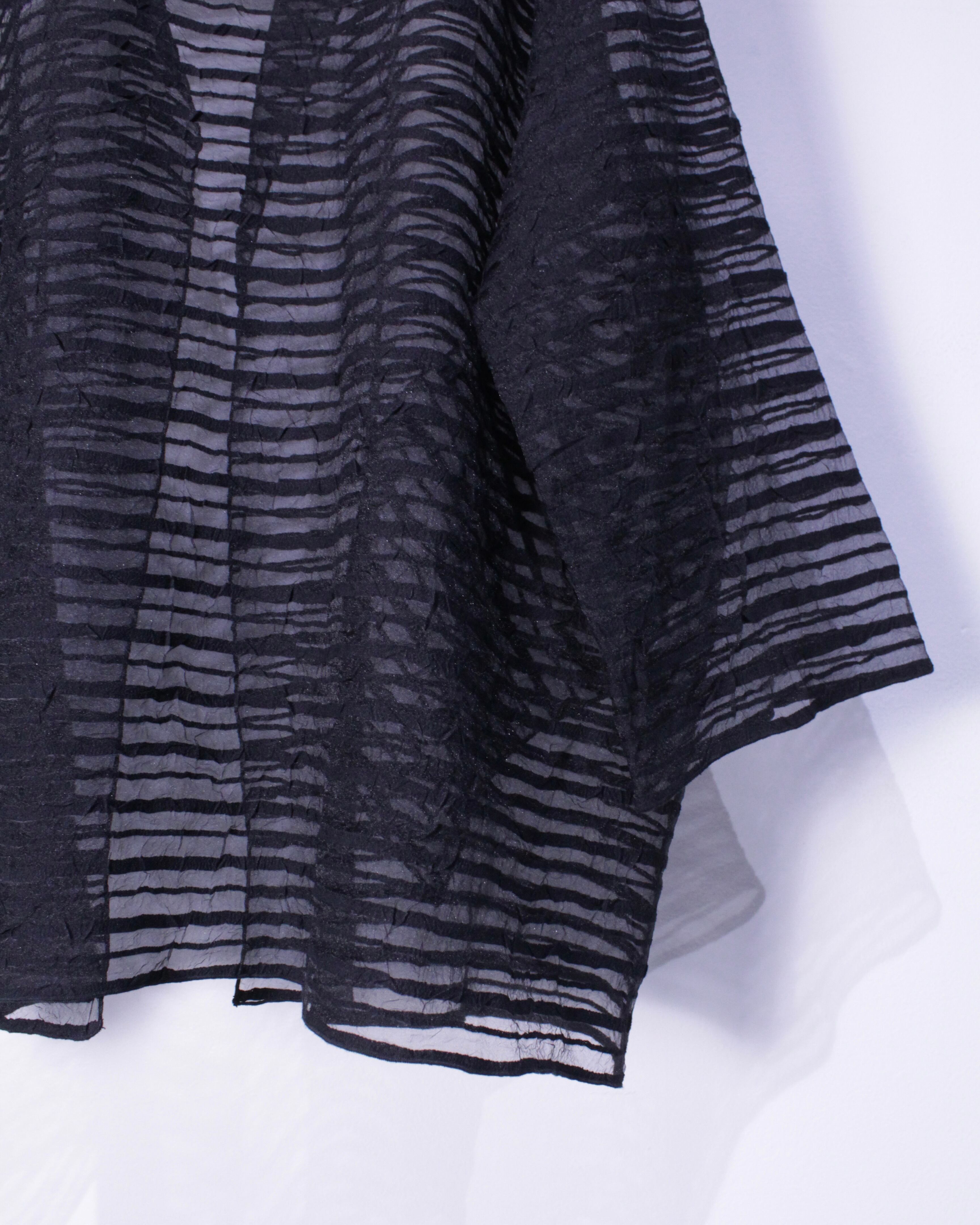 透け感の美しいブラックシアーに、ボティとは異なるテキスタイルをボーダー状に載せた、和と洋のMix感を楽しめるUSA製の逸品。