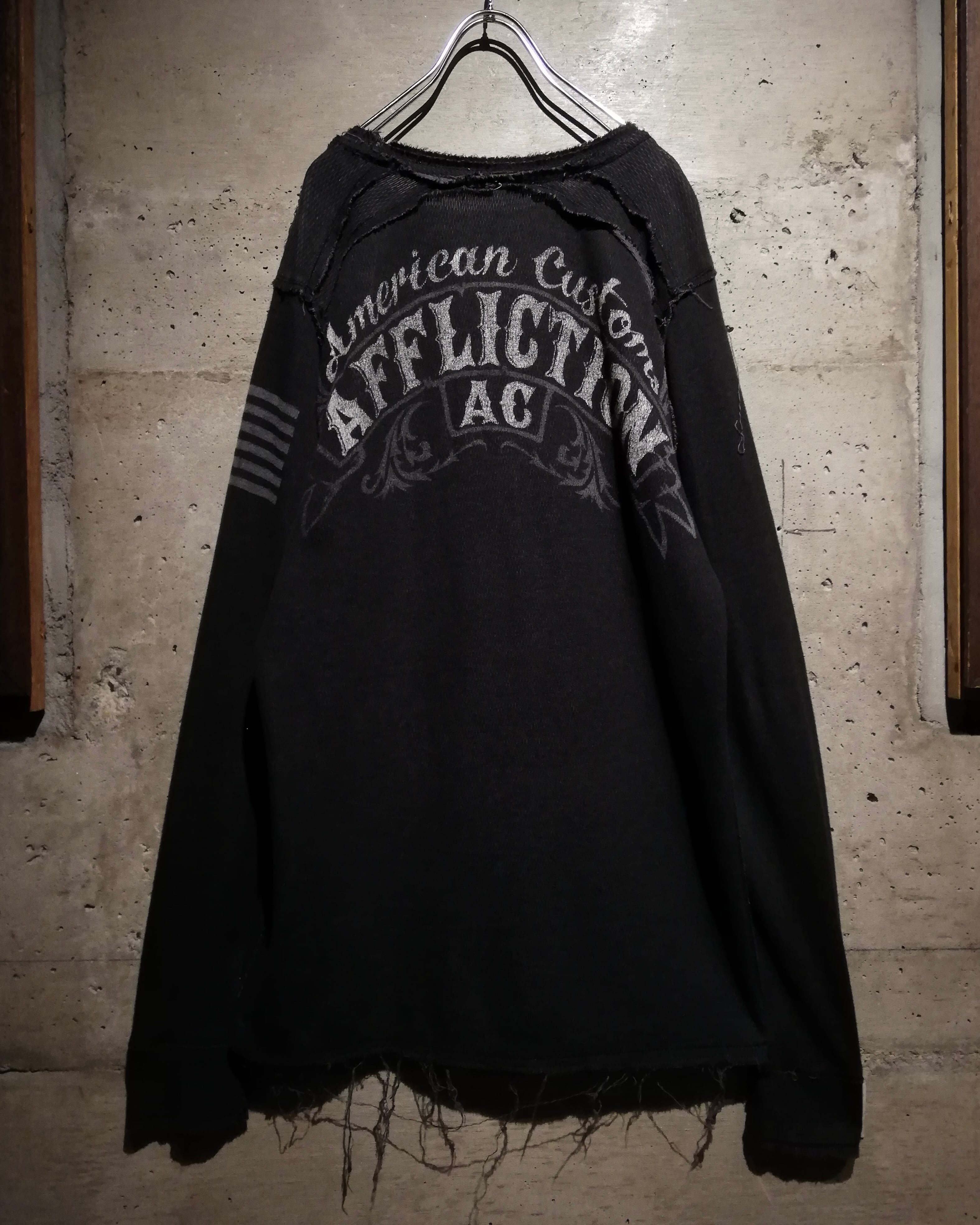 多くのアーティストやアスリートたちを魅了し、ジョシュ・バーネット、チャック・リデル、オジー・オズボーンなどとのコラボレーション実績もあるアメリカンカジュアルブランド"Affliction"より、稀有な1着をご紹介致します。