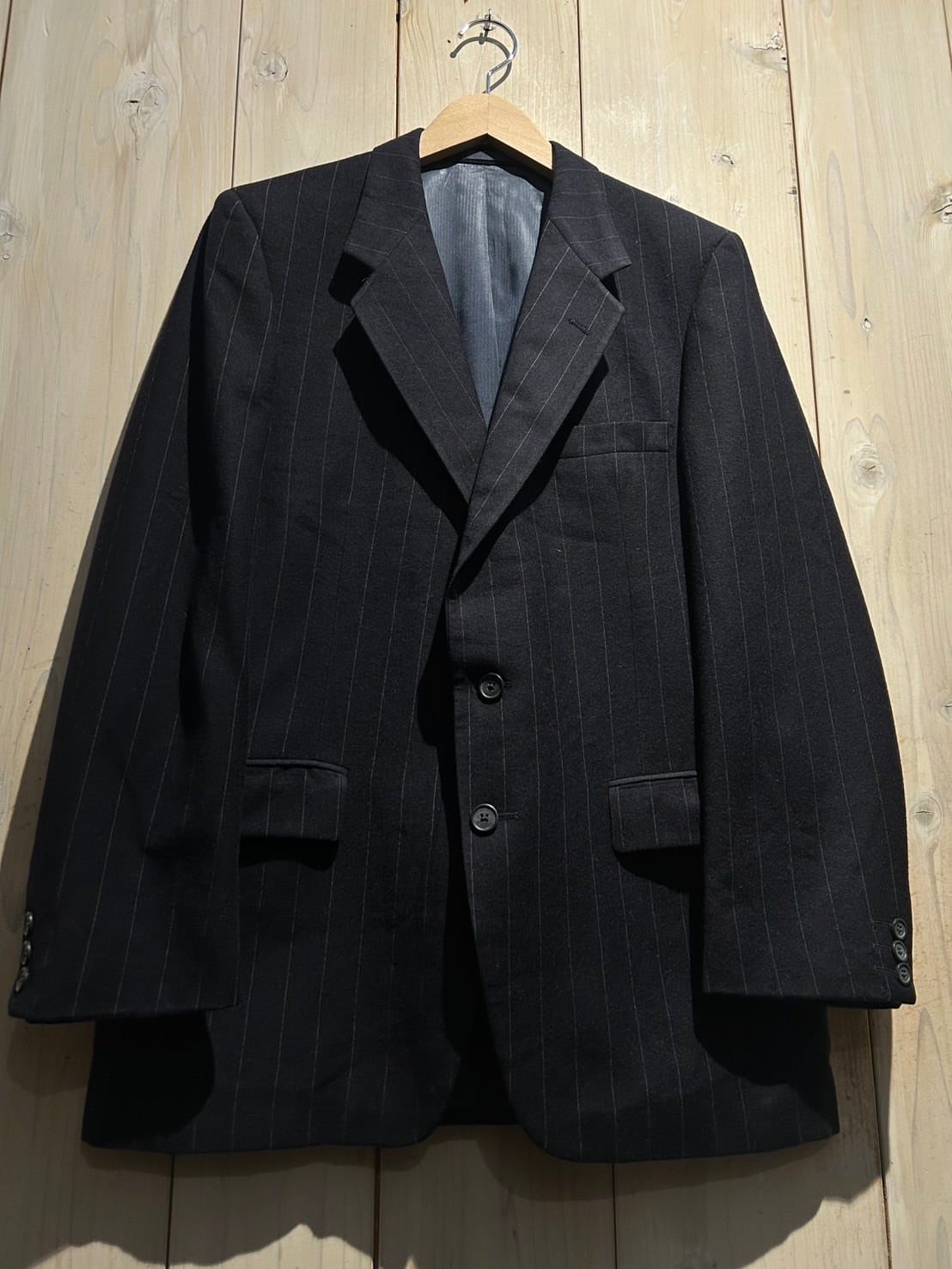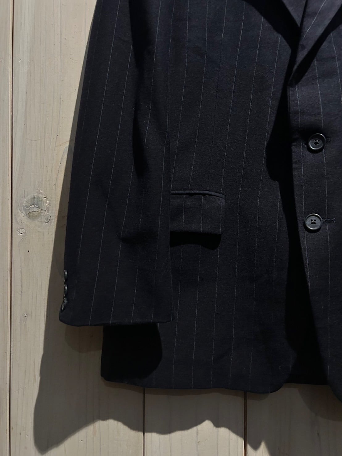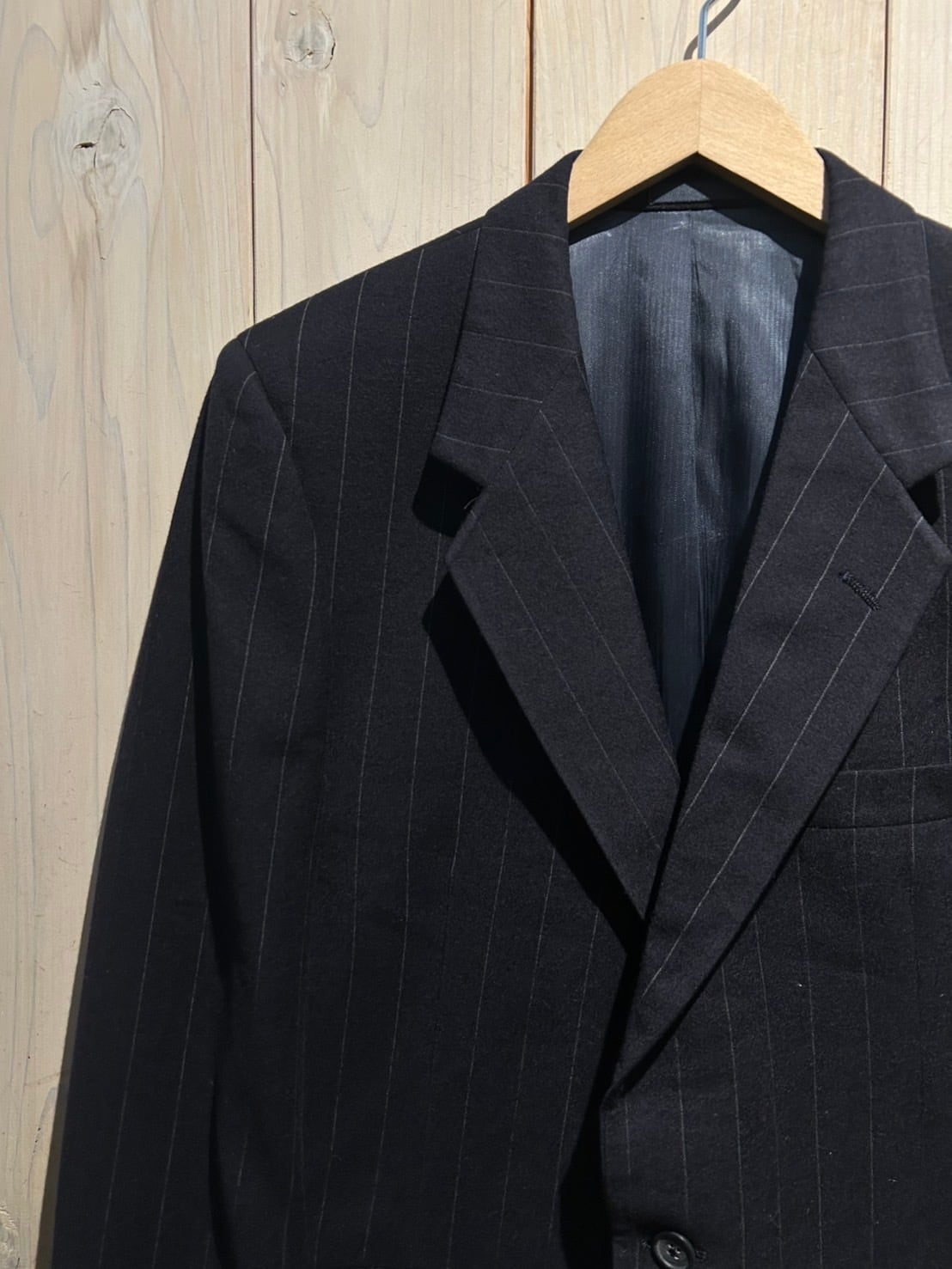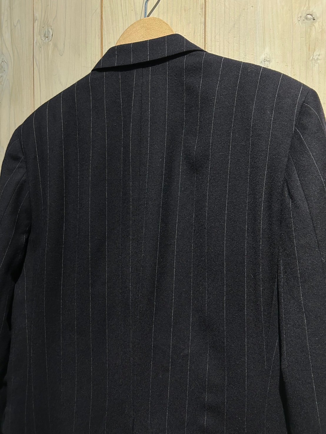 ネイビー×白の配色でストライプを載せたテーラードジャケット。