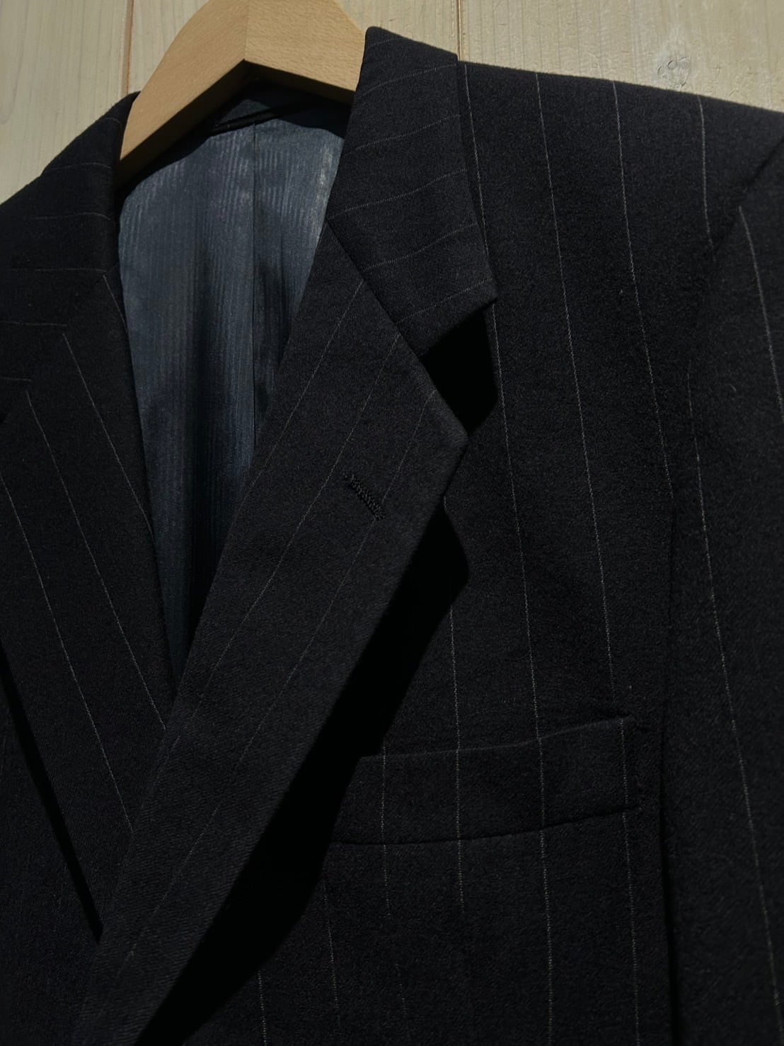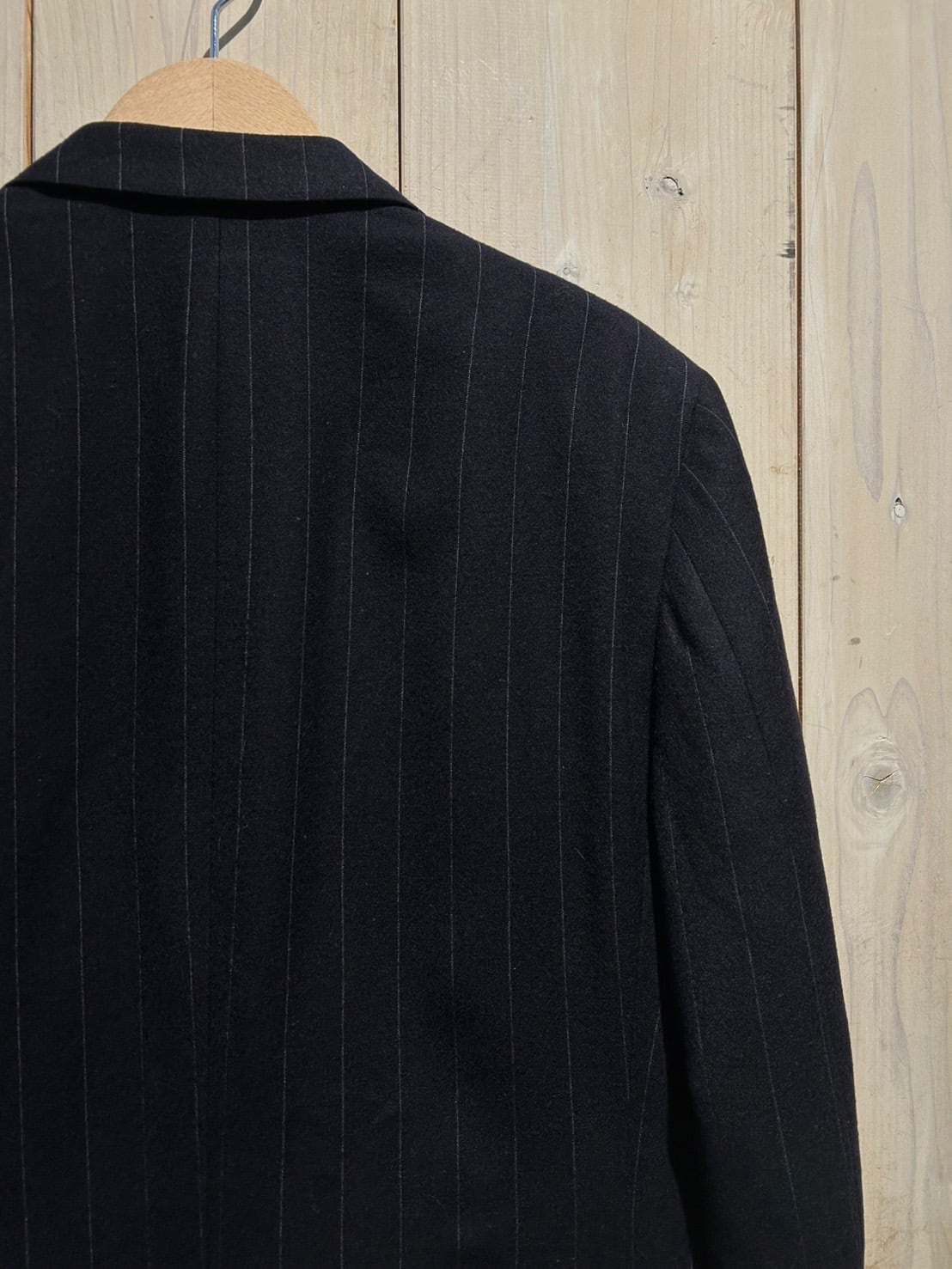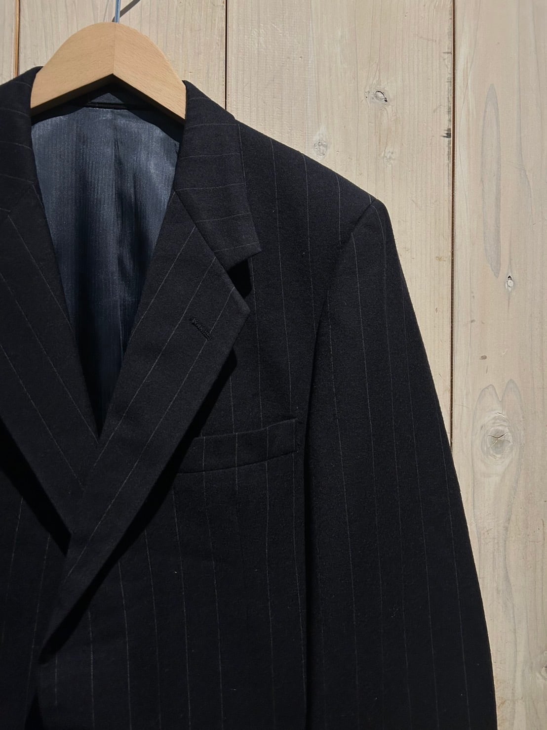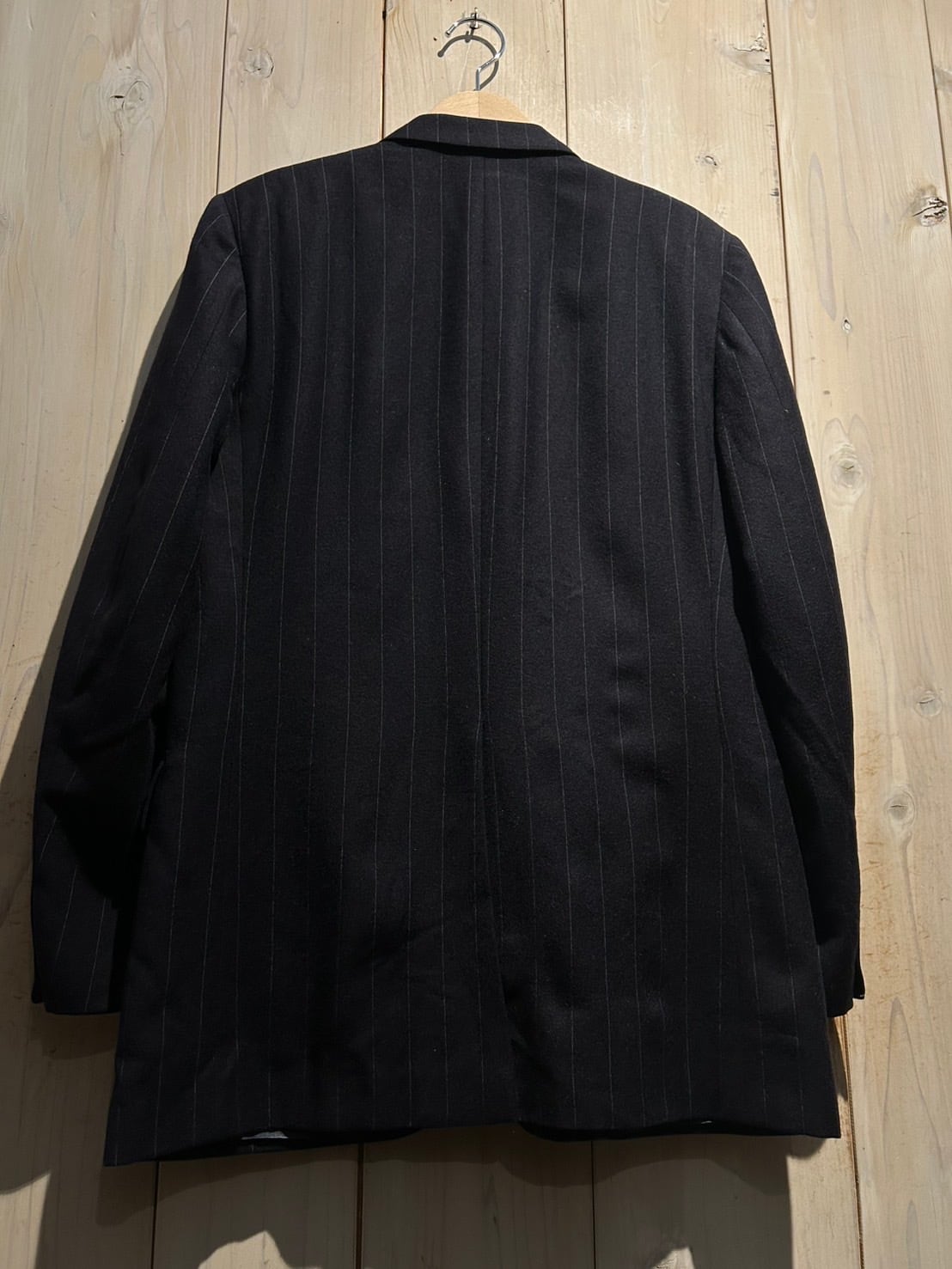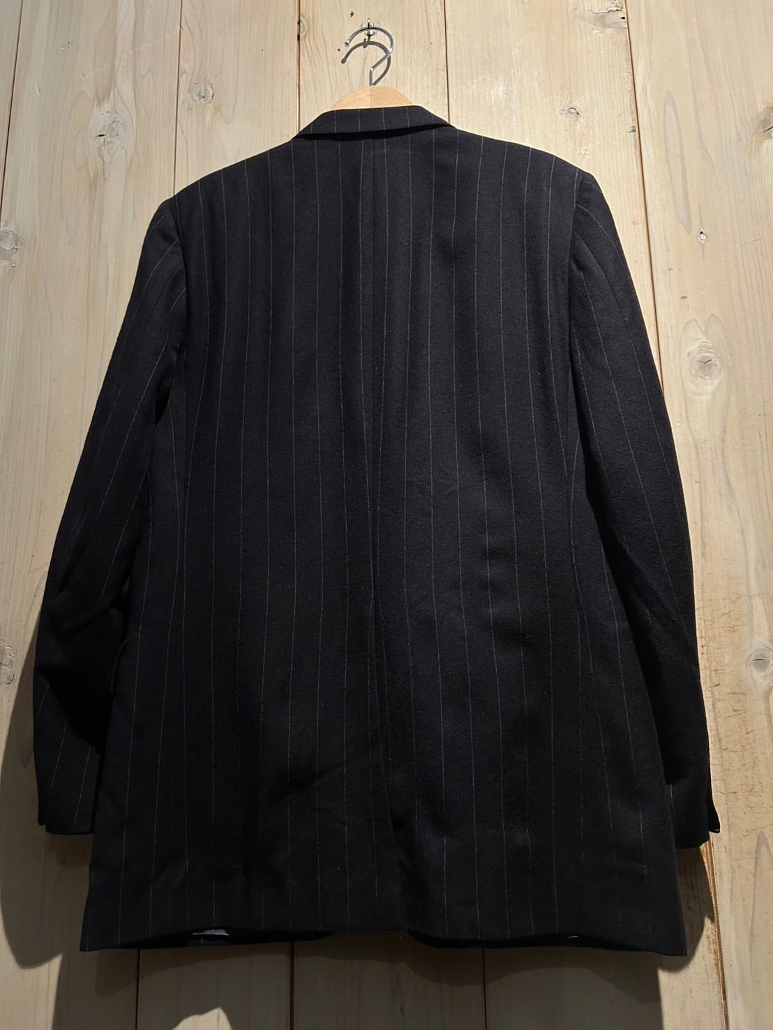 ネイビー×白の配色でストライプを載せたテーラードジャケット。