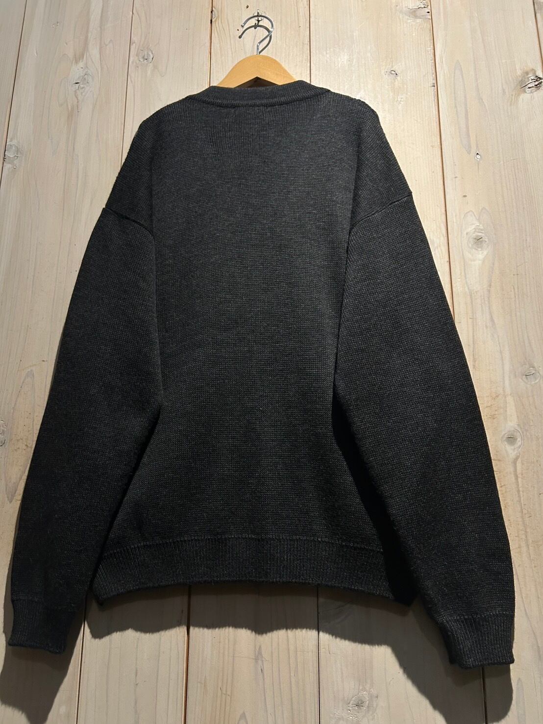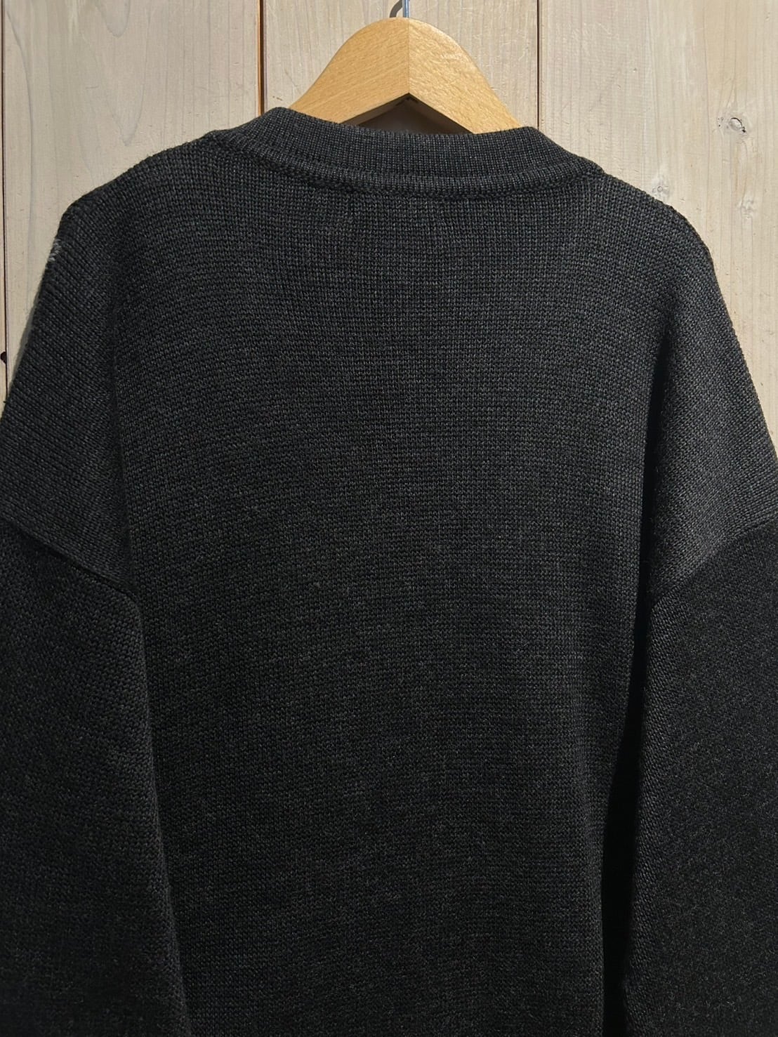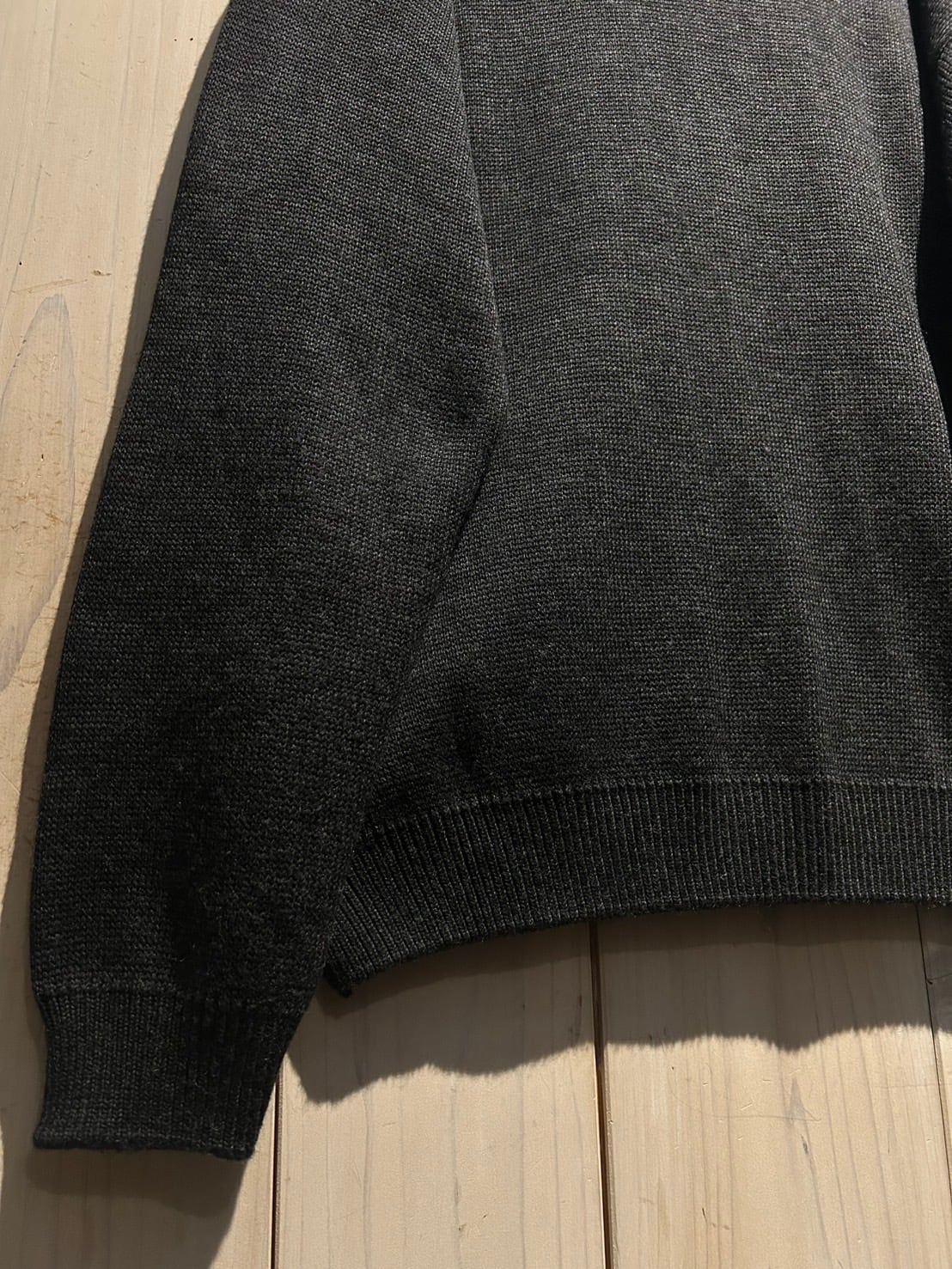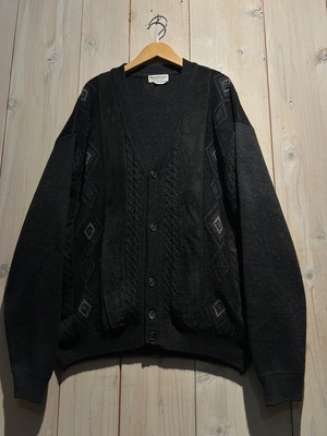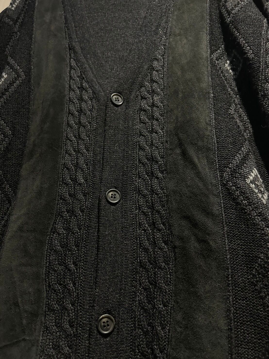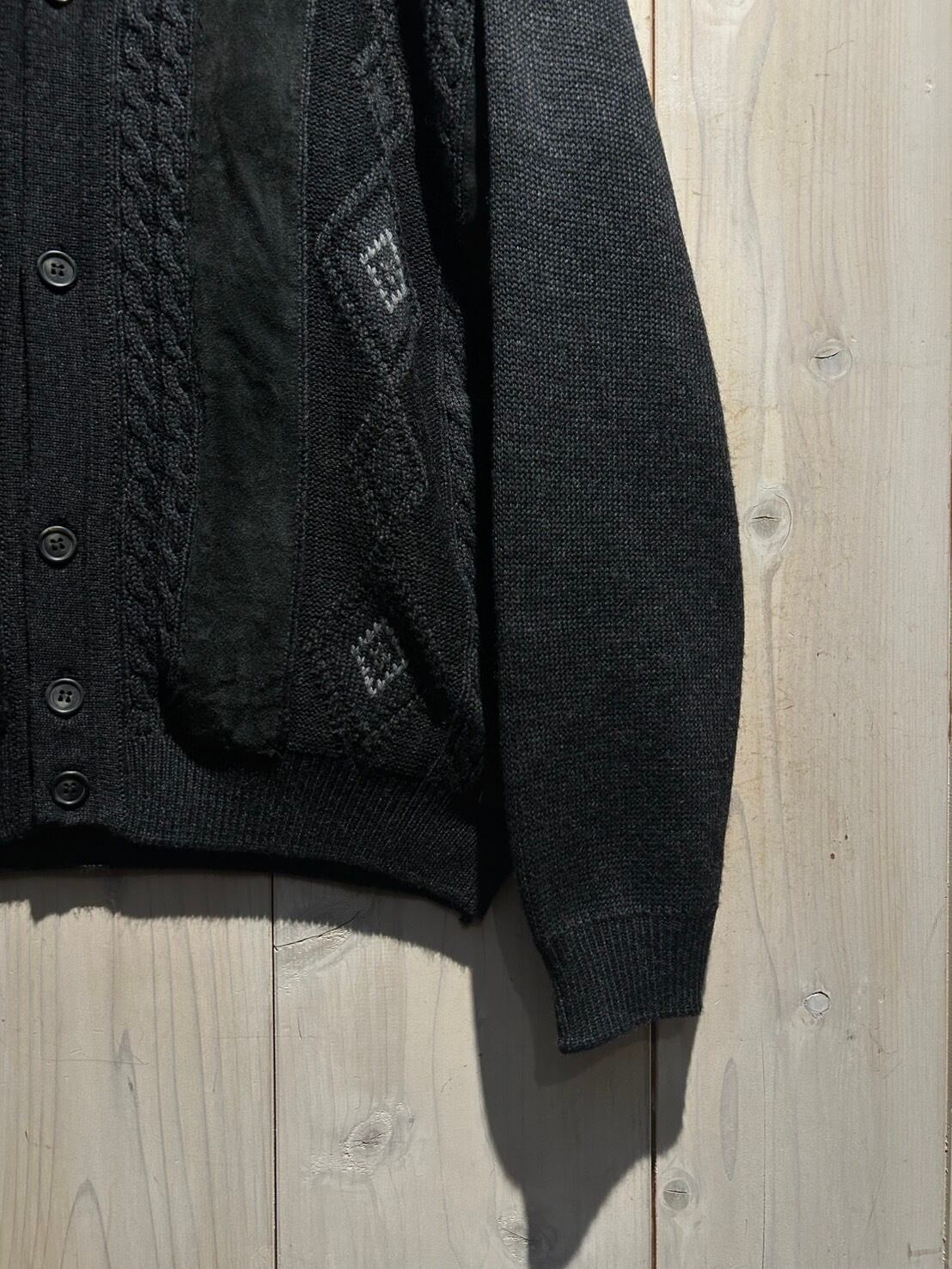 ダークグレーのニットをボディのベースとし、フロントにスエードレザーでの切り替えを施した、ユーロヴィンテージのカーディガンジャケット。