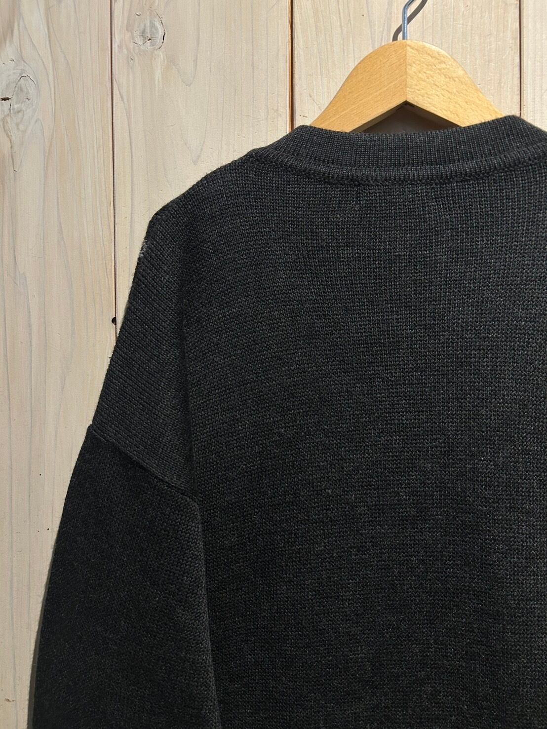 ニットの質感と、スエードレザーの掛け合わせがデザインにコントラストを生み出し、落ち着いたカラーリングで纏めながらも、素材間で奥行きを持たせた、デザインバランスにも非常〜に優れた1着。