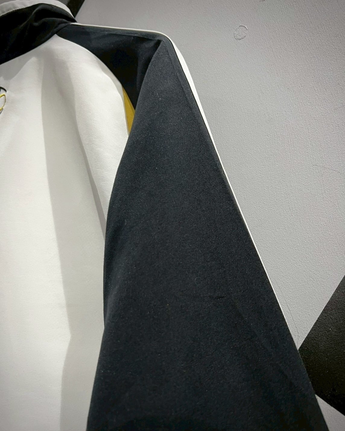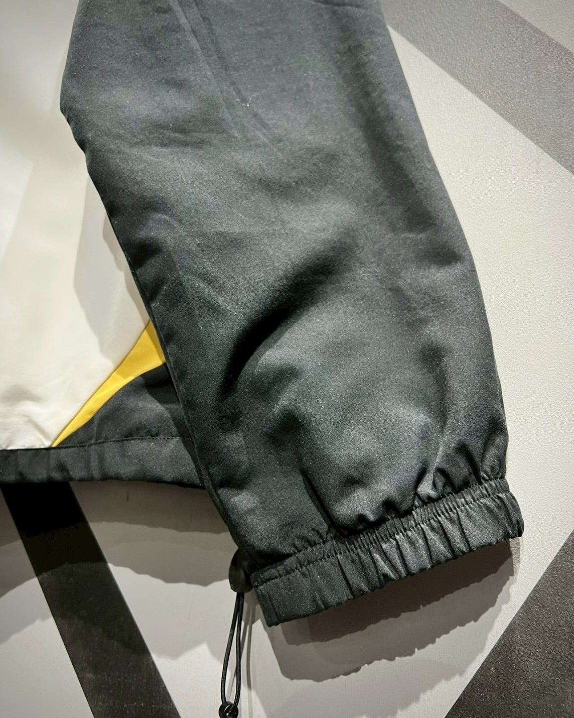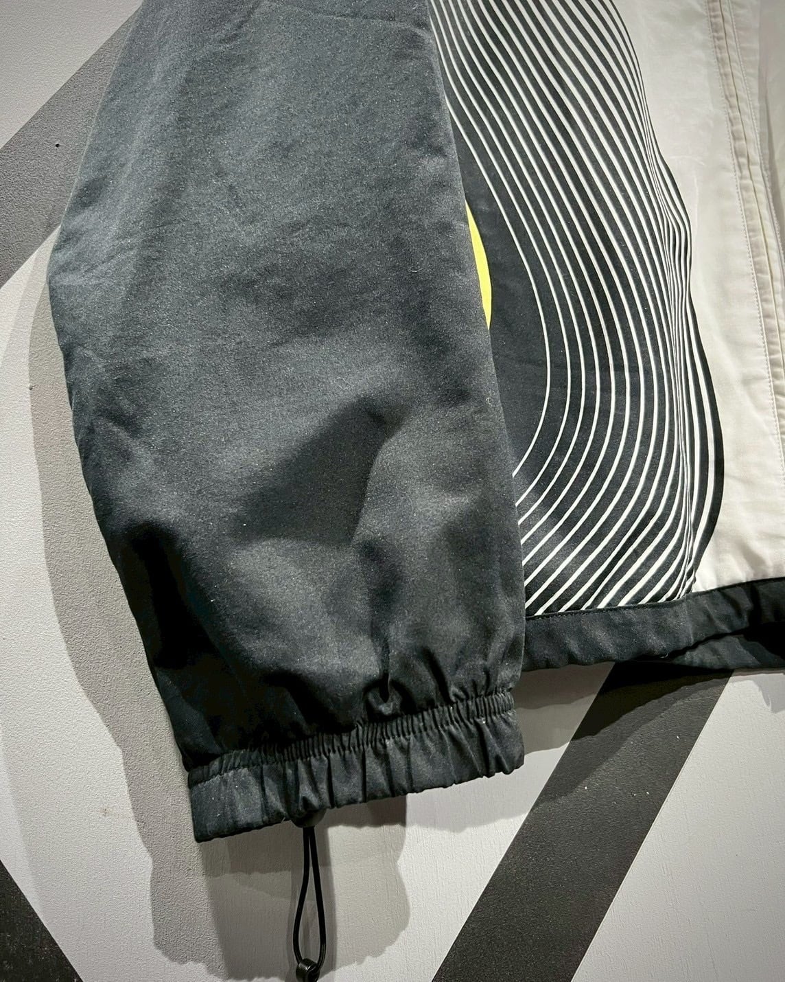 白のボディにアームには黒を切り替え、フロントにはラインのアーティスティックなデザイン。モノトーンに黄色の差し色が効いた好配色、良デザインの1着ですが、サンプリング元となるとさらに心がくすぐられますね。