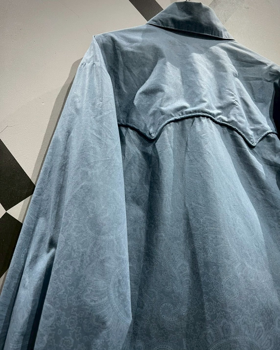 薄手のボディに、繊細に描かれたペイズリー柄をボディ全体に載せた1着。キャバルリーシャツ自体お目にかかれることが少ないですが、総柄モノとなるとかなり稀少です。