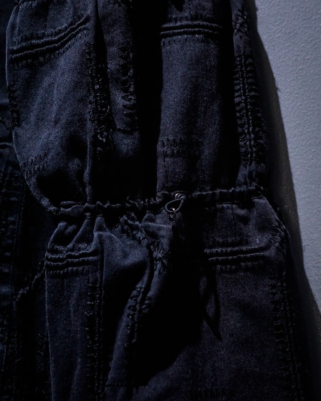 両サイドや背面に施されたジップ、アームに施されたドローストリング等々、シルエットにアレンジを加えるギミックも非常にイカしてます。