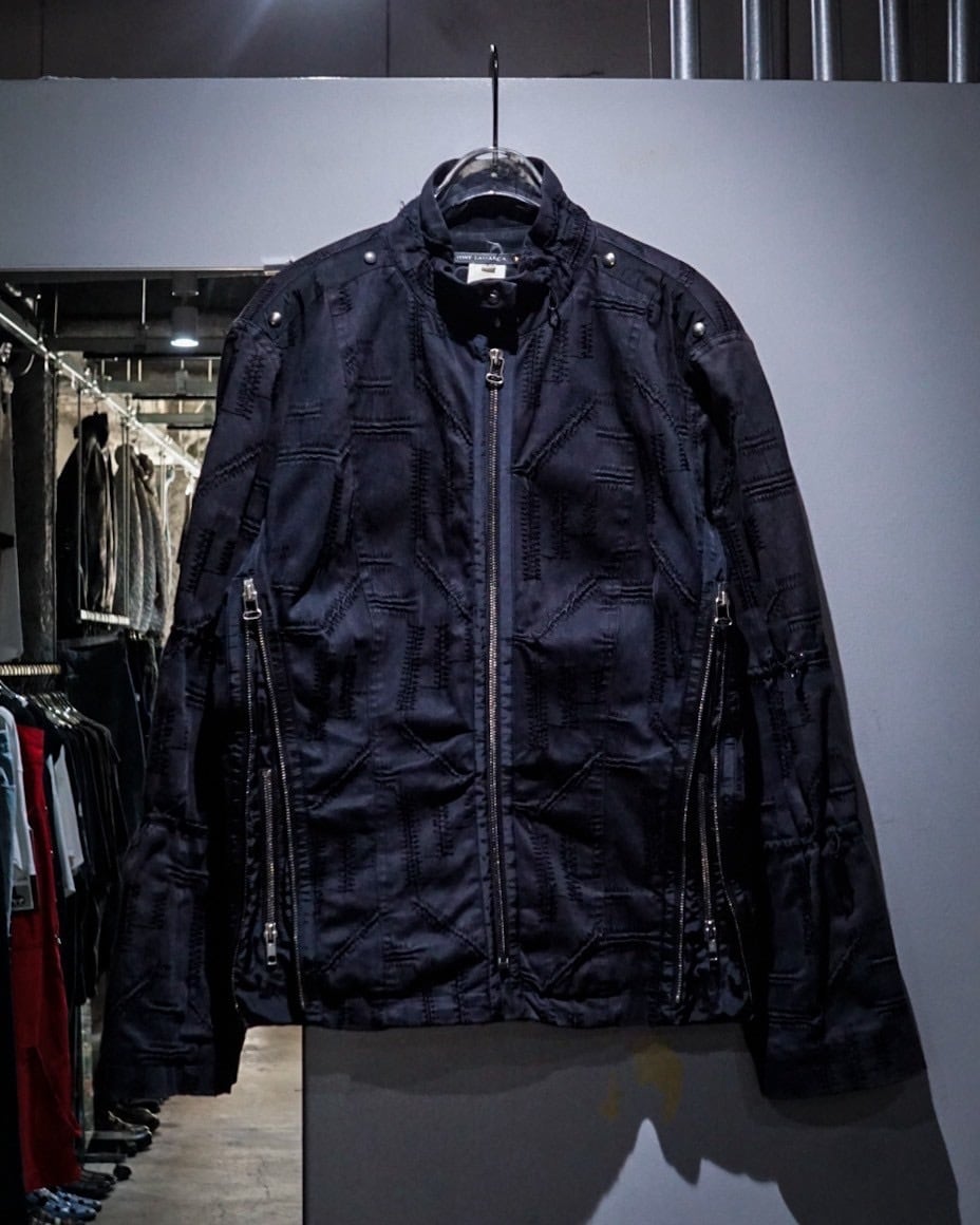 ジップアップのフロントにスタンドカラーの首周り。全体的にスッキリとしたスマートな短丈シルエットも非常に良く、デザイン&シルエット共にモードな雰囲気を見せる仕上がり。