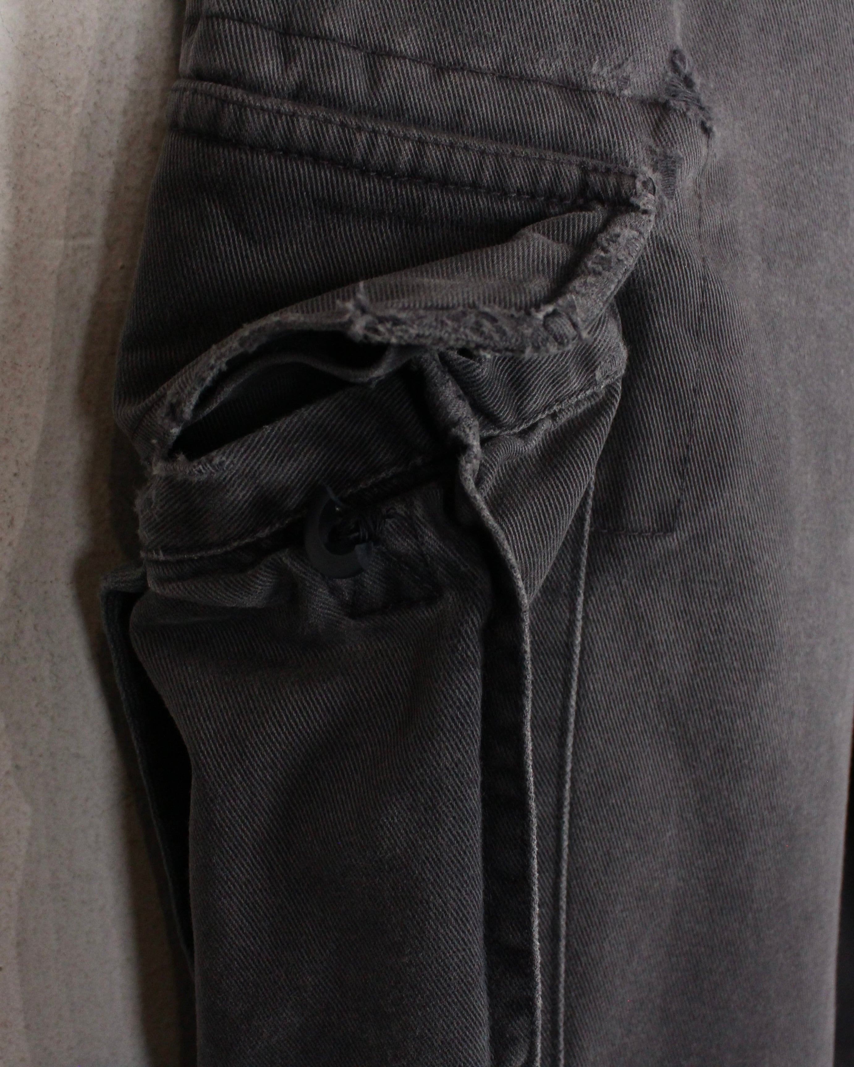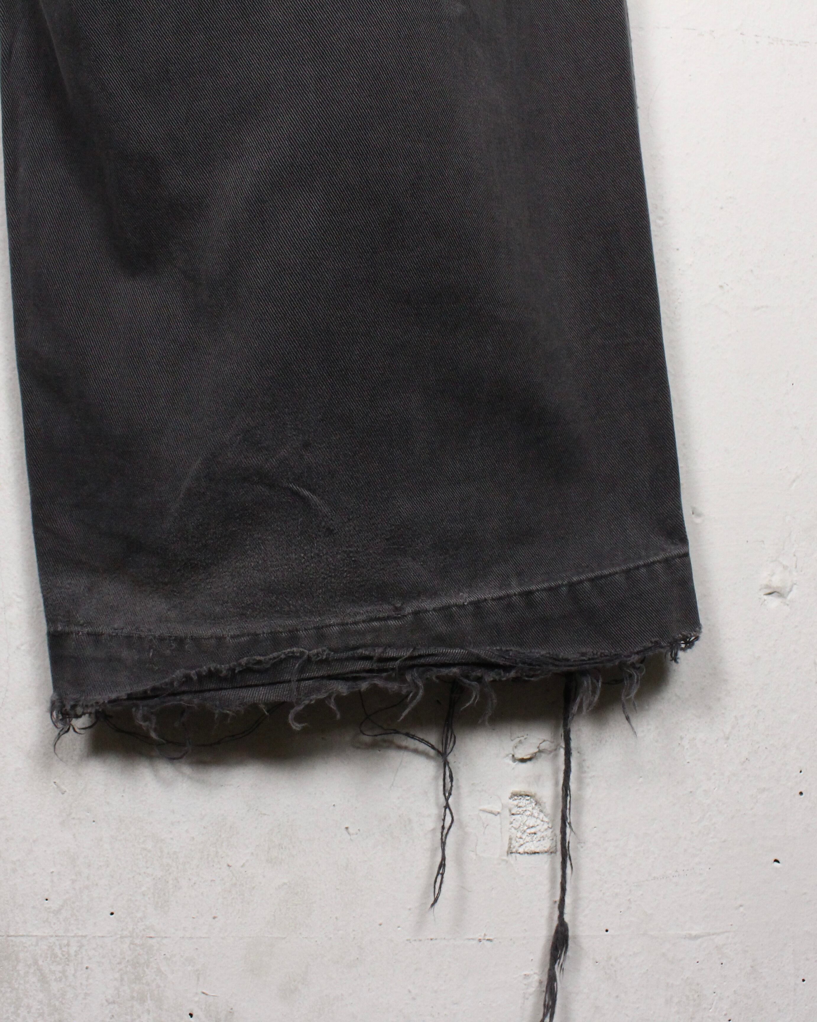経年や着用によって生み出されたフェード感やヤレ感、そして随所に効いたダメージ等が、退廃的かつ美しい表情を見せる1本。