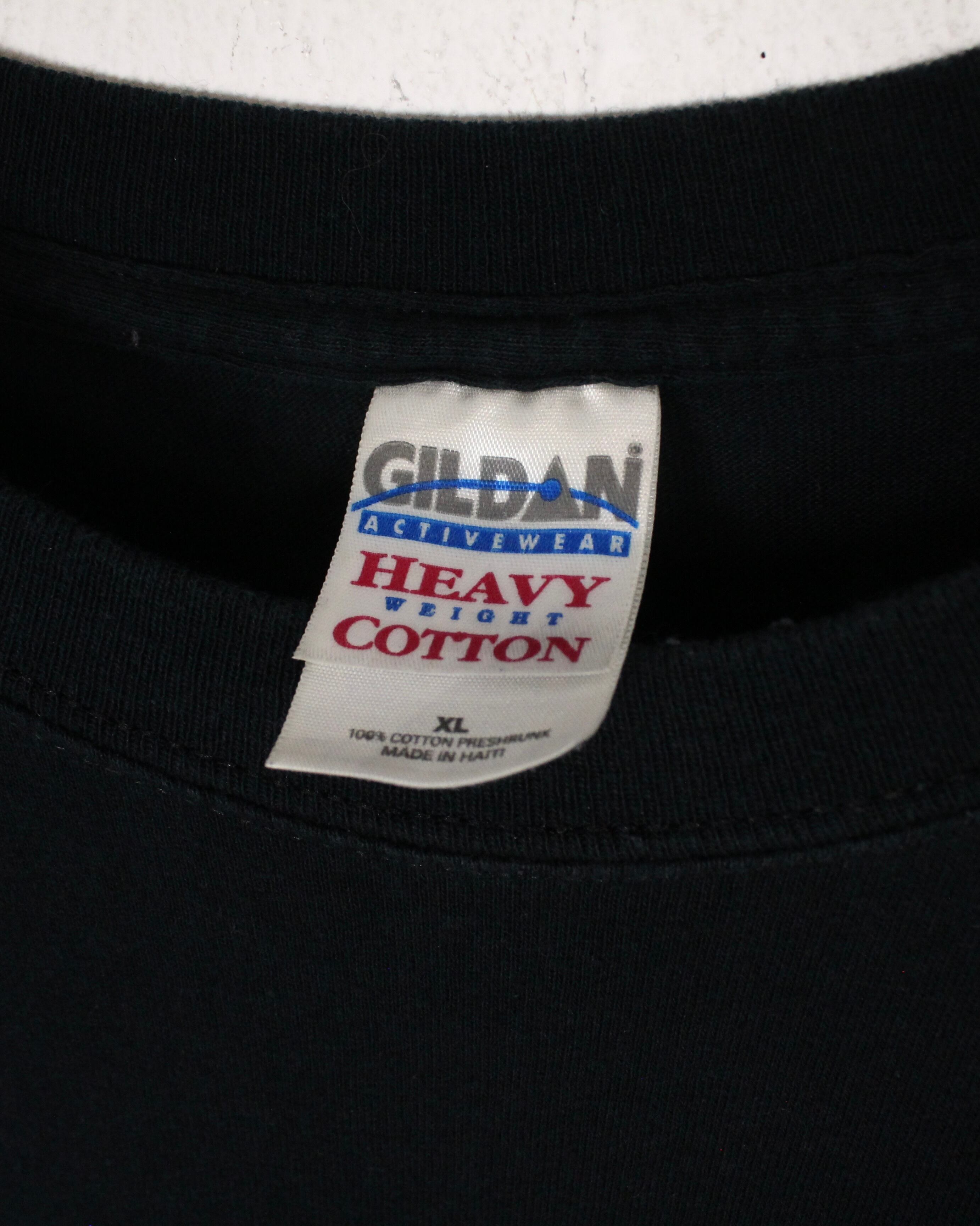 袖裾ダブルステッチ。00'sのGILDAN HEAVY WEIGHT COTTONボディ。XL 表記のルーズなサイジングでシルエットも良く1枚での着用でもバチっとキマります。