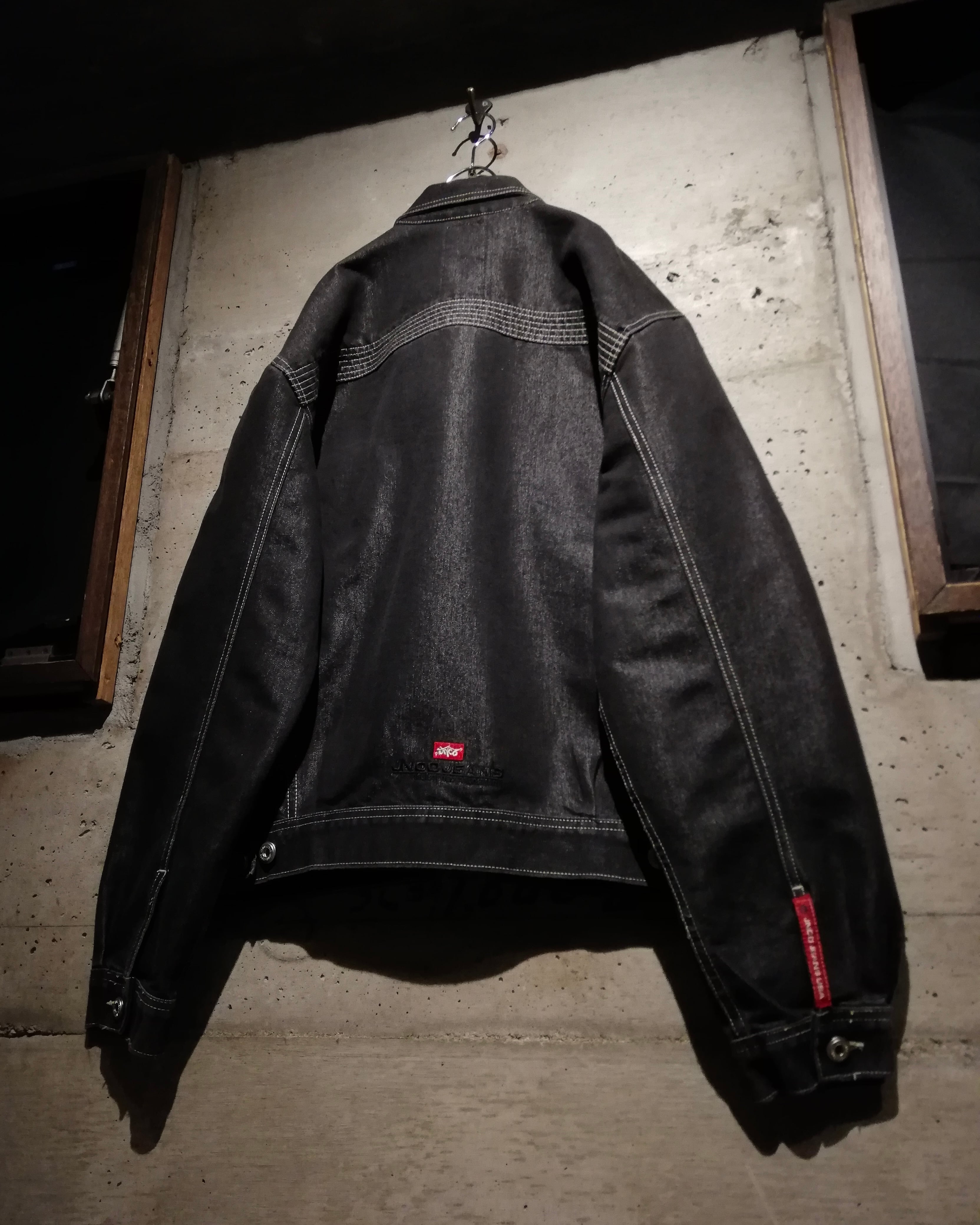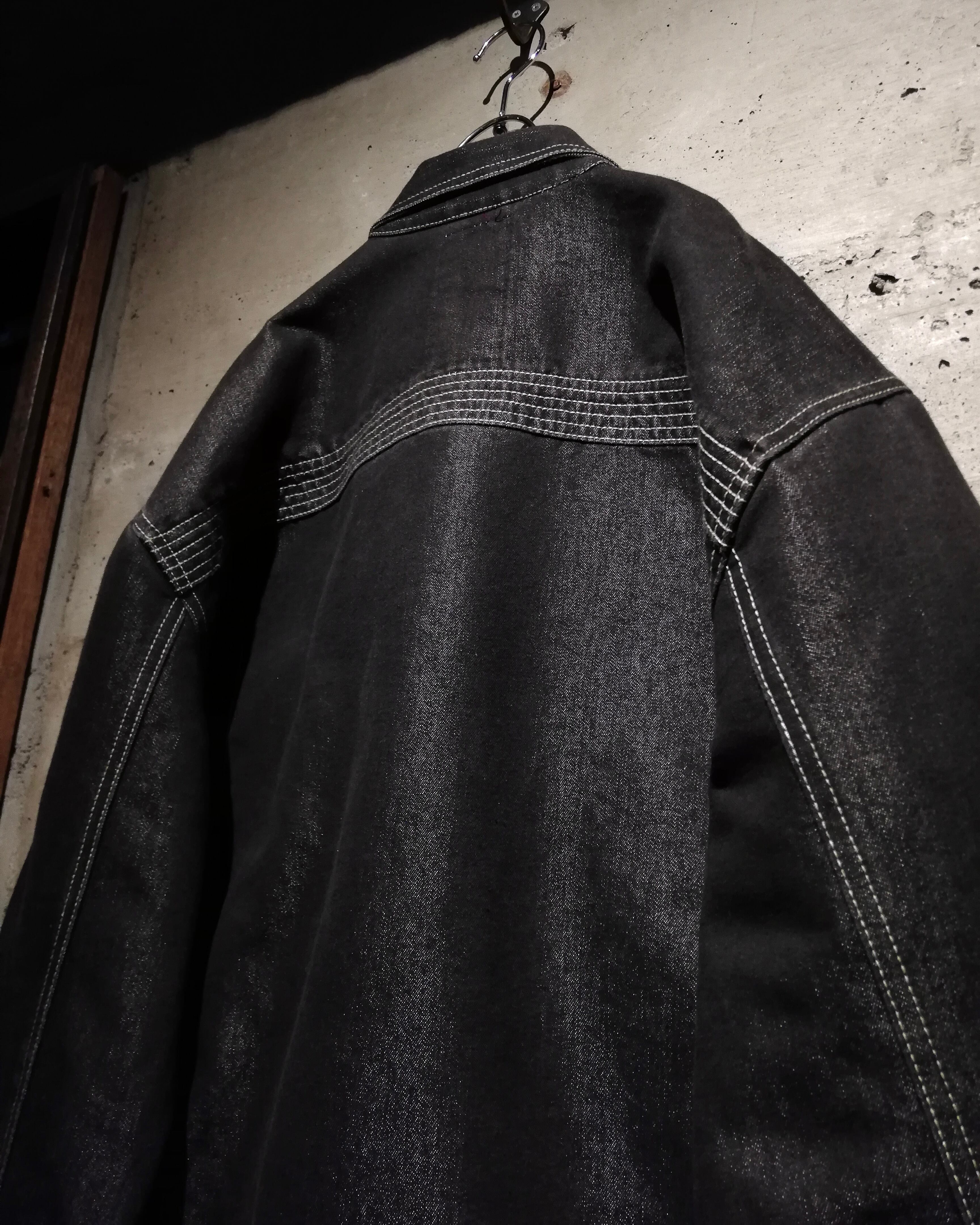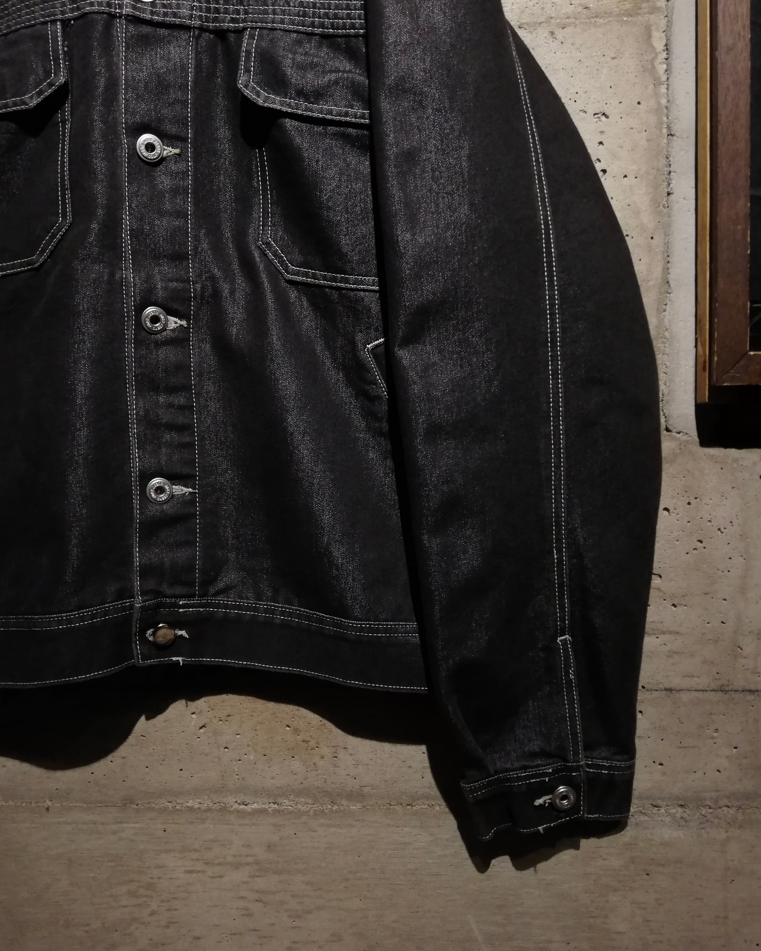 メタリックな光沢を帯びたブラックデニムをボディに使用したデニムジャケット。