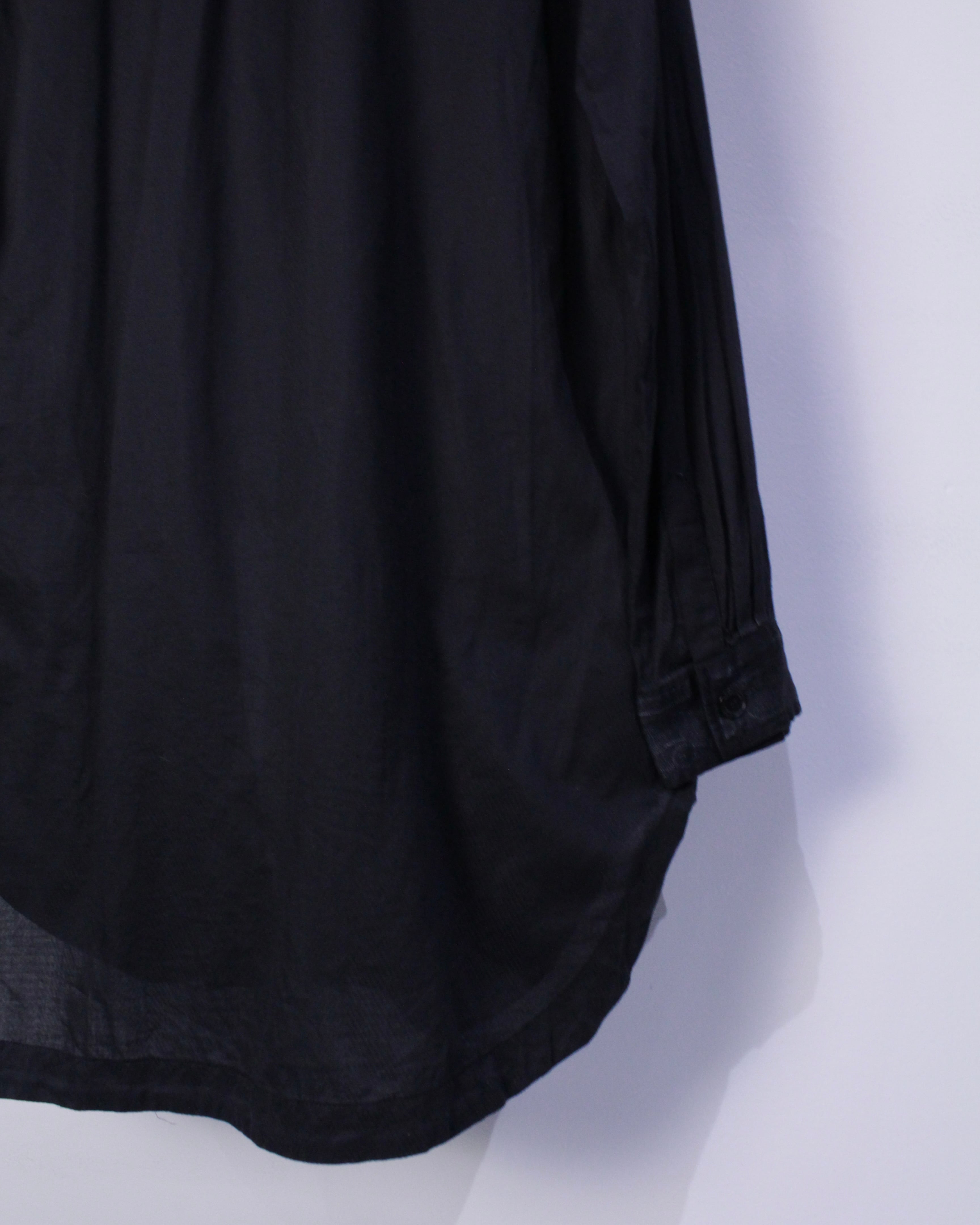全体的に程良くゆとりを持たせ、着丈をやや長めに採ったミドル丈のシルエットに、ボディの柔らかな質感が掛け合わさることで生まれる、ドレープ感も非常に美しい。