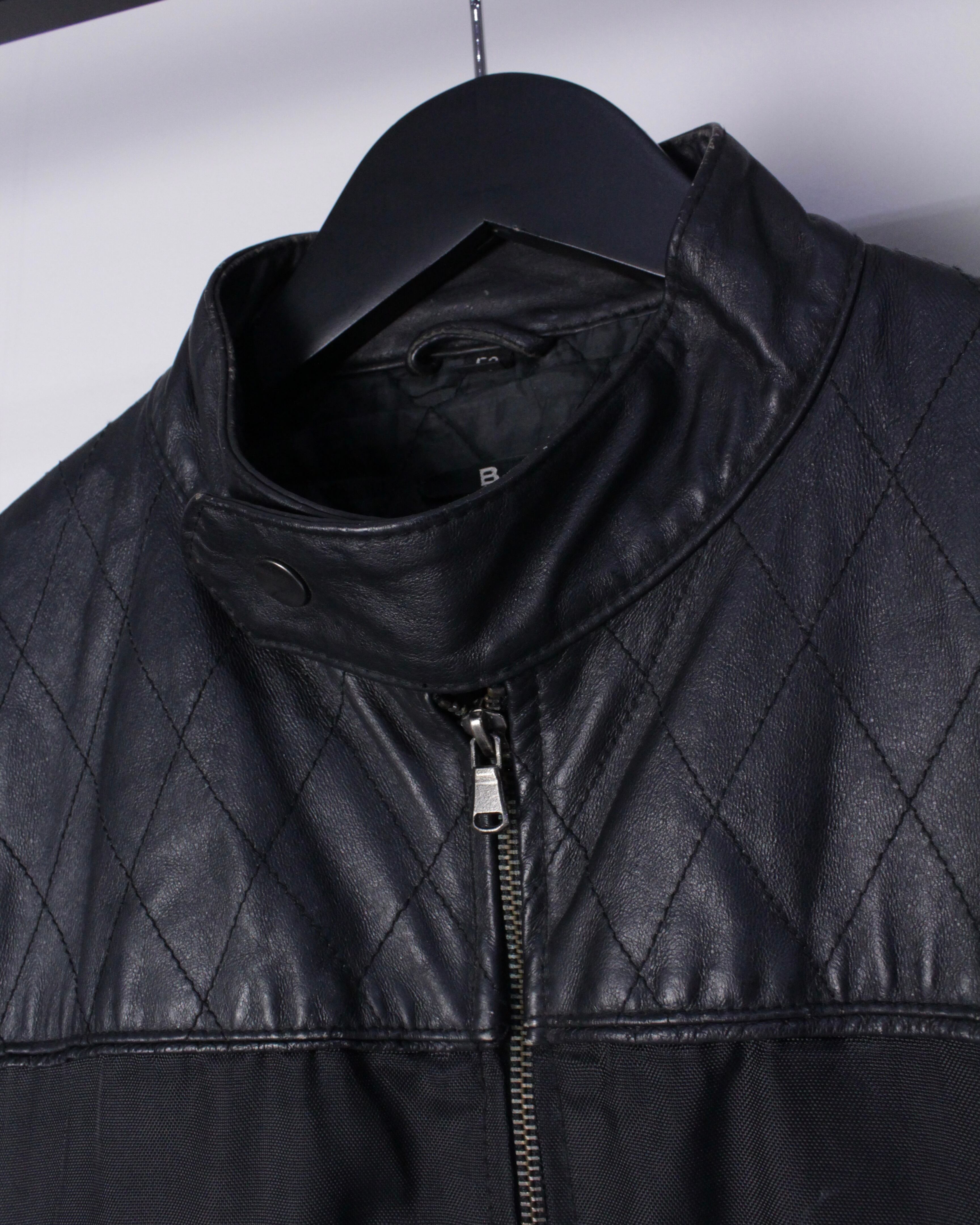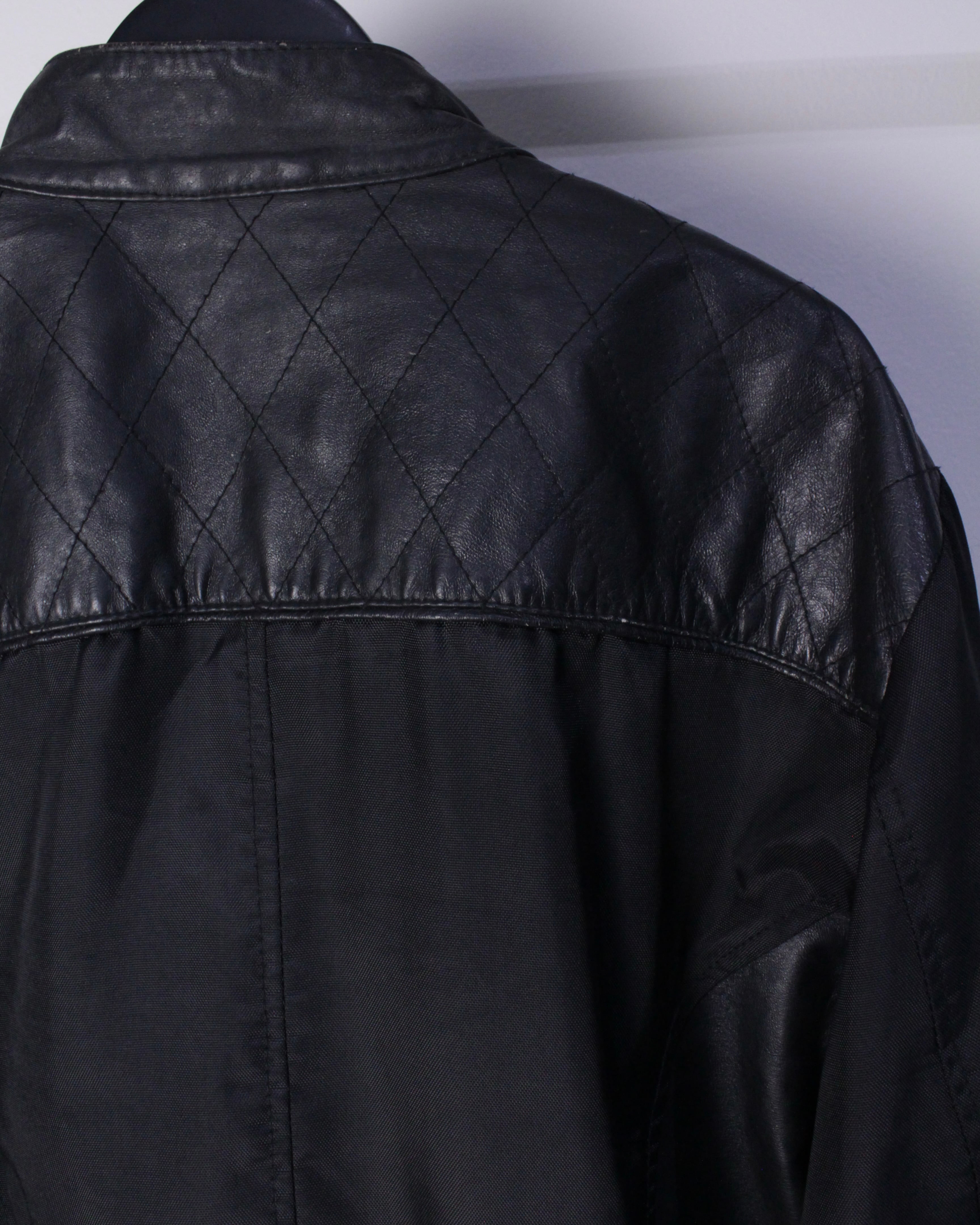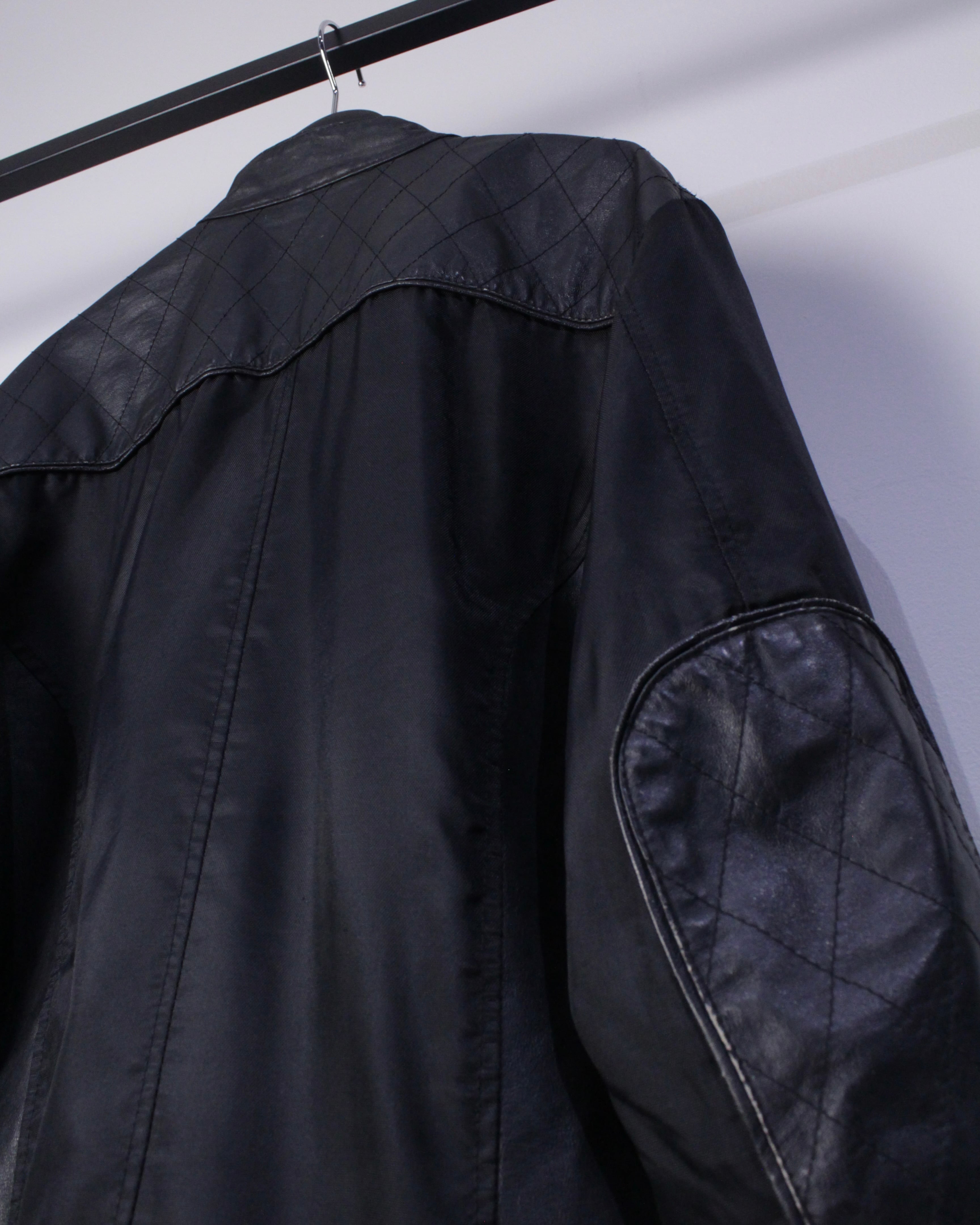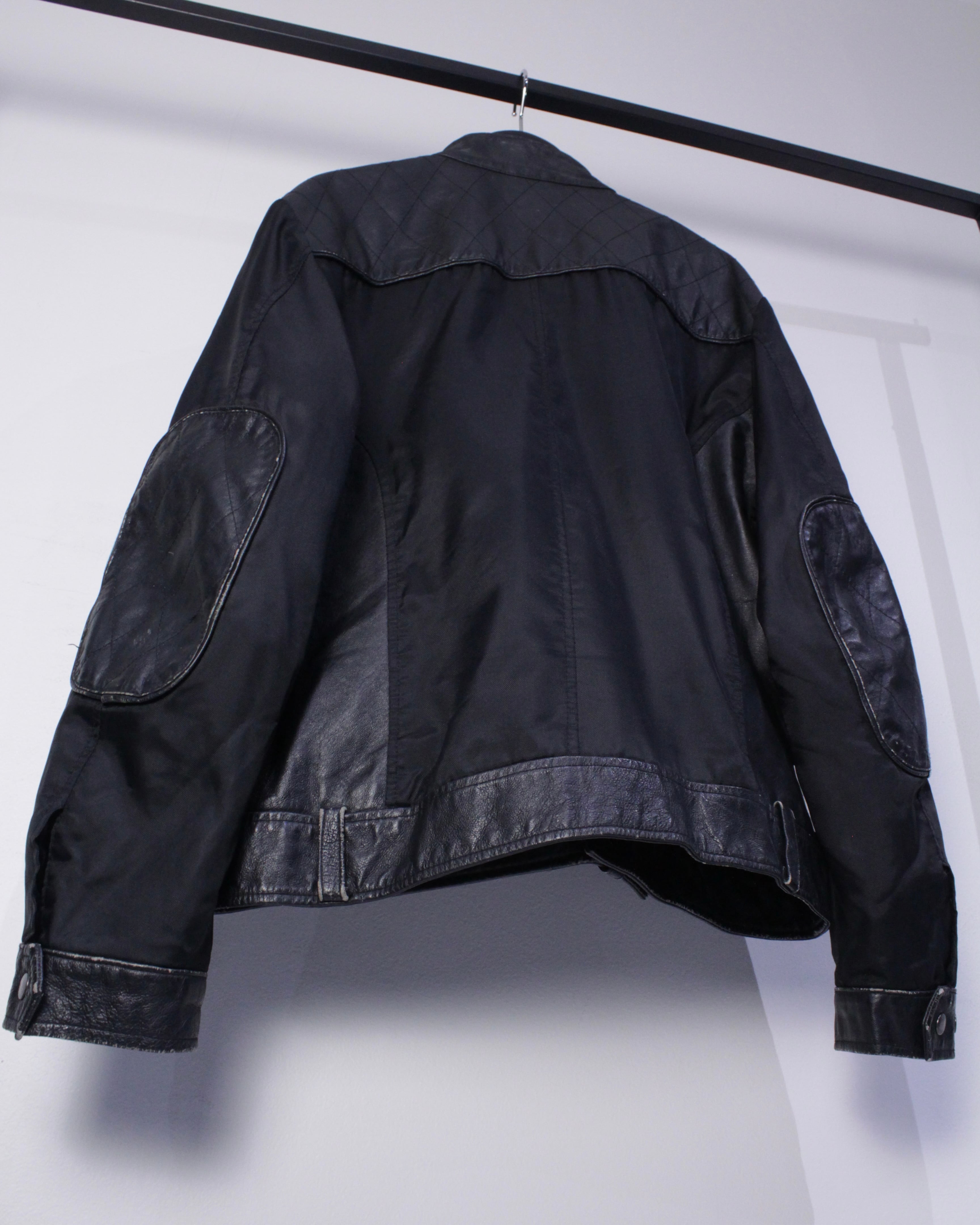 ブラックのナイロンをベースに、襟や両サイド、ヨーク部分、肘部分にレザーを切り替えたレーシングジャケット。