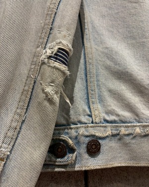 ダメージ×リペアが施された、退廃的な雰囲気を醸し出す"Levi's"のデニムジャケット。