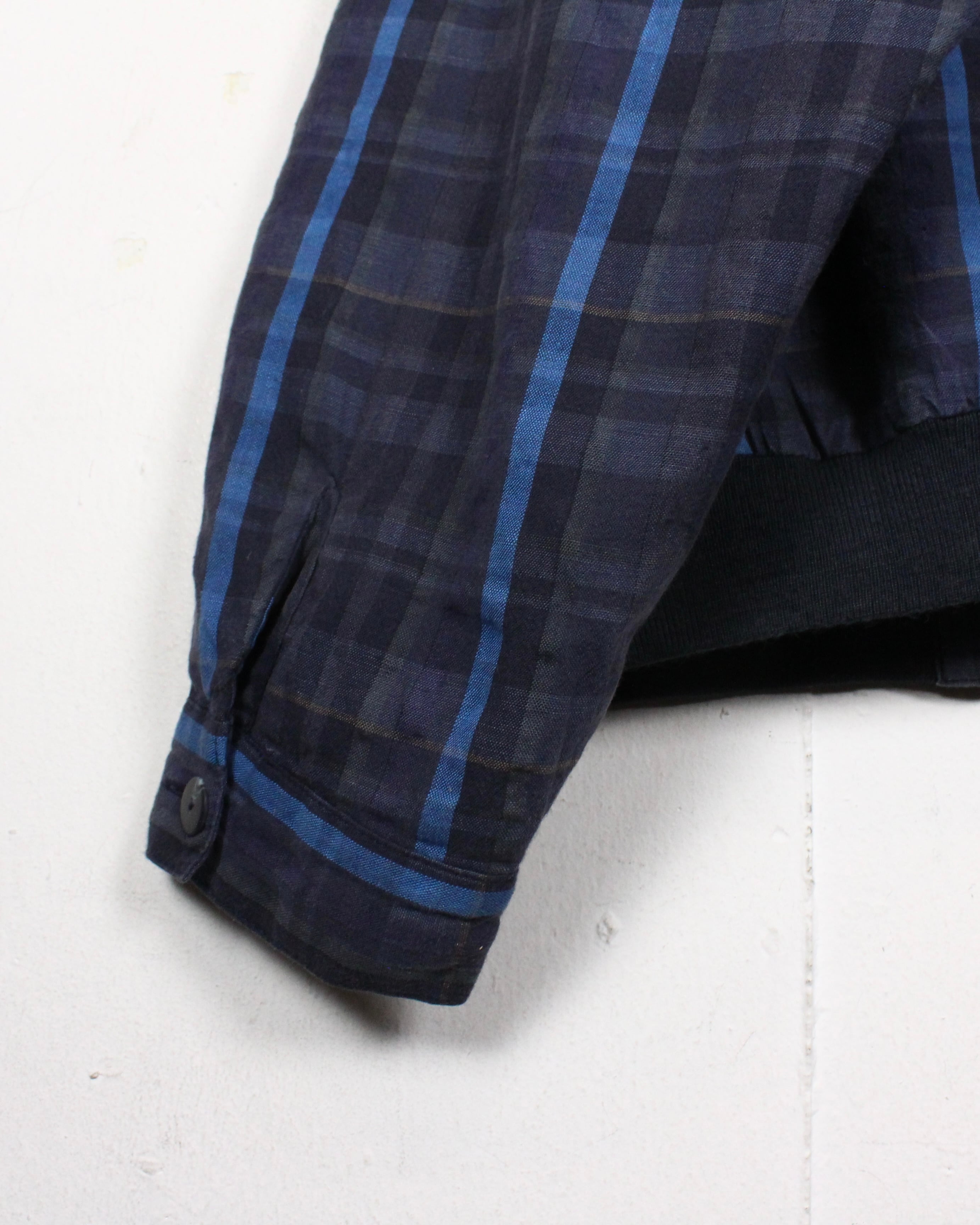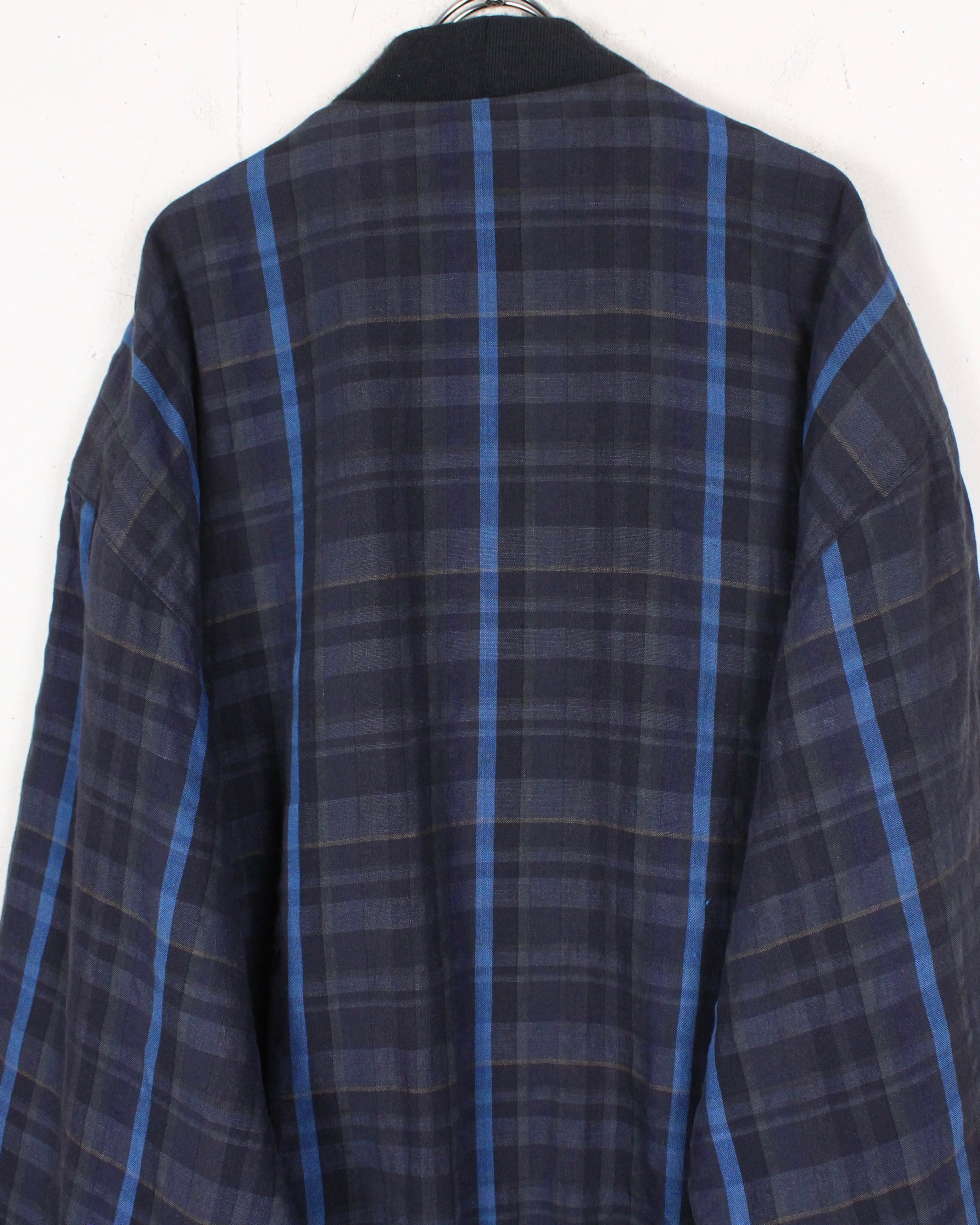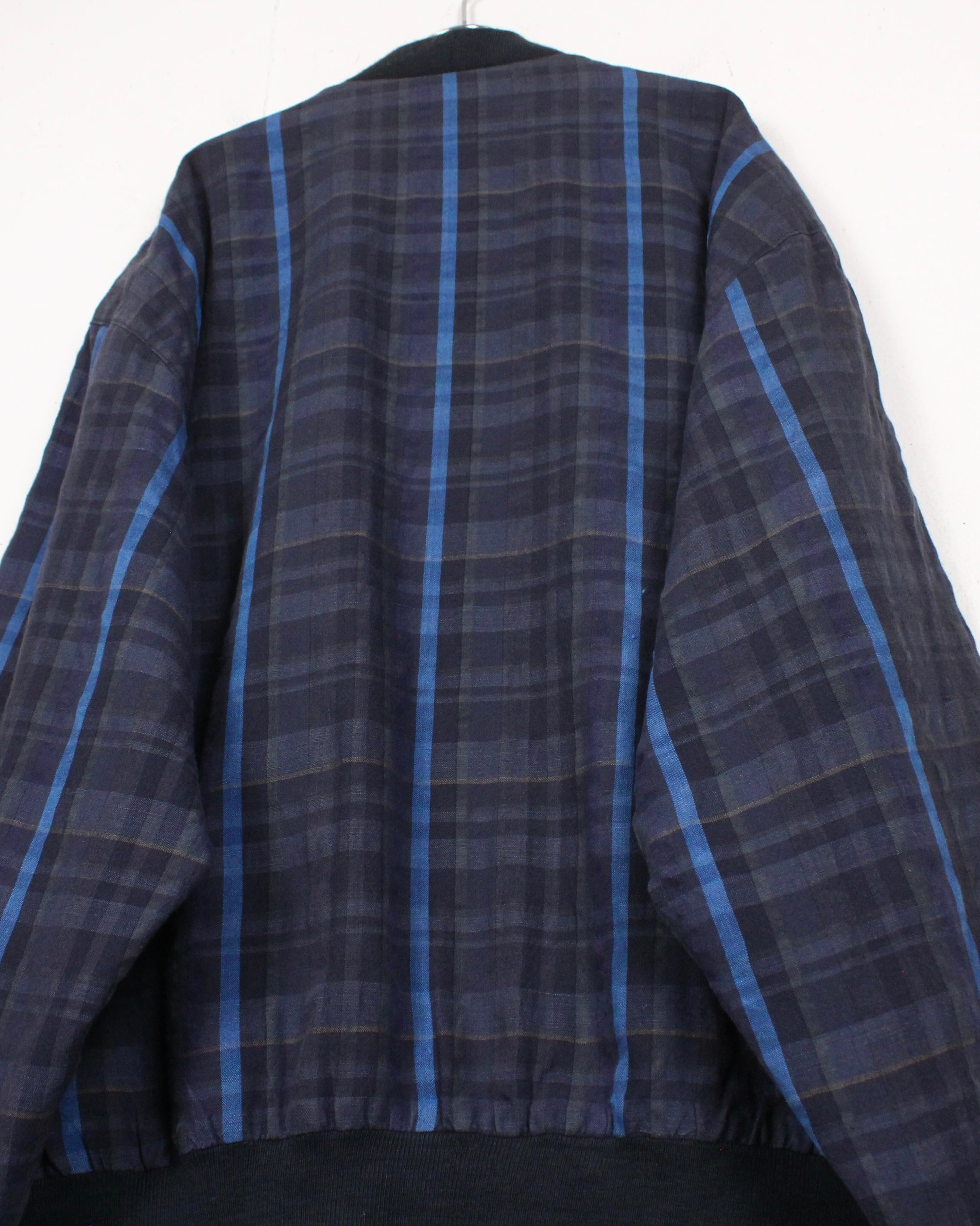 ネイビー、ライトブルー、グレーのカラーリングでチェック柄に仕上げられた、ユーロヴィンテージのカーディガンジャケット。