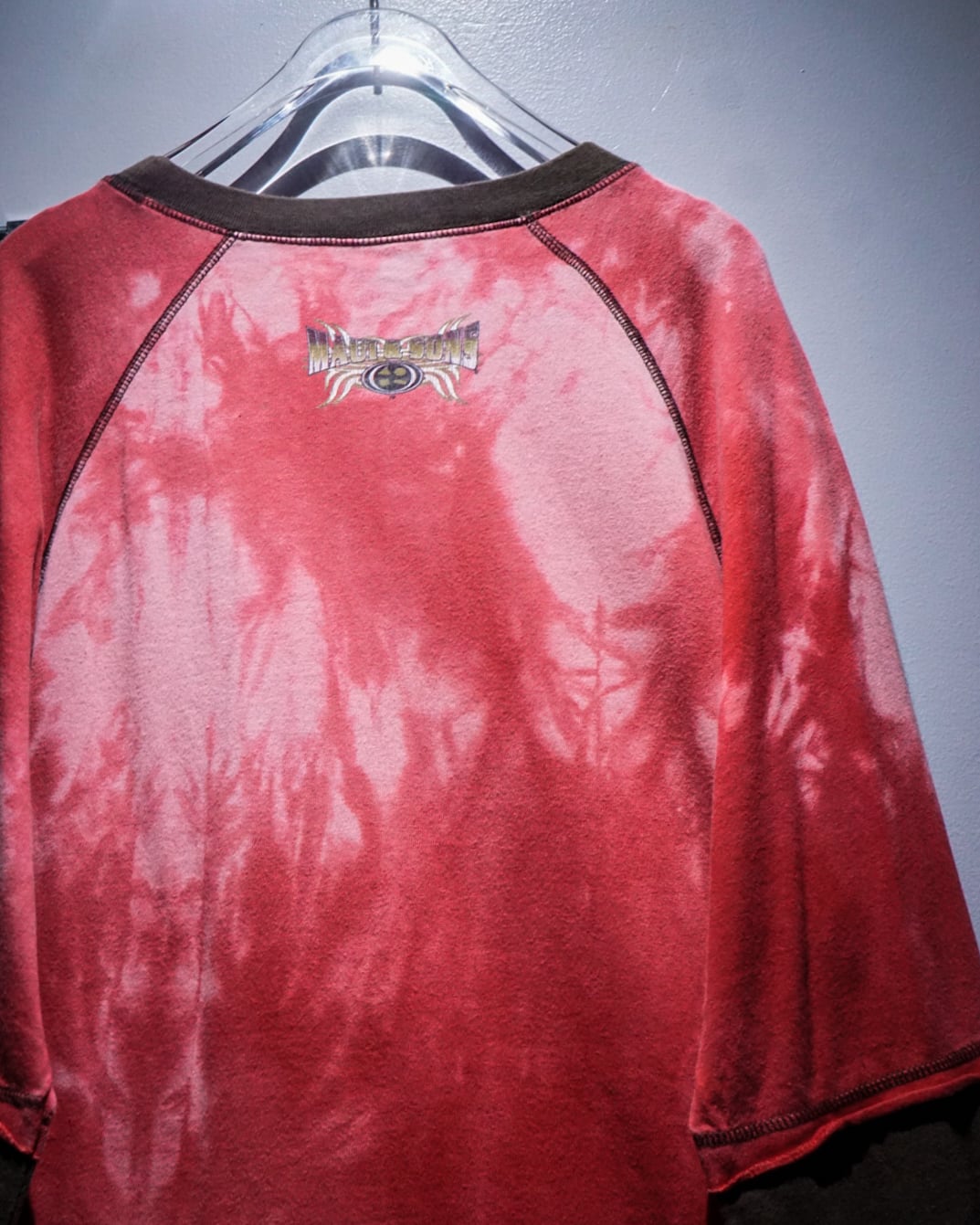 染めが醸し出す退廃感、ノリの良いプリント、ルーズなサイジングにレイヤードのデザインが合わさって生まれた、稀有なロンTの1着です。