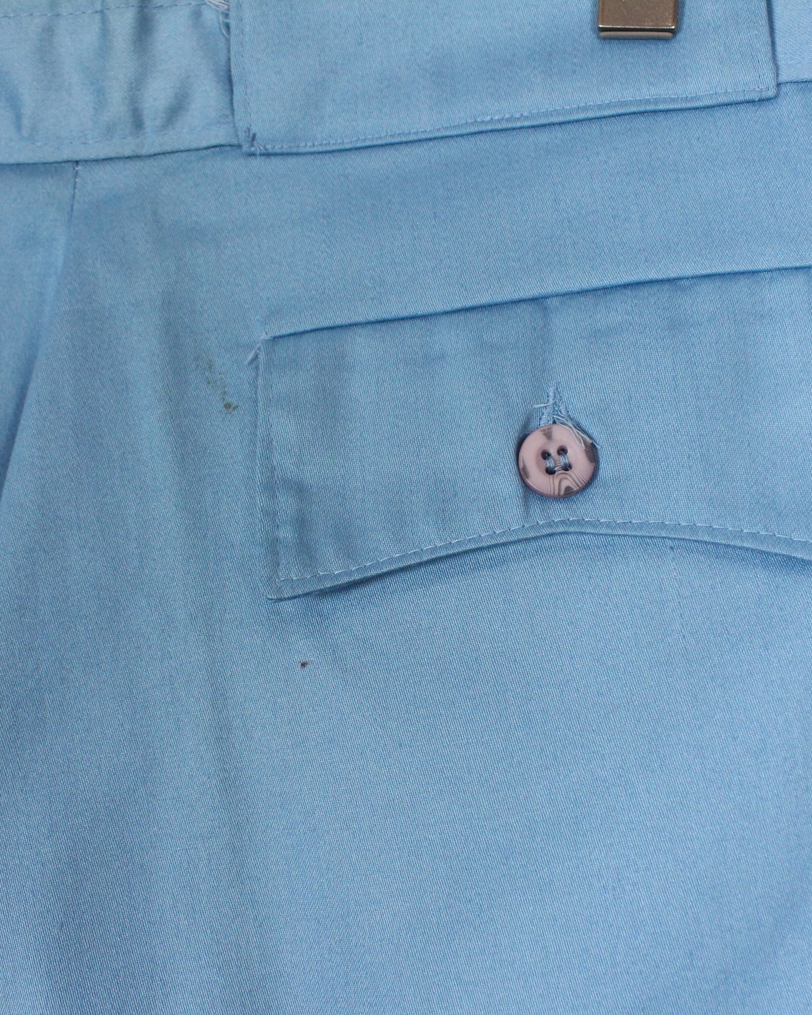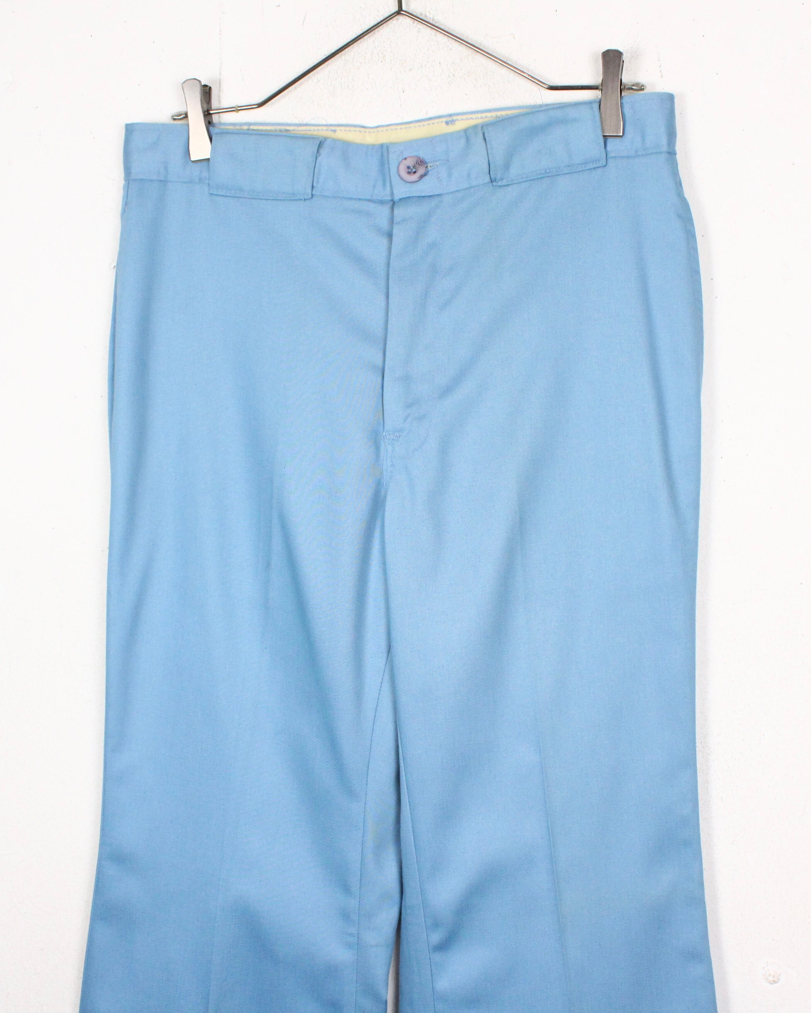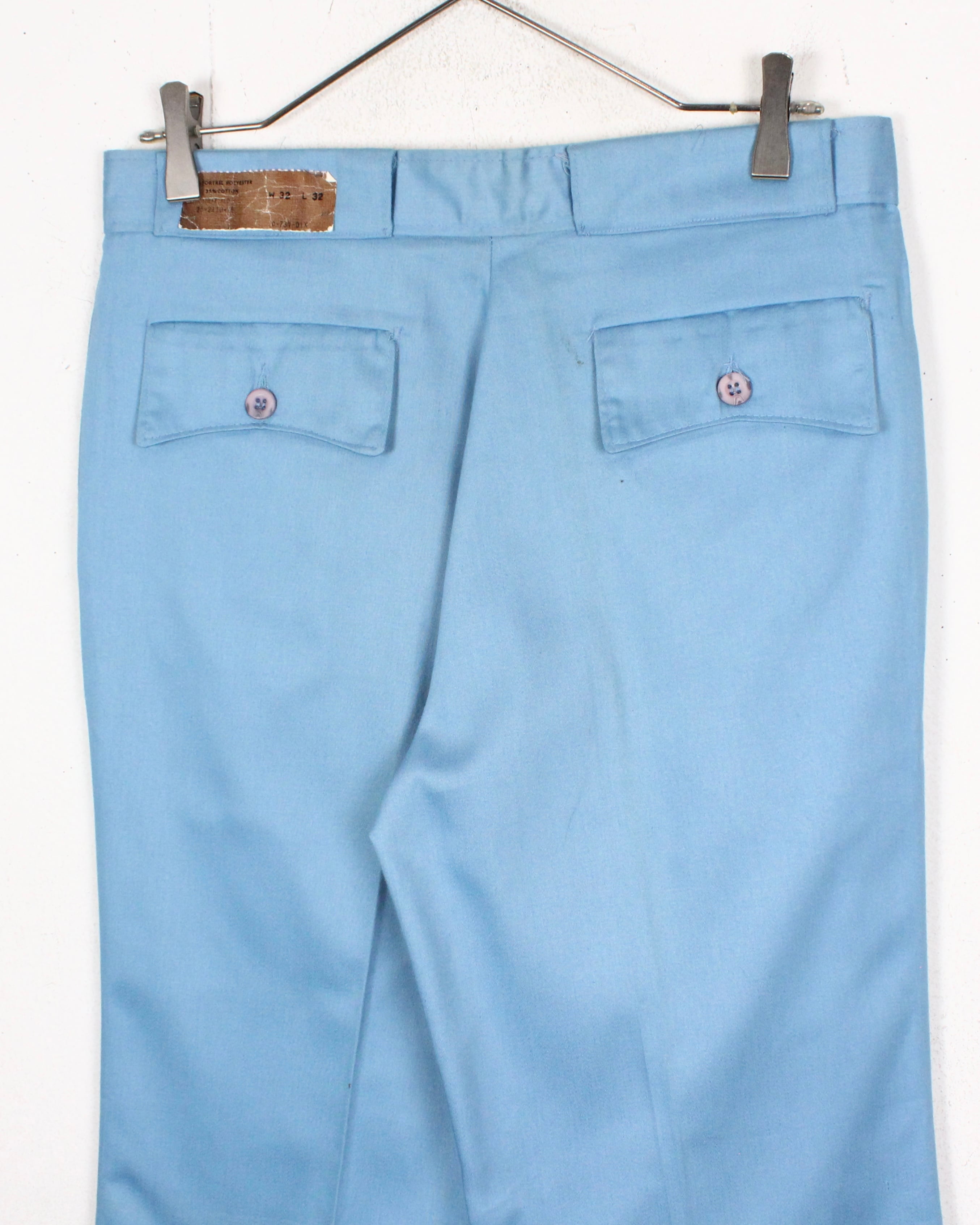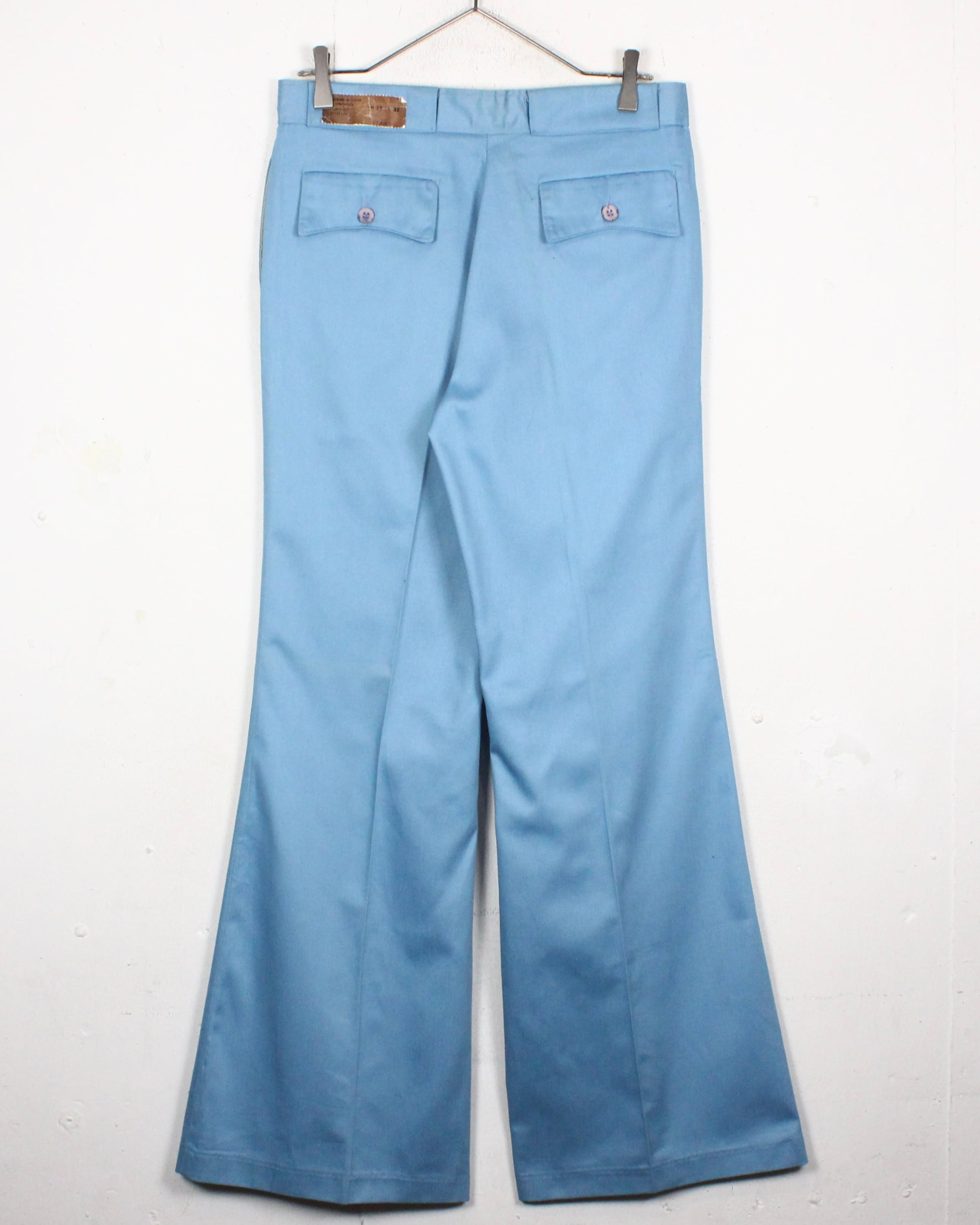 目を引く鮮やかな水色で仕上げられた、70’sヴィンテージのフレアスラックス。