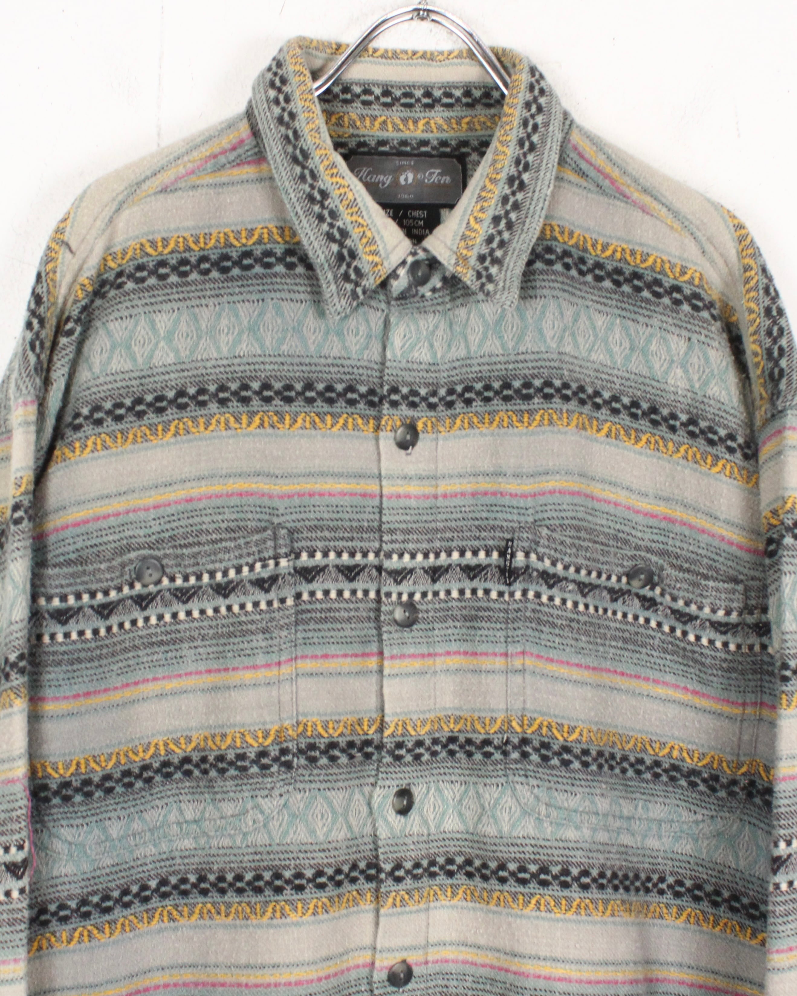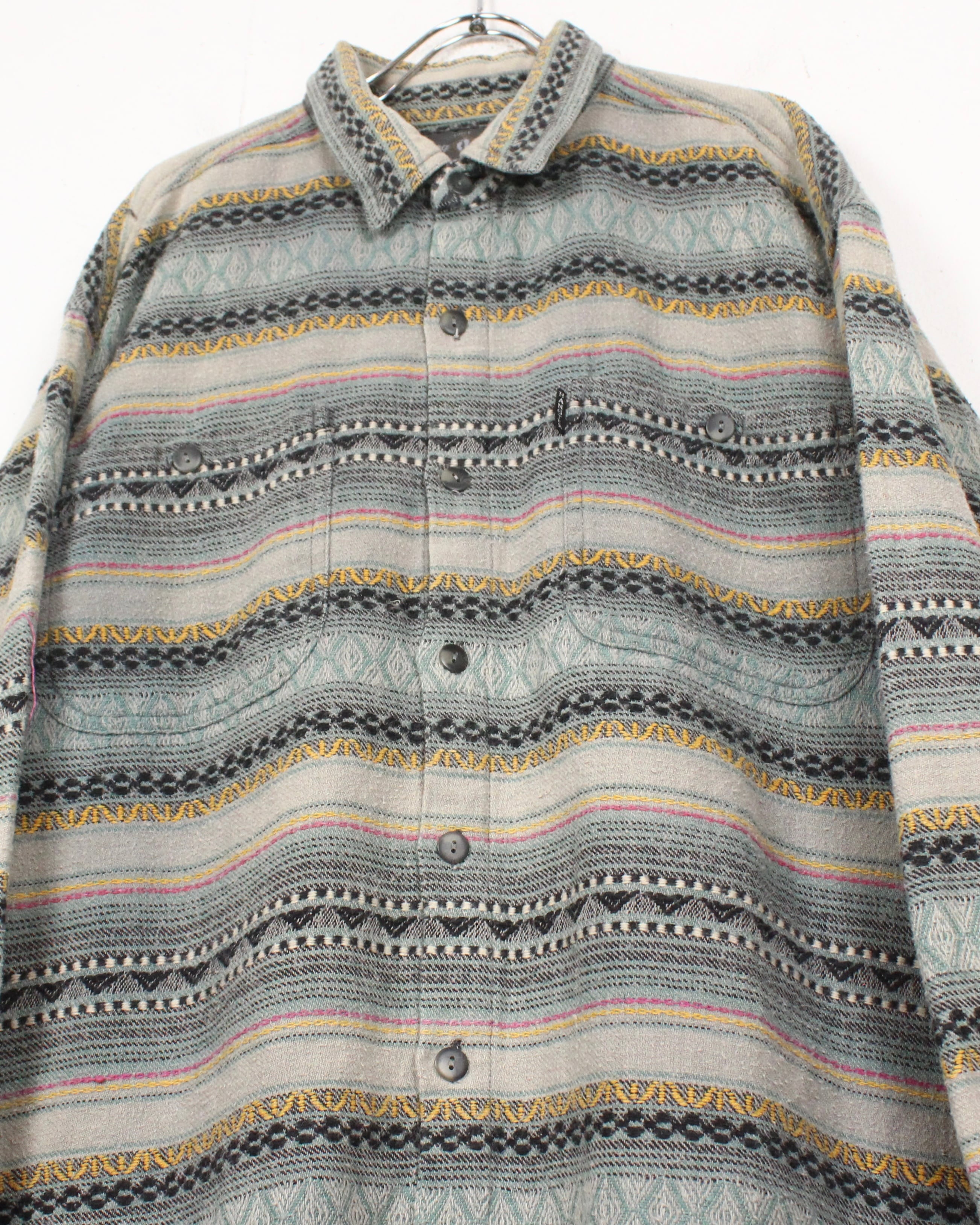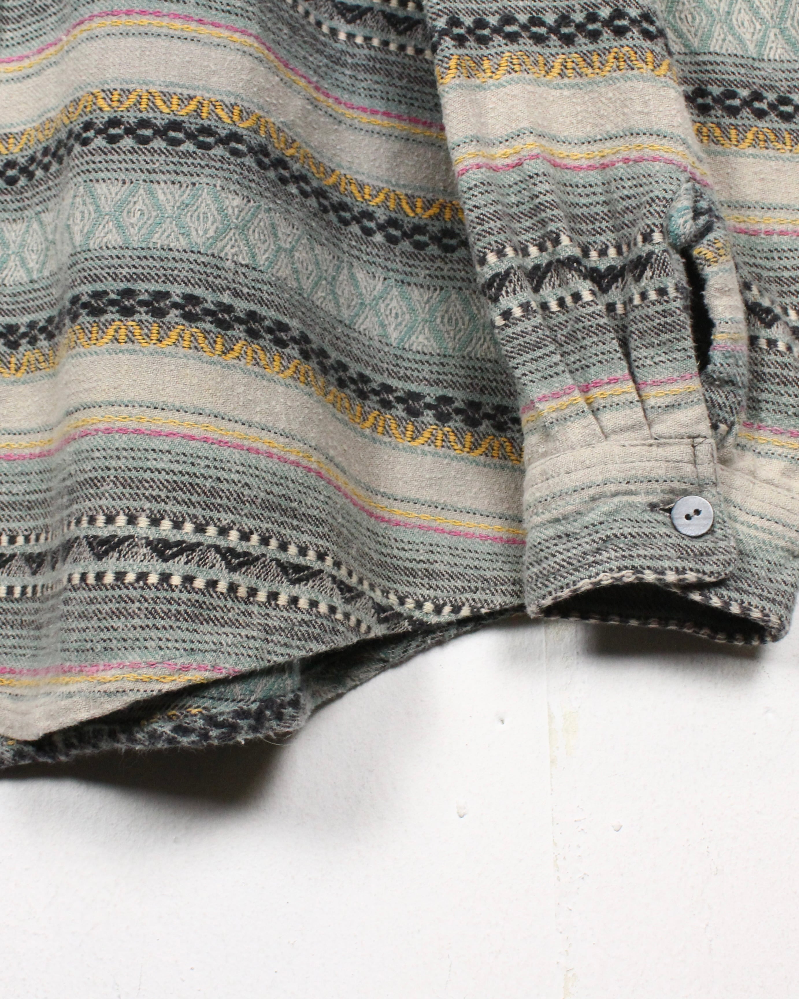 柔らかく上質なインド綿を用いて、様々なネイティブ風の柄模様でボーダーを表現した長袖シャツ。