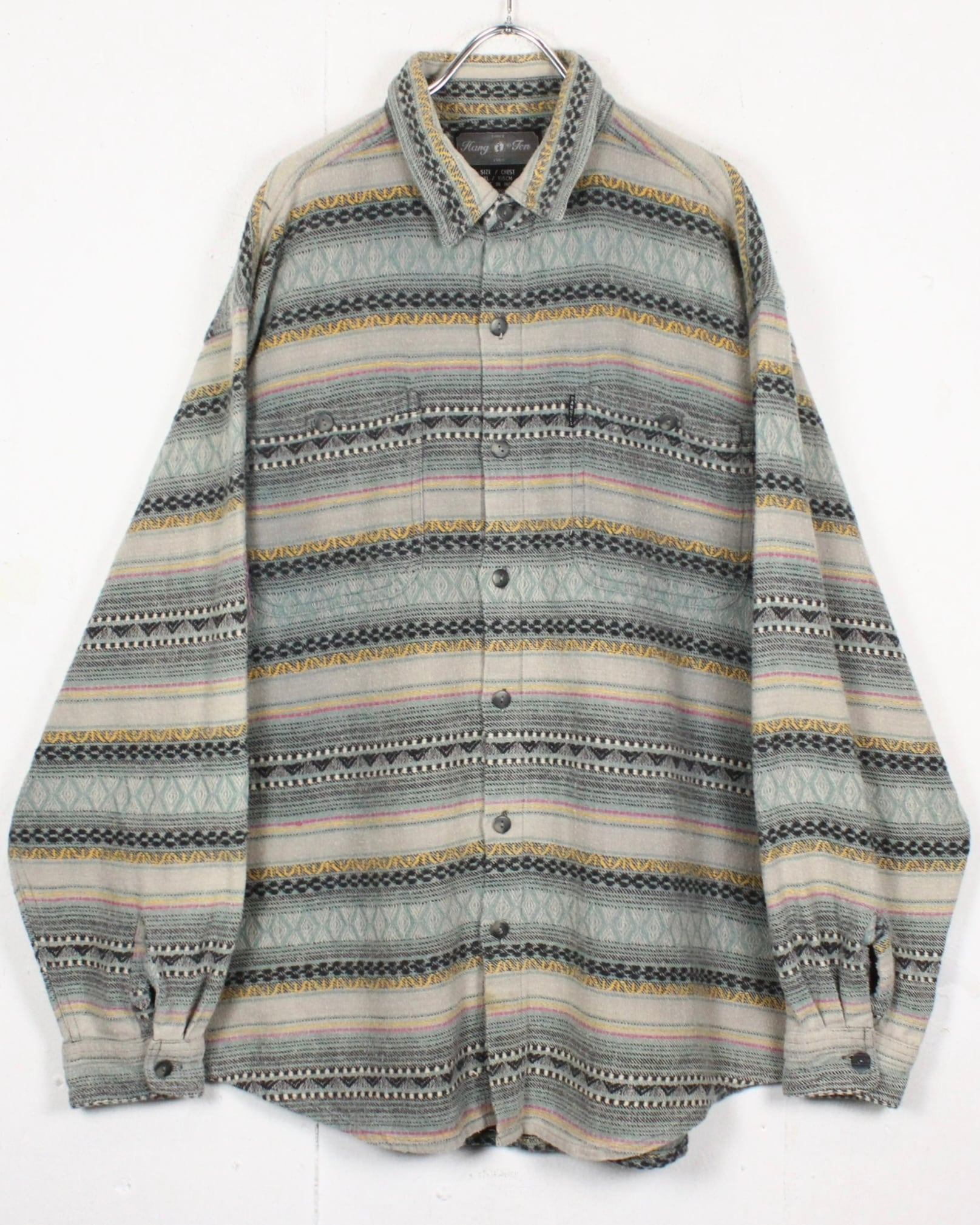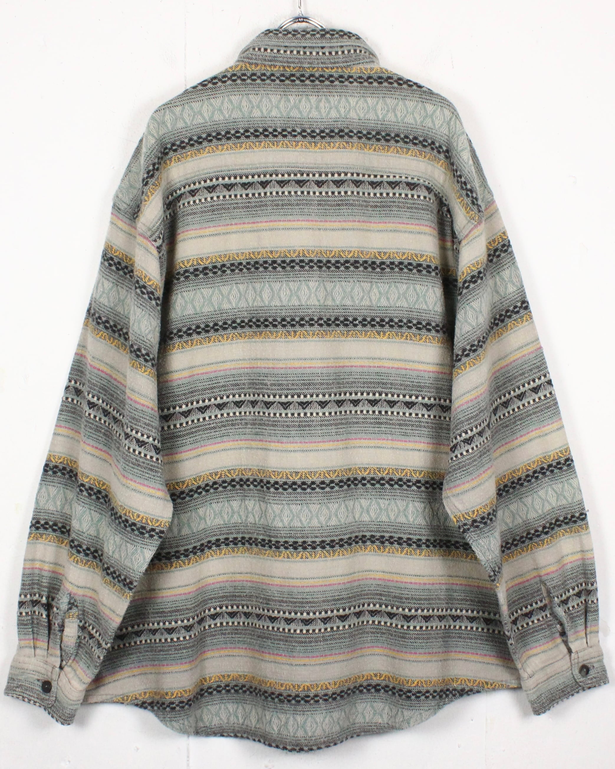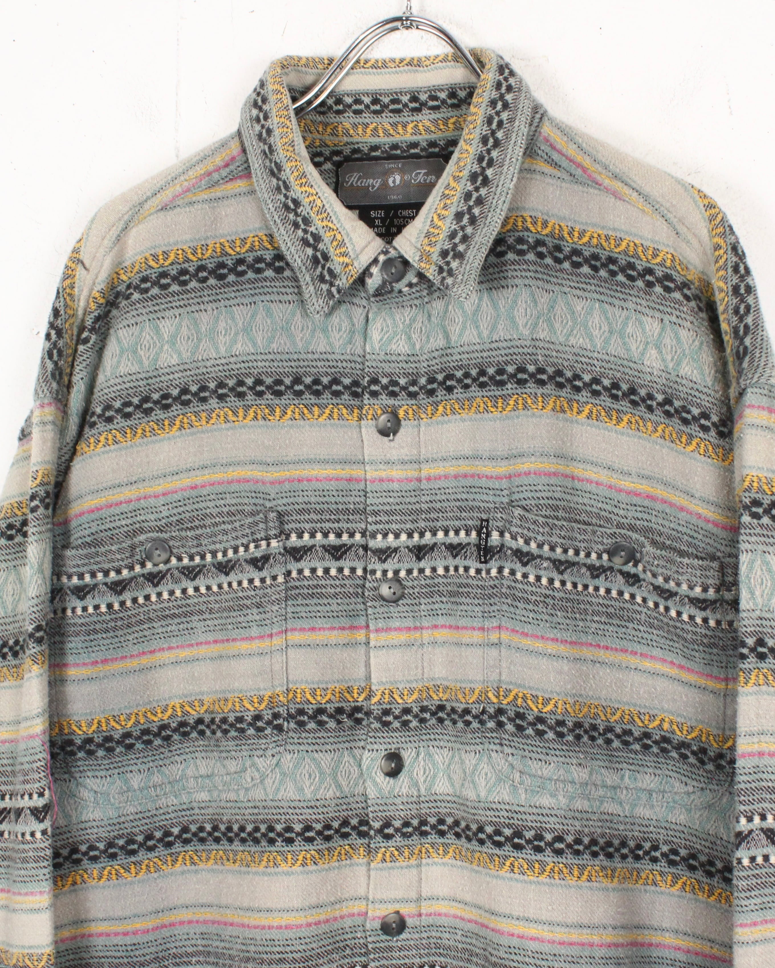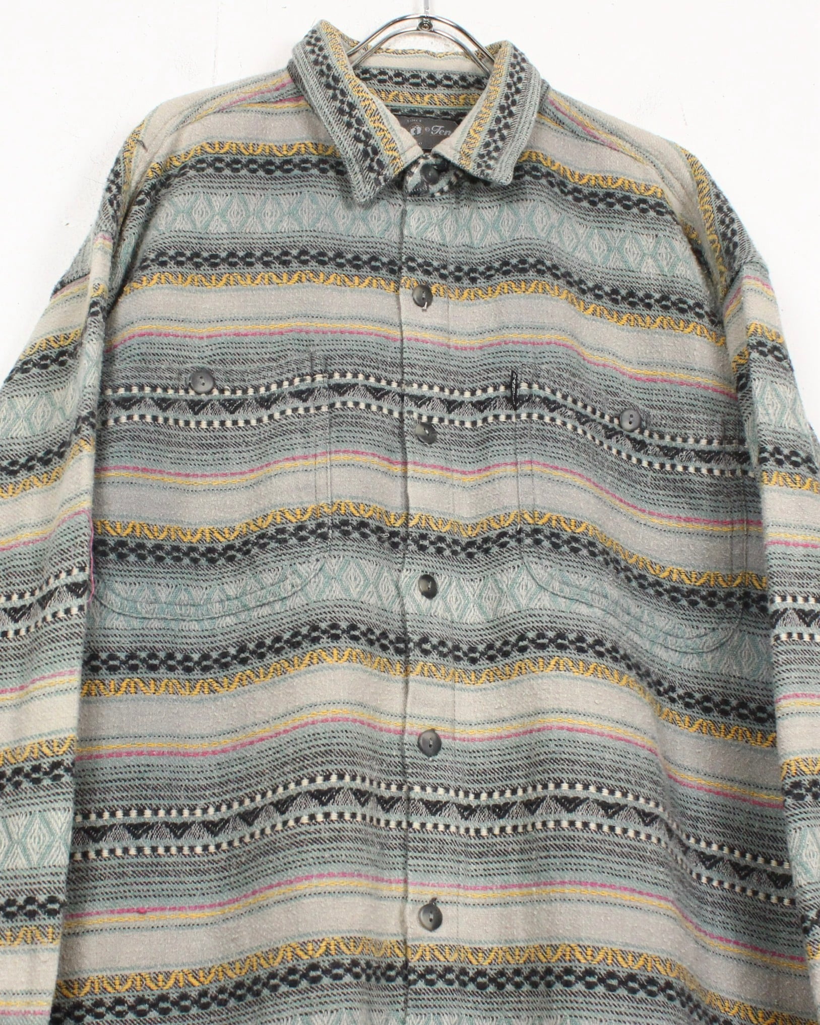 柔らかく上質なインド綿を用いて、様々なネイティブ風の柄模様でボーダーを表現した長袖シャツ。