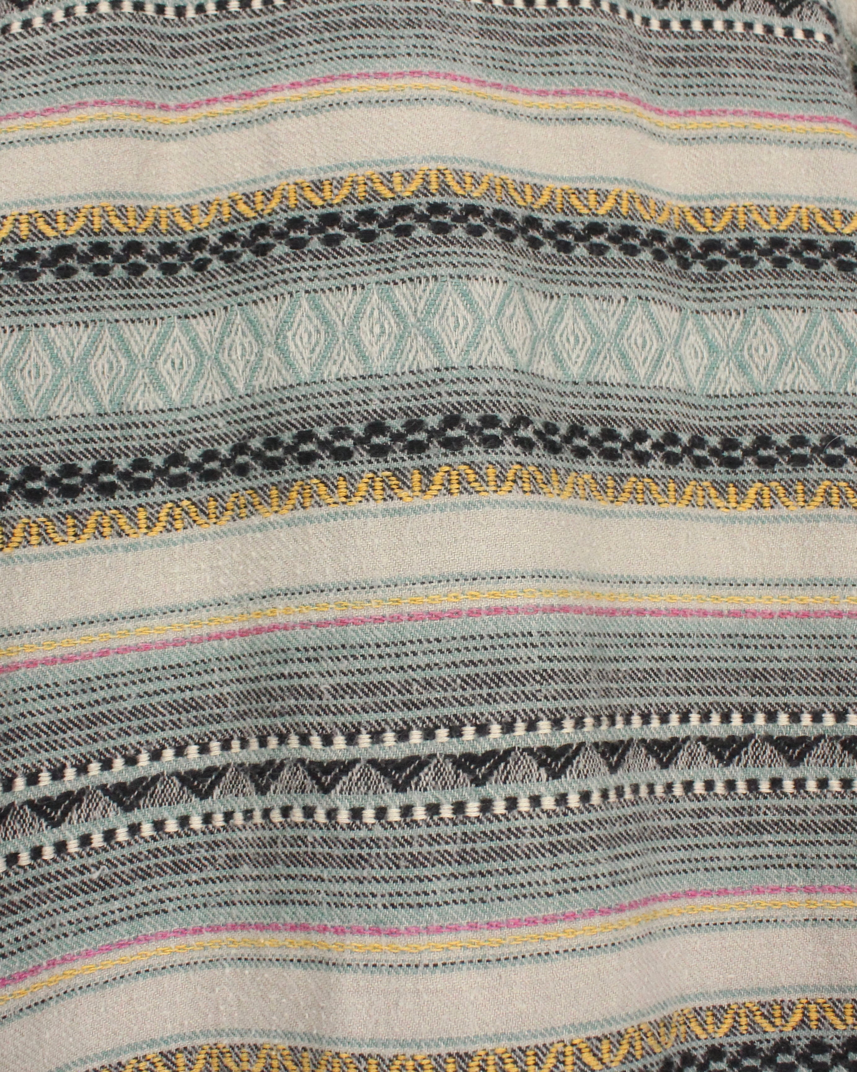 暖色のアイテムが多いネイティブ柄ですが、寒色のパステルカラーで仕上げられているのも非常に良いんですよね。様々な色を用いながら表現された立体感のある織りに、目と心の双方を奪われてしまいます。