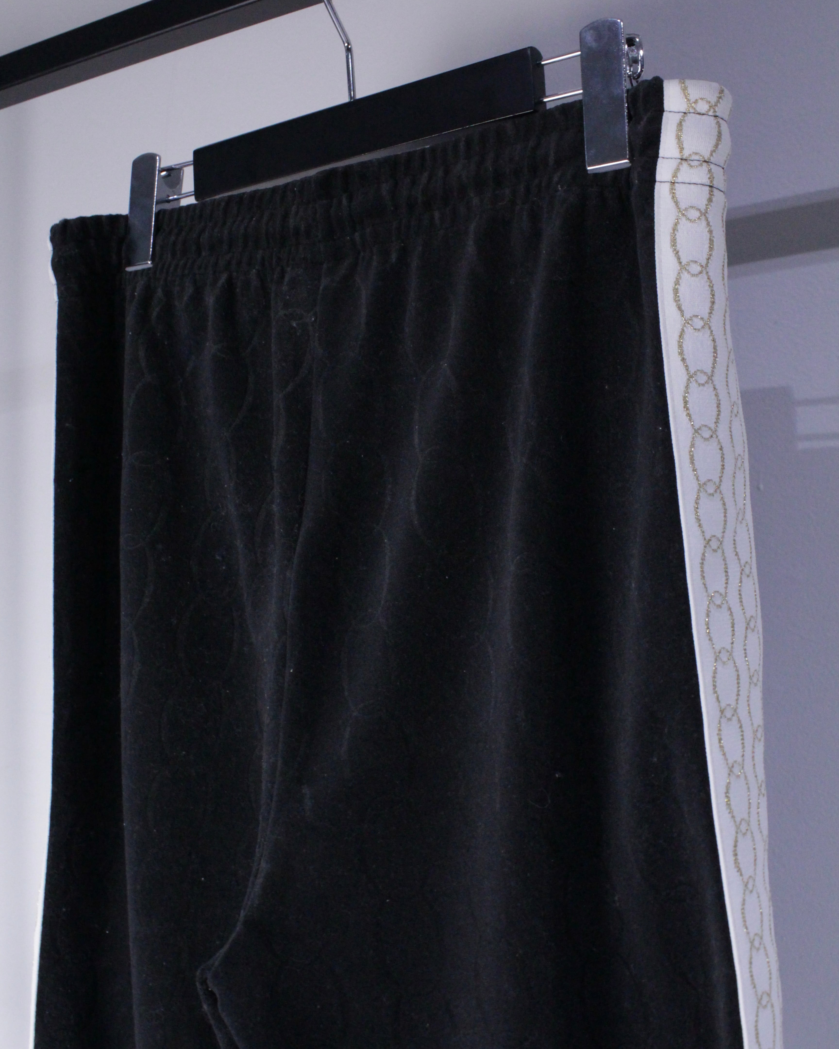 スポーティーな印象の強いトラックジャケットに、鈍い光沢を帯びたベロア素材を落とし込み、ラグジュアリーな雰囲気に昇華させたデザインバランスも素晴らしいですね。