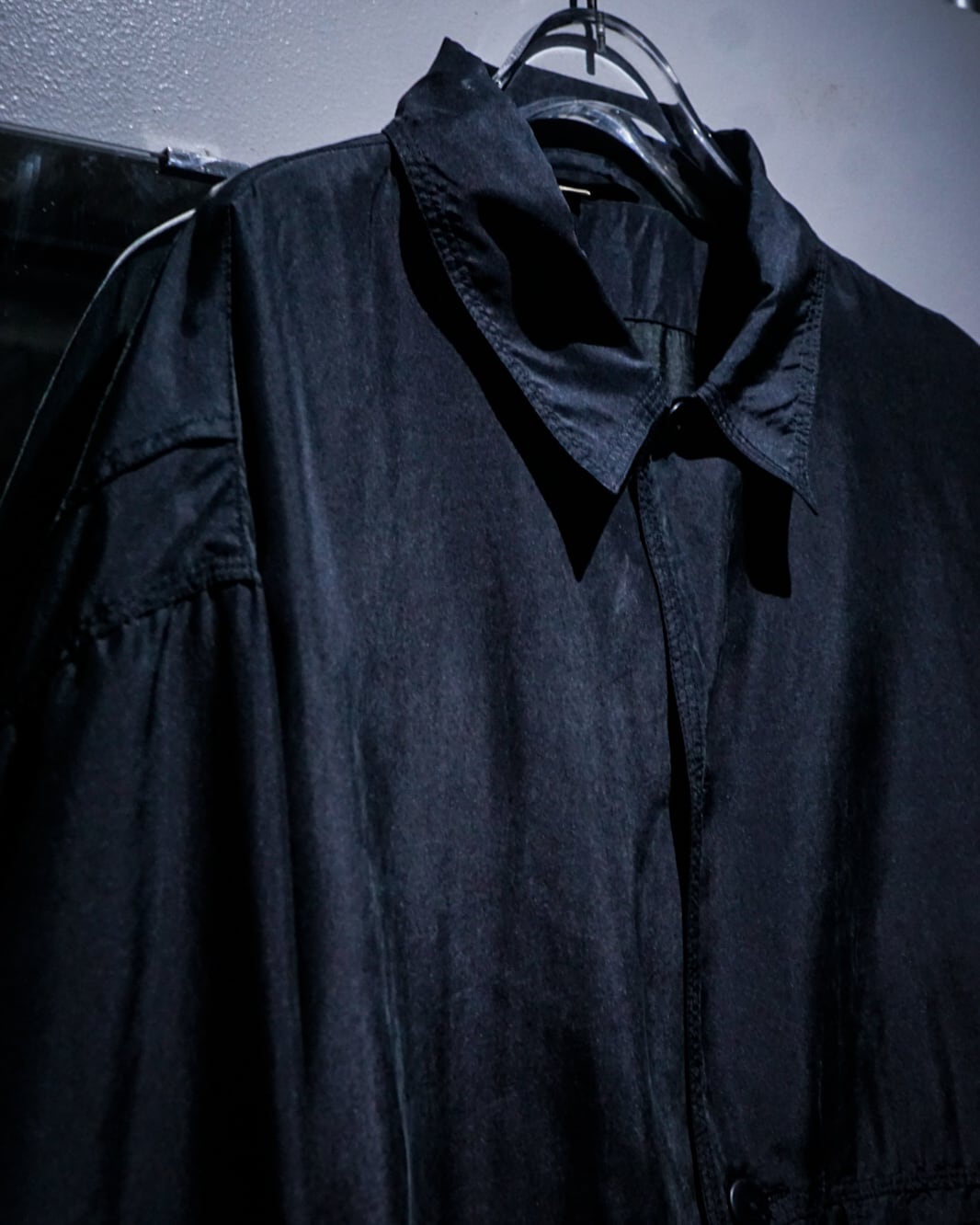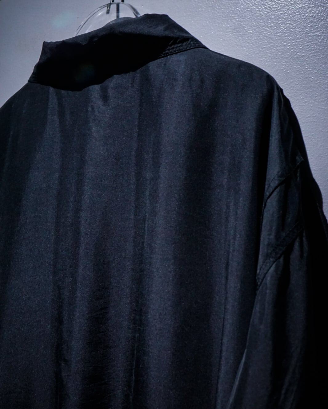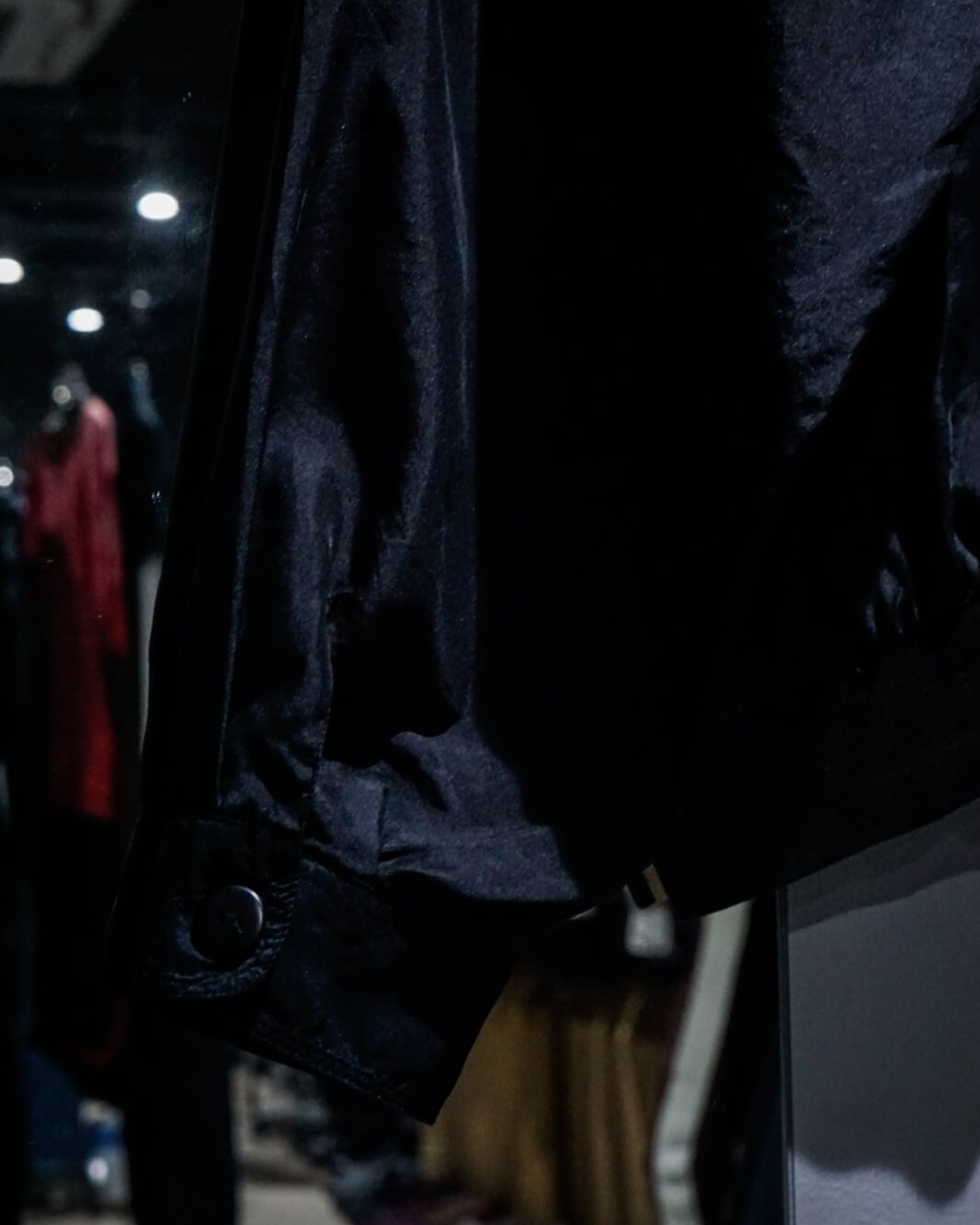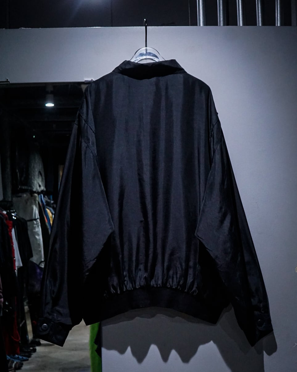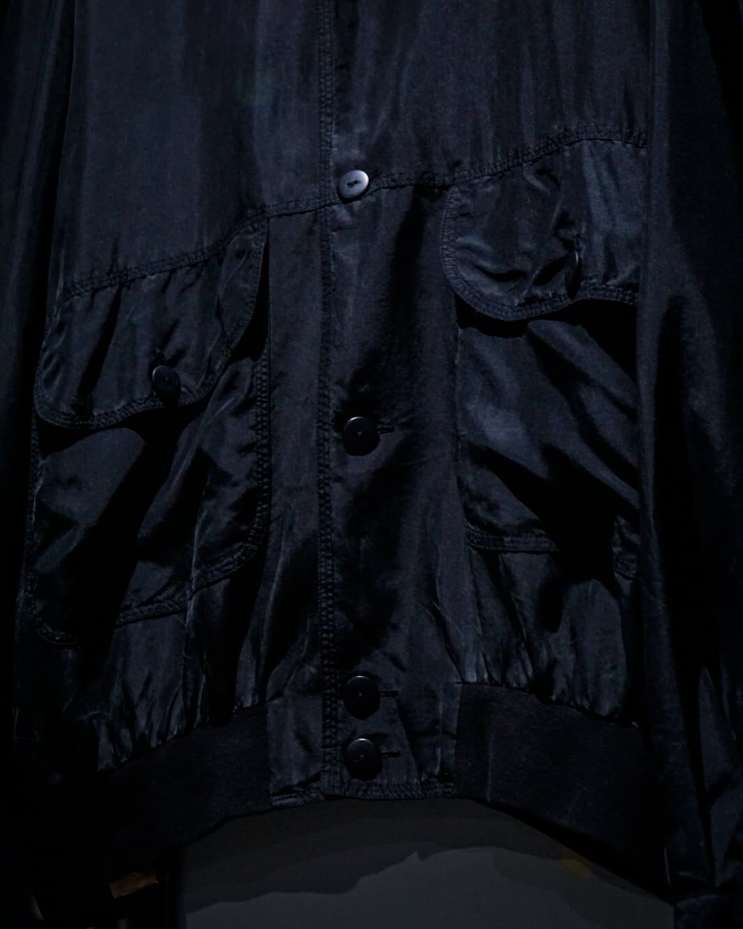 ツルッとハリのある黒のシルク生地を用いて、フライトジャケットの定番でもあり名作A-2型に落とし込んだジャケット。