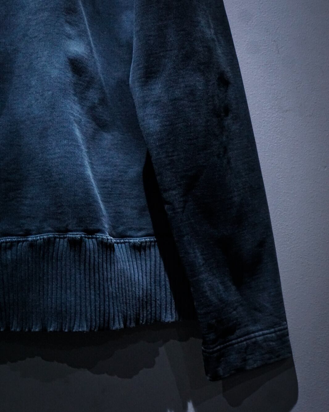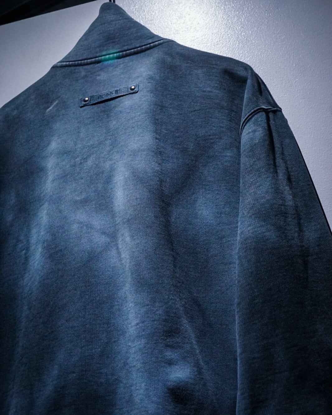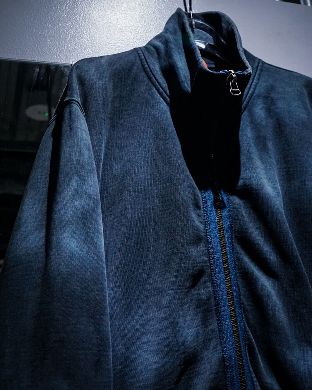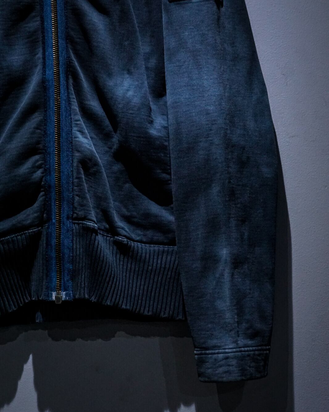 肉感のあるボディに染めを施した、グラデーションが非常に美しいジップアップスウェットジャケット。