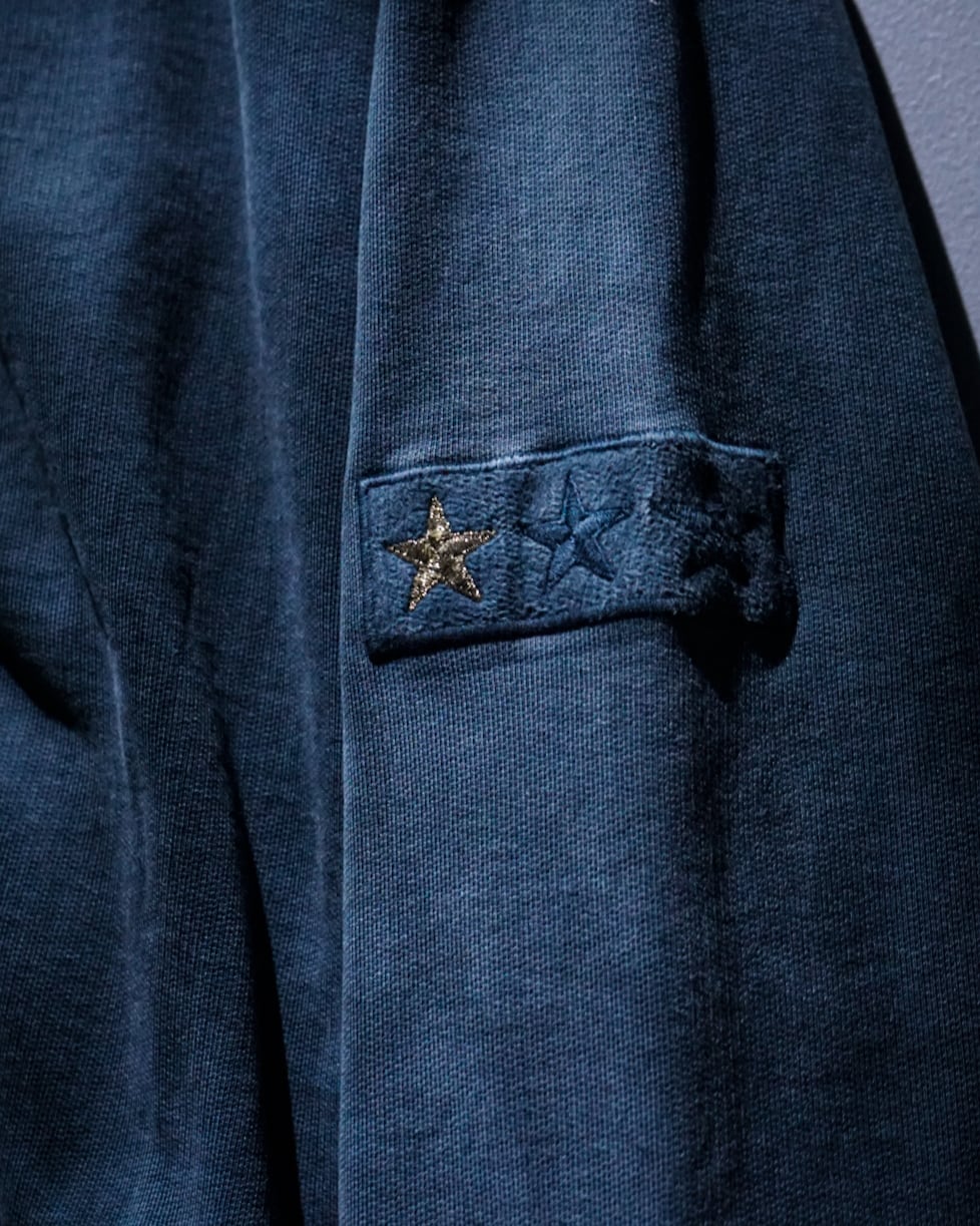 染めのボディが程よくフェードし生まれた奥行きのある表情も味わい深く、雰囲気をムンムンに漂わせています。左腕の階級章などのミリタリーをインソースにしたディテール使いも◎