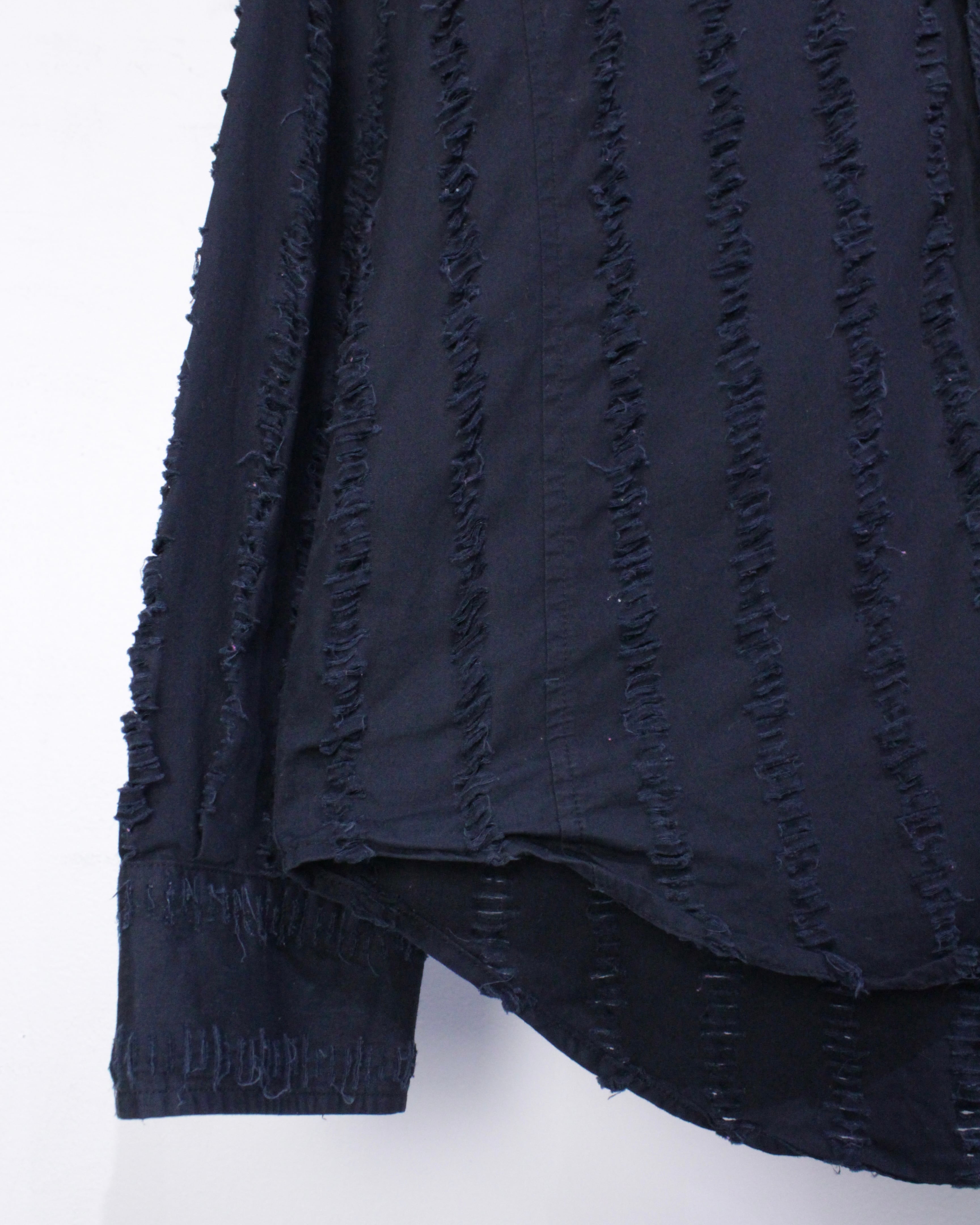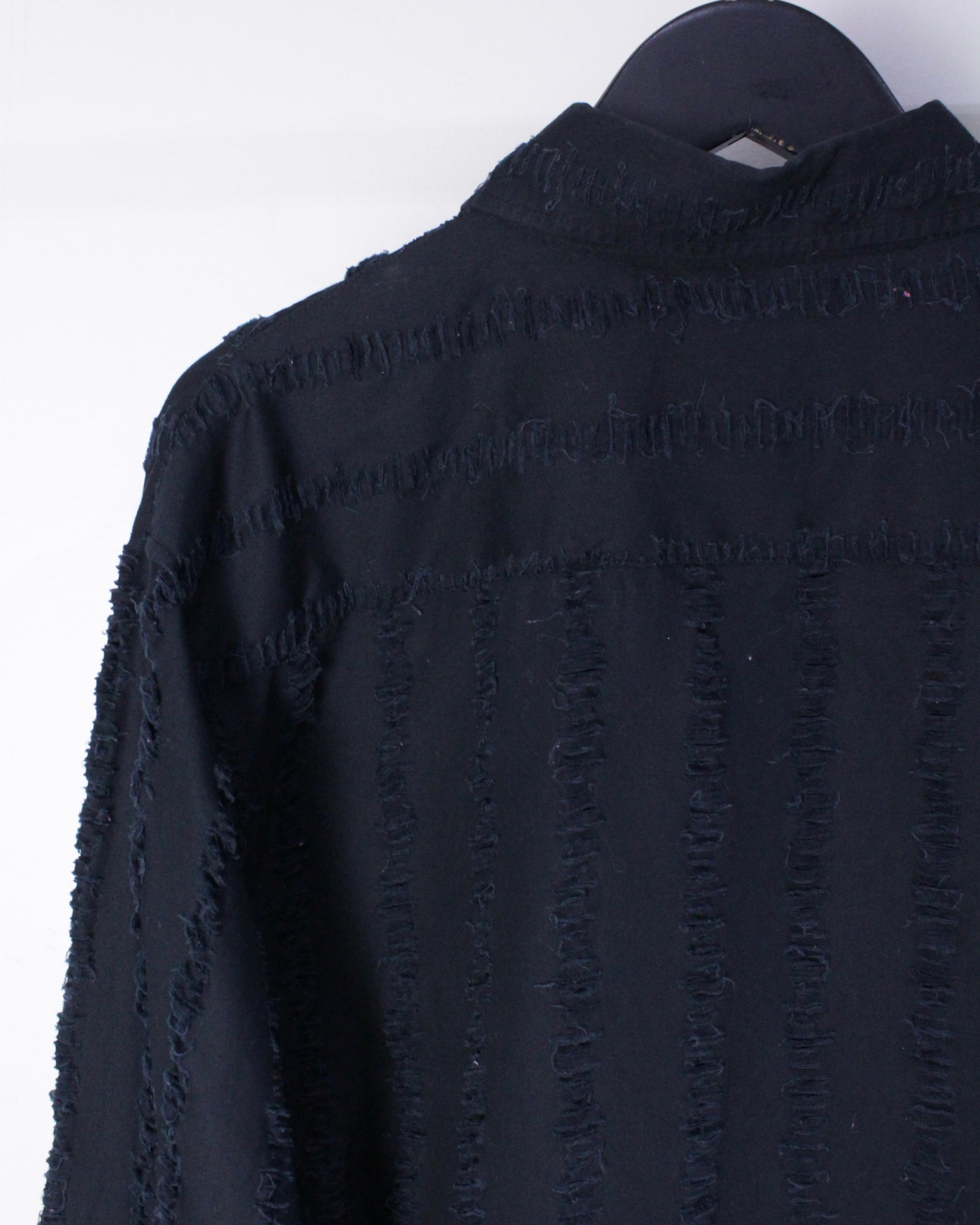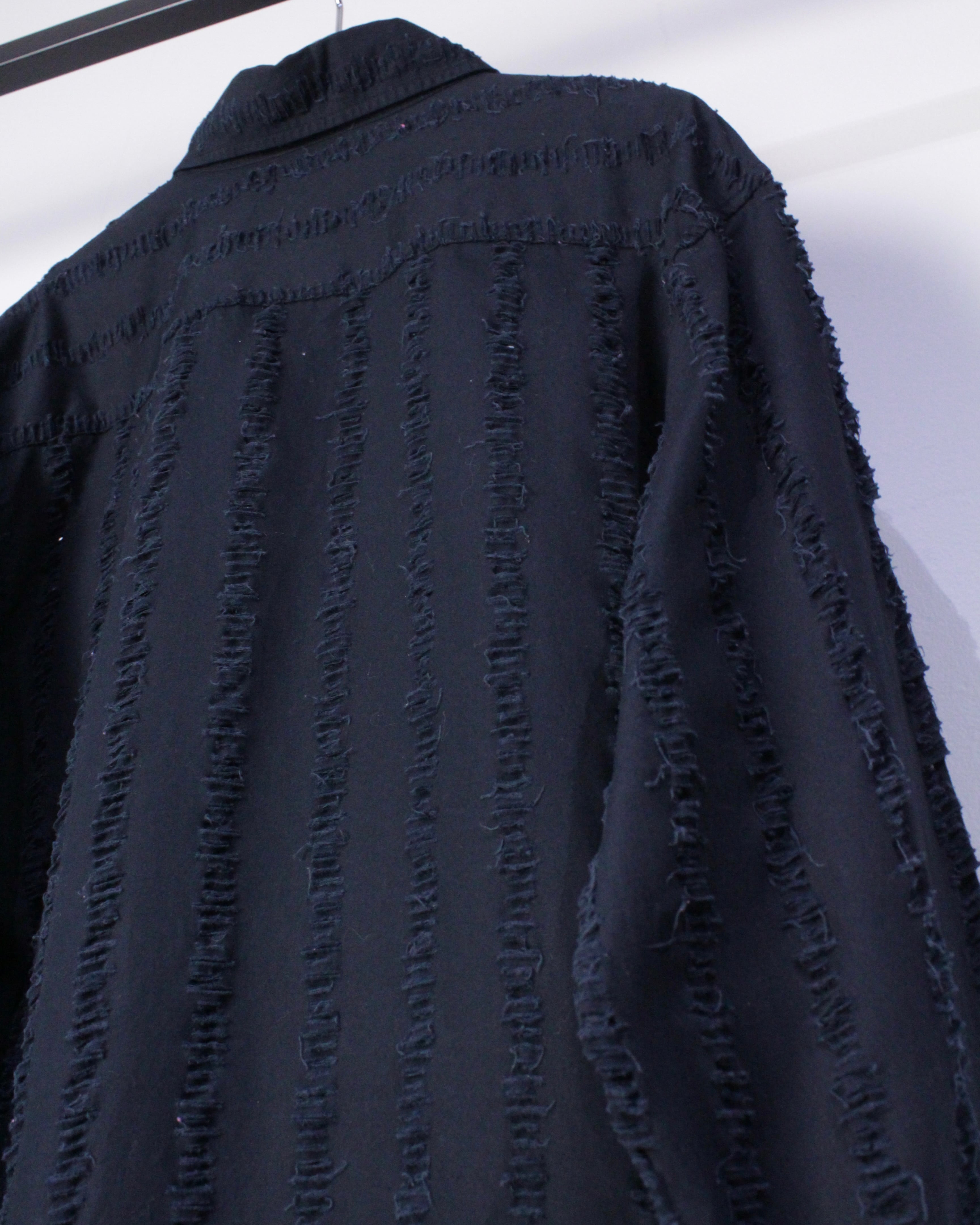 ハリのあるブラックのボディに、ダメージを加えた長袖シャツ。