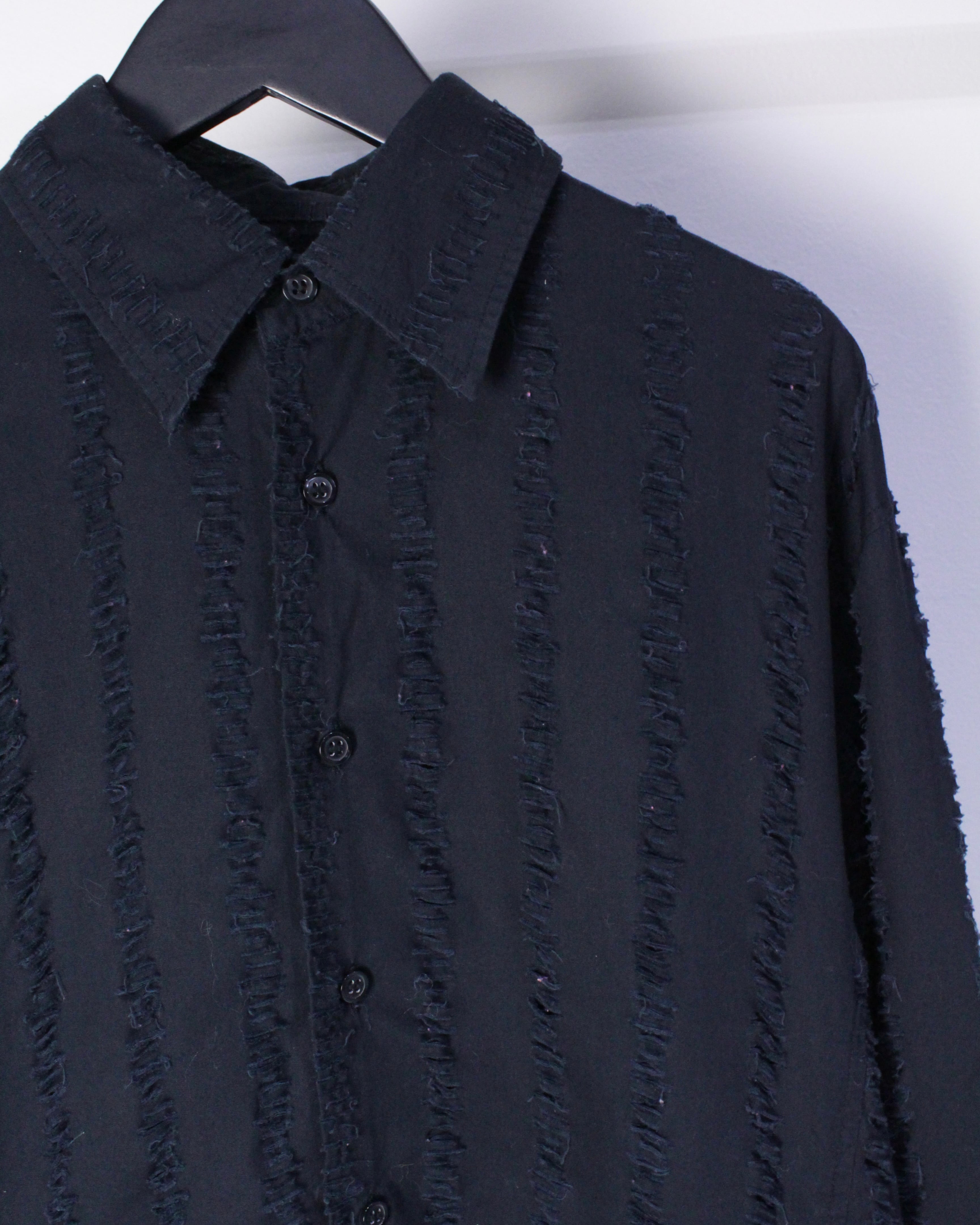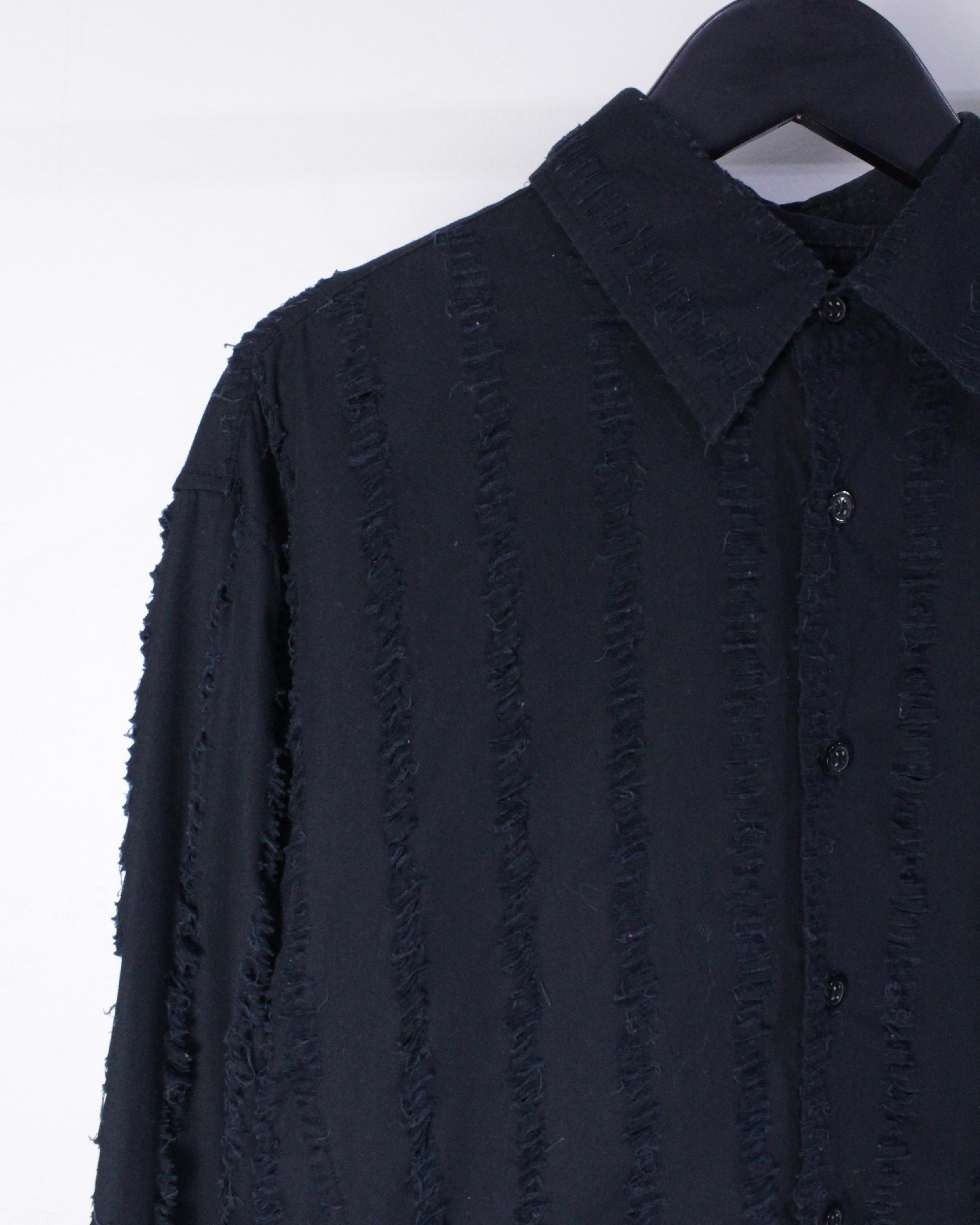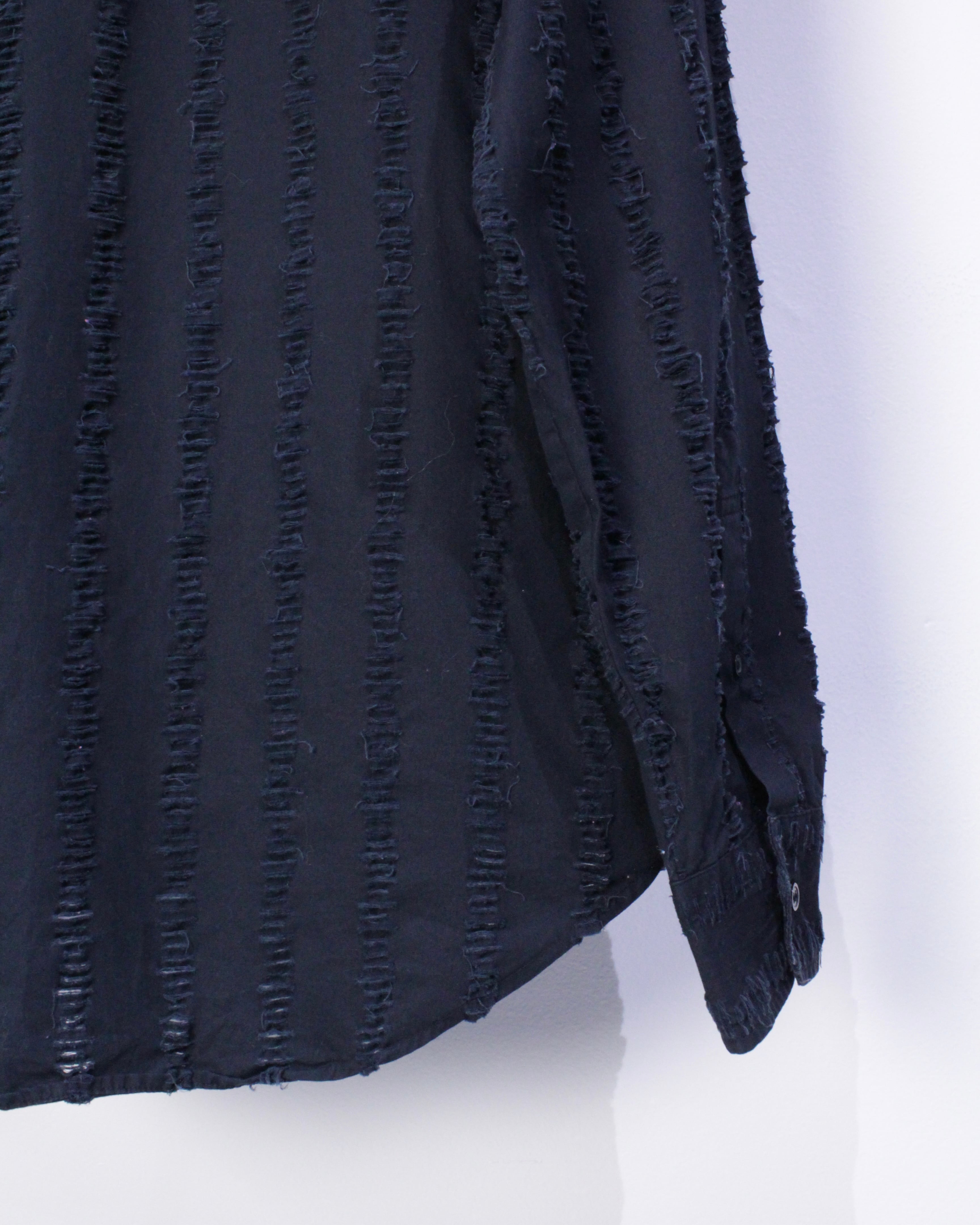 ハリのあるブラックのボディに、ダメージを加えた長袖シャツ。