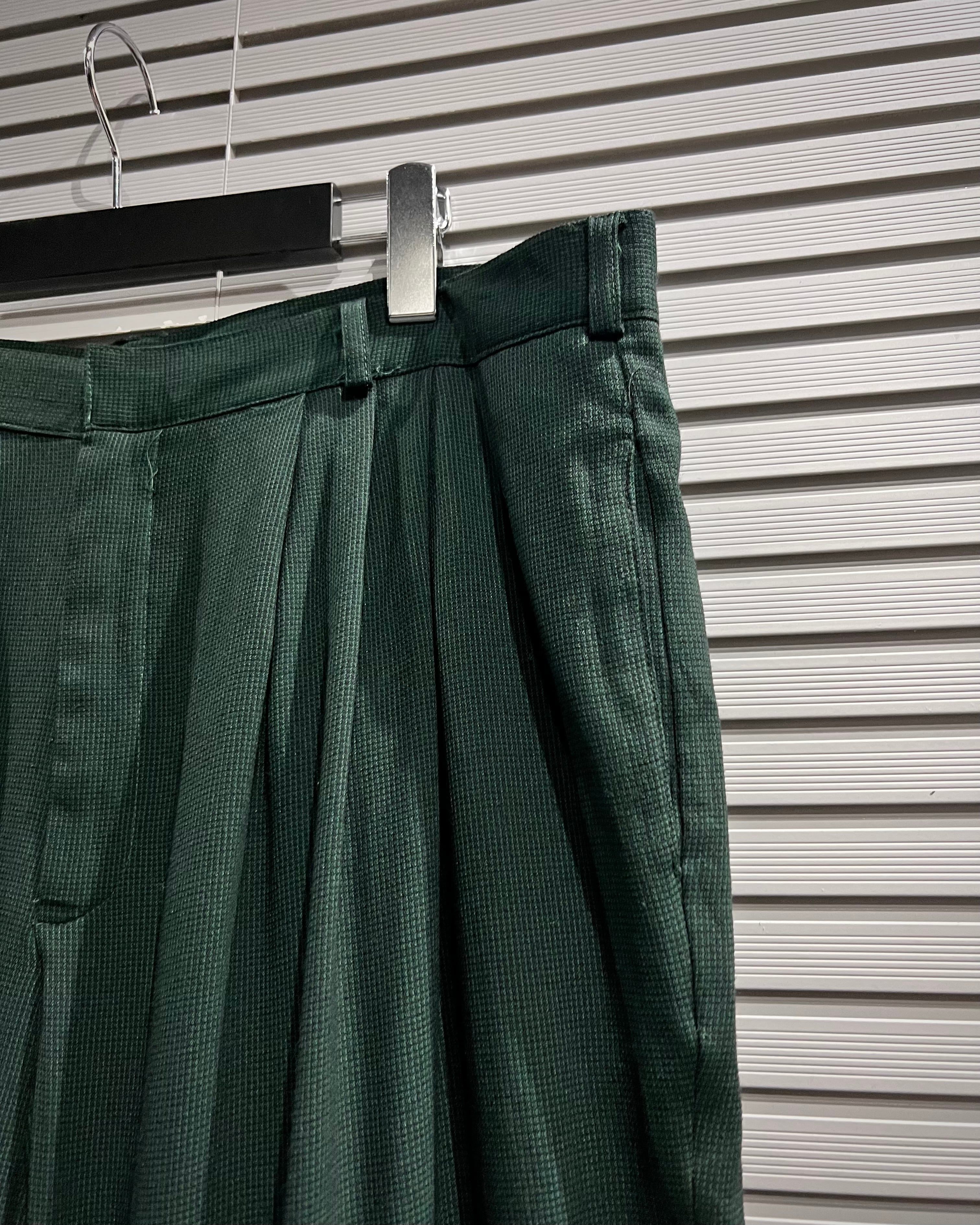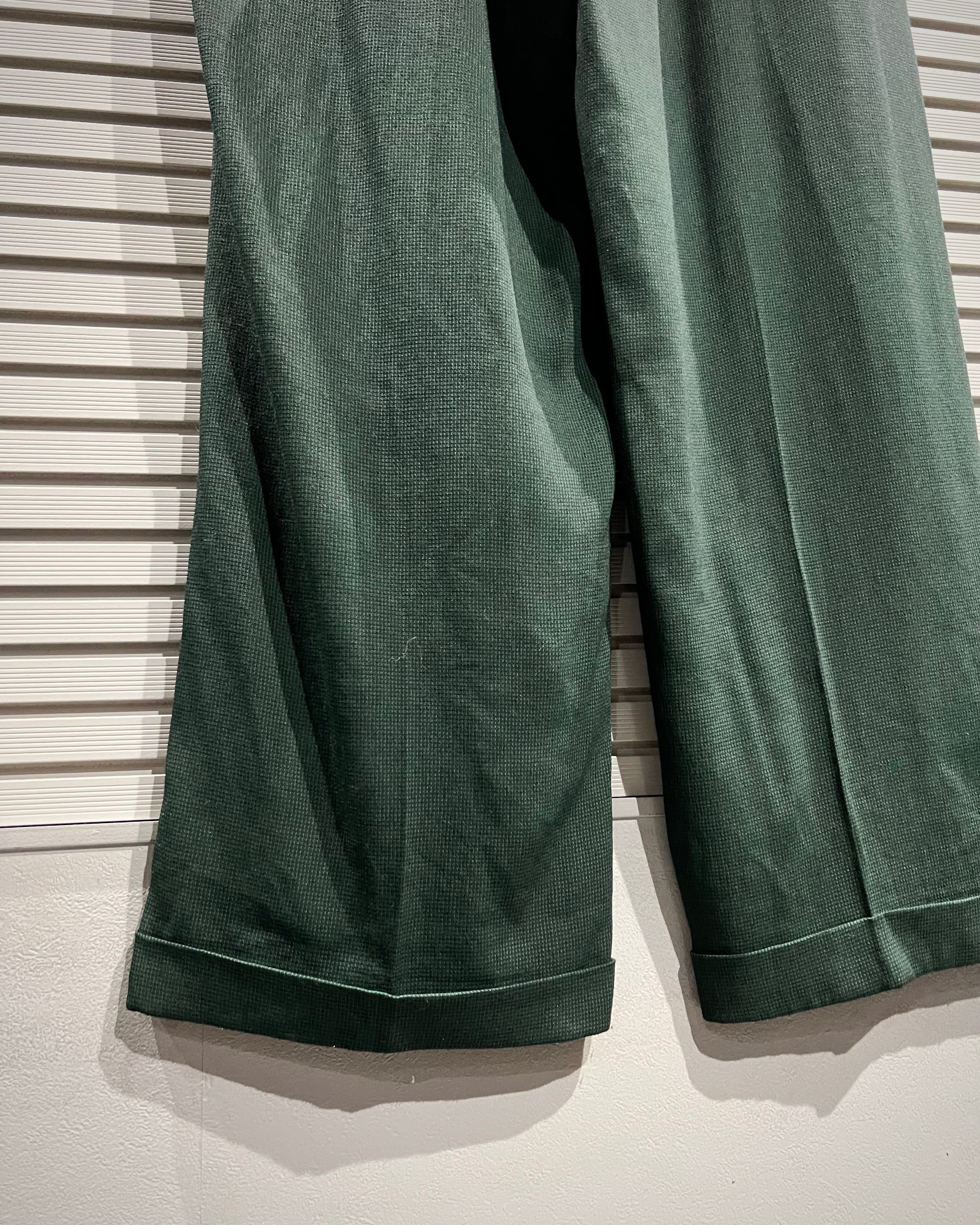 パンツはタック入り、ズドンとワイドで裾に向かって落ちるストレートシルエット。ウエストをギュッと絞った際のシルエットが非常に美しく、太めのスラックスって今まさに気分ですよね。
