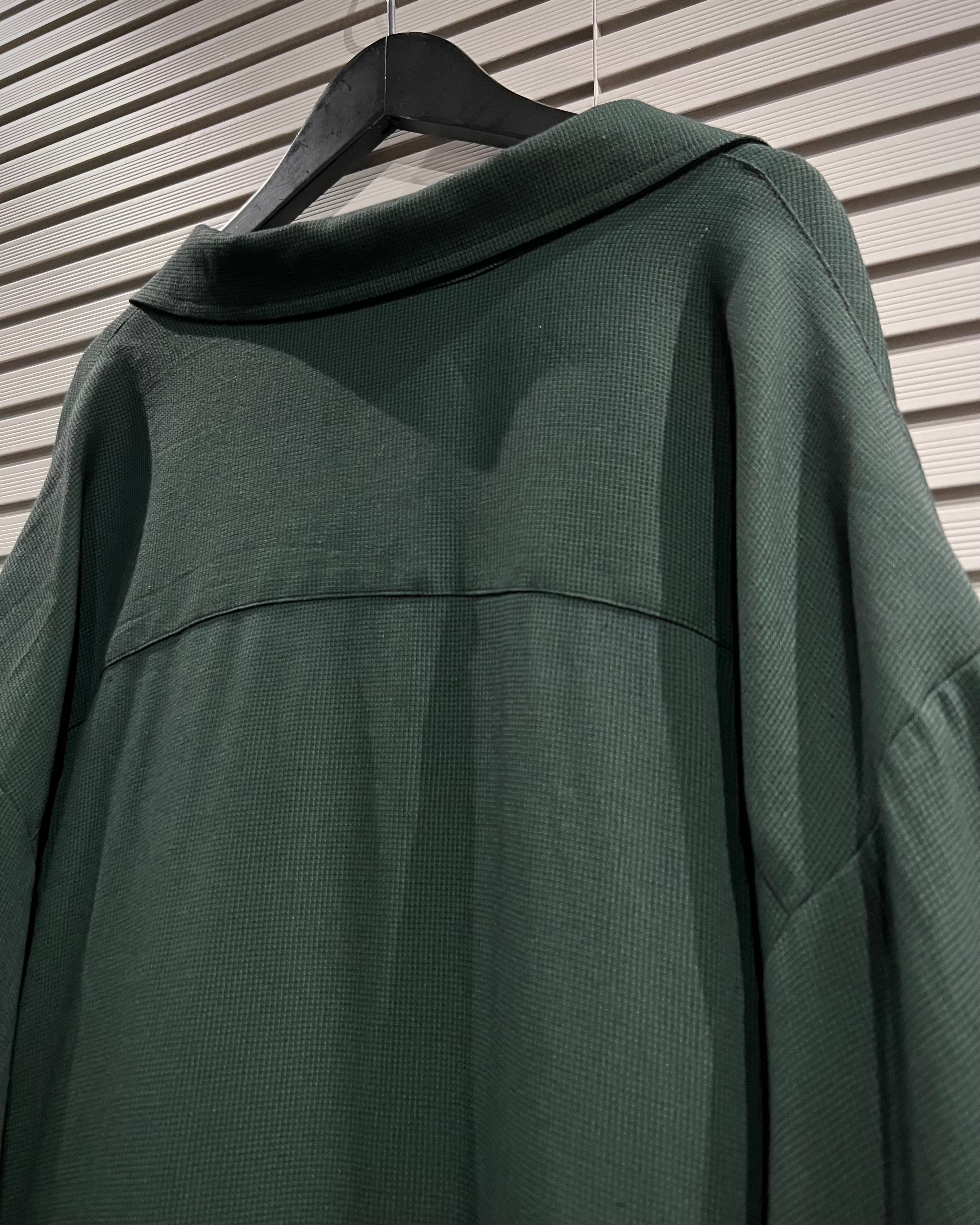 シャツはフロントにパッチポケット。デザインの効いたボタンをアクセントに、オープンカラーにボックスシルエットのルーズなサイジング。一枚で着るのはもちろん、Tシャツやタンクトップとのレイヤードもオススメです。