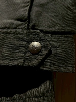 フロントはジップ×スナップボタンから成る二重構造の比翼仕立て。トップボタンにのみ、重厚感漂うシルバーのファイヤーマンバックルを施し、デザインの中にアクセントをプラス。