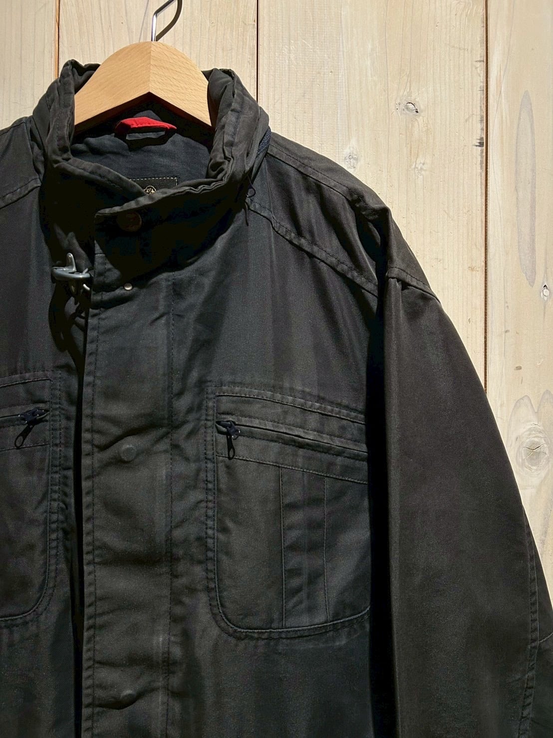 タフで光沢のあるボディに、ファイヤーマンバックルや複数ポケットを載せた、機能性に富んだジャケット。