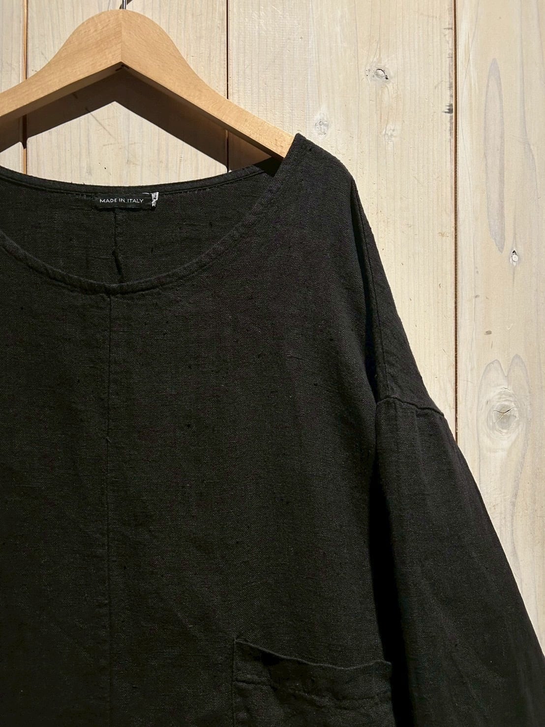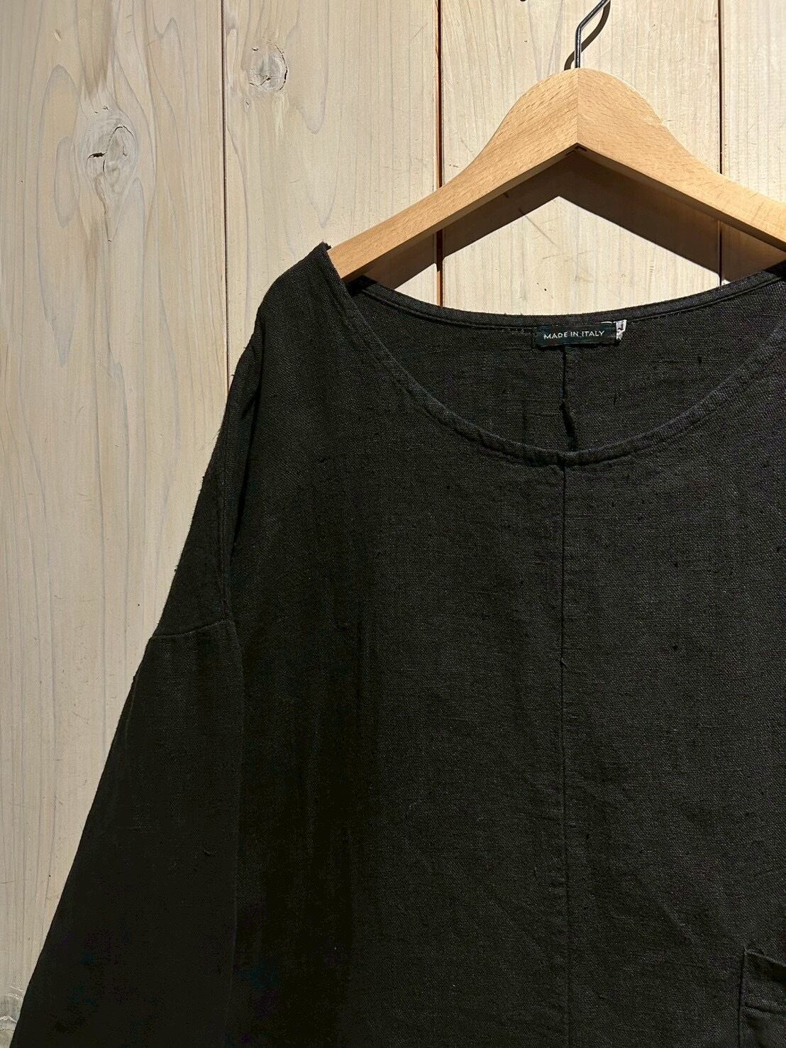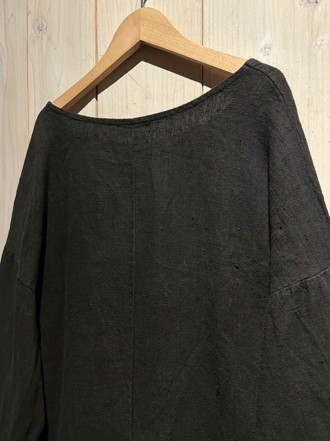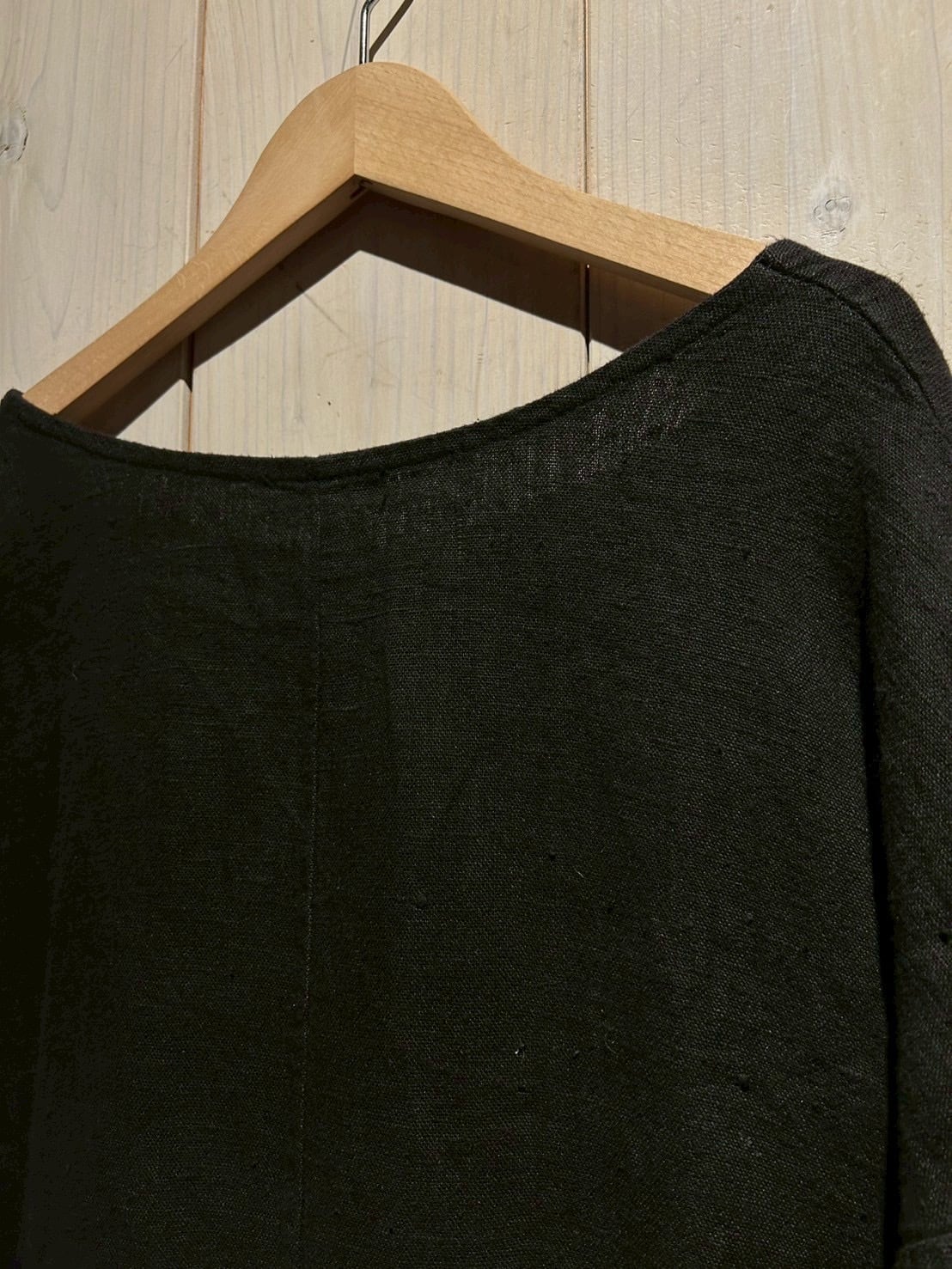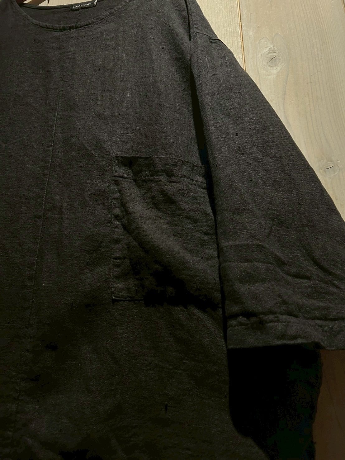 古着業界でも稀少性が高まったブラックリネンを贅沢に用いた、イタリーメイドのプルオーバーシャツ。