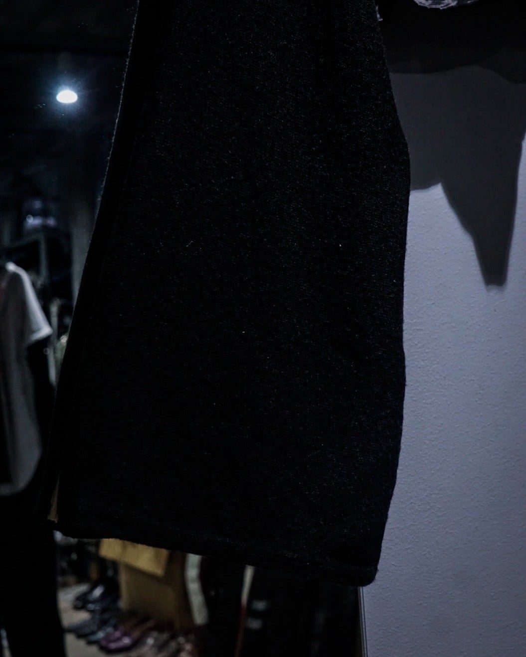写真でも伝わる通り、着丈がおそろしく短く設計されており、レイヤードで存分に遊びを効かせることができる、服好きの皆様に深く刺さること間違いなしの1着。