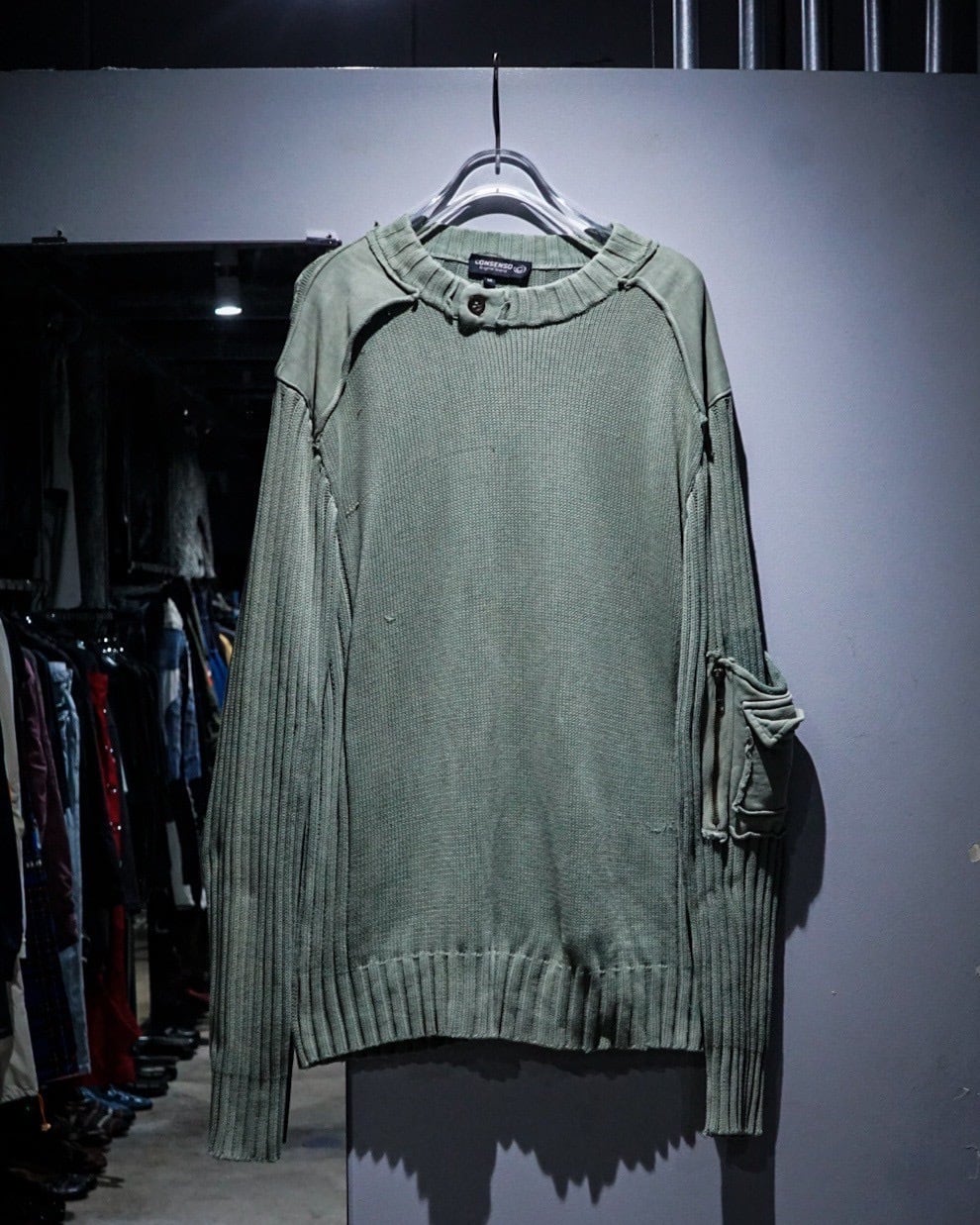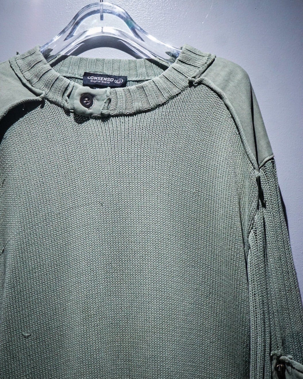異素材の切り替え、インサイドアウト等細やかに作り込まれた当店らしいニットの1着です。