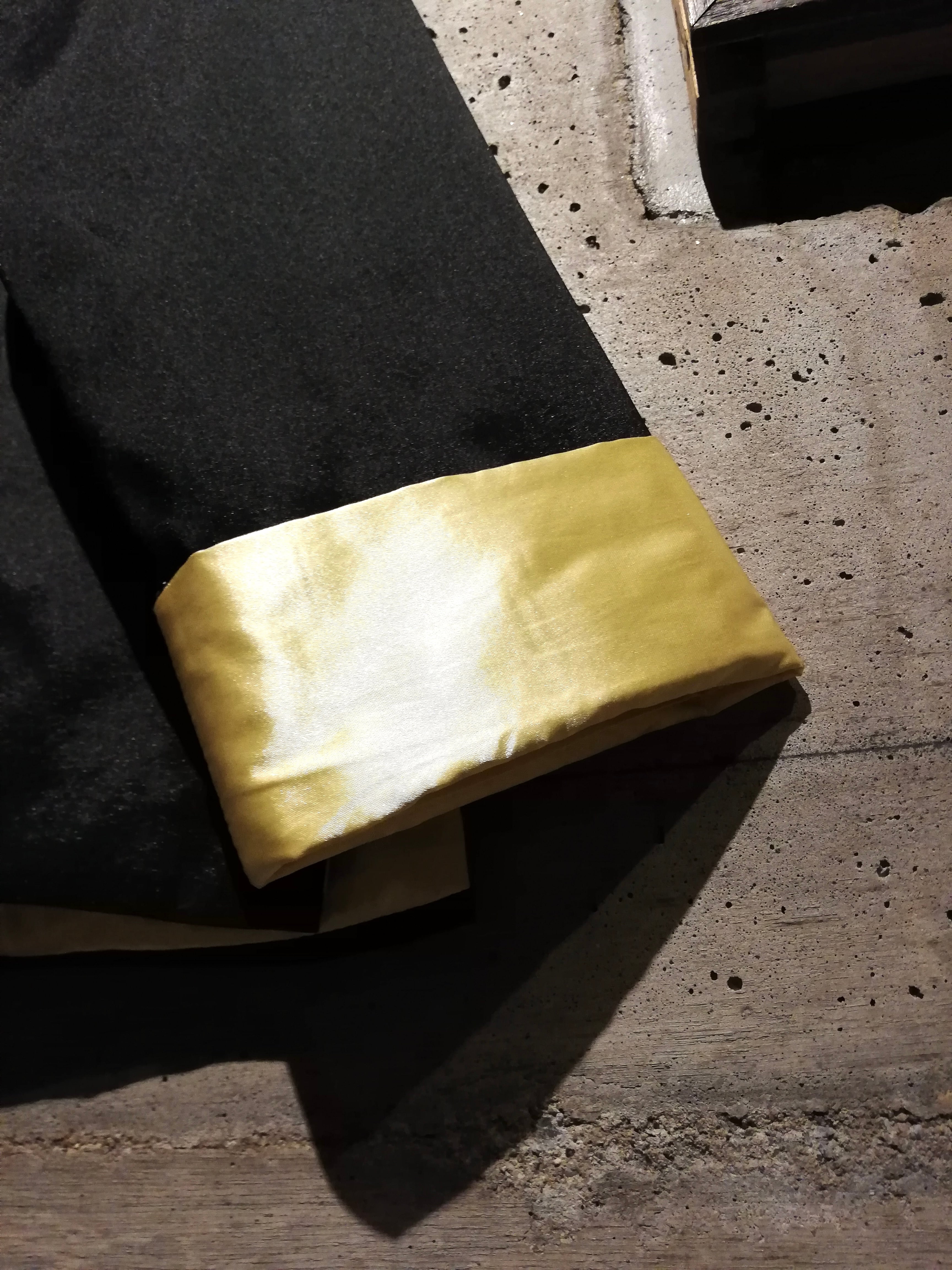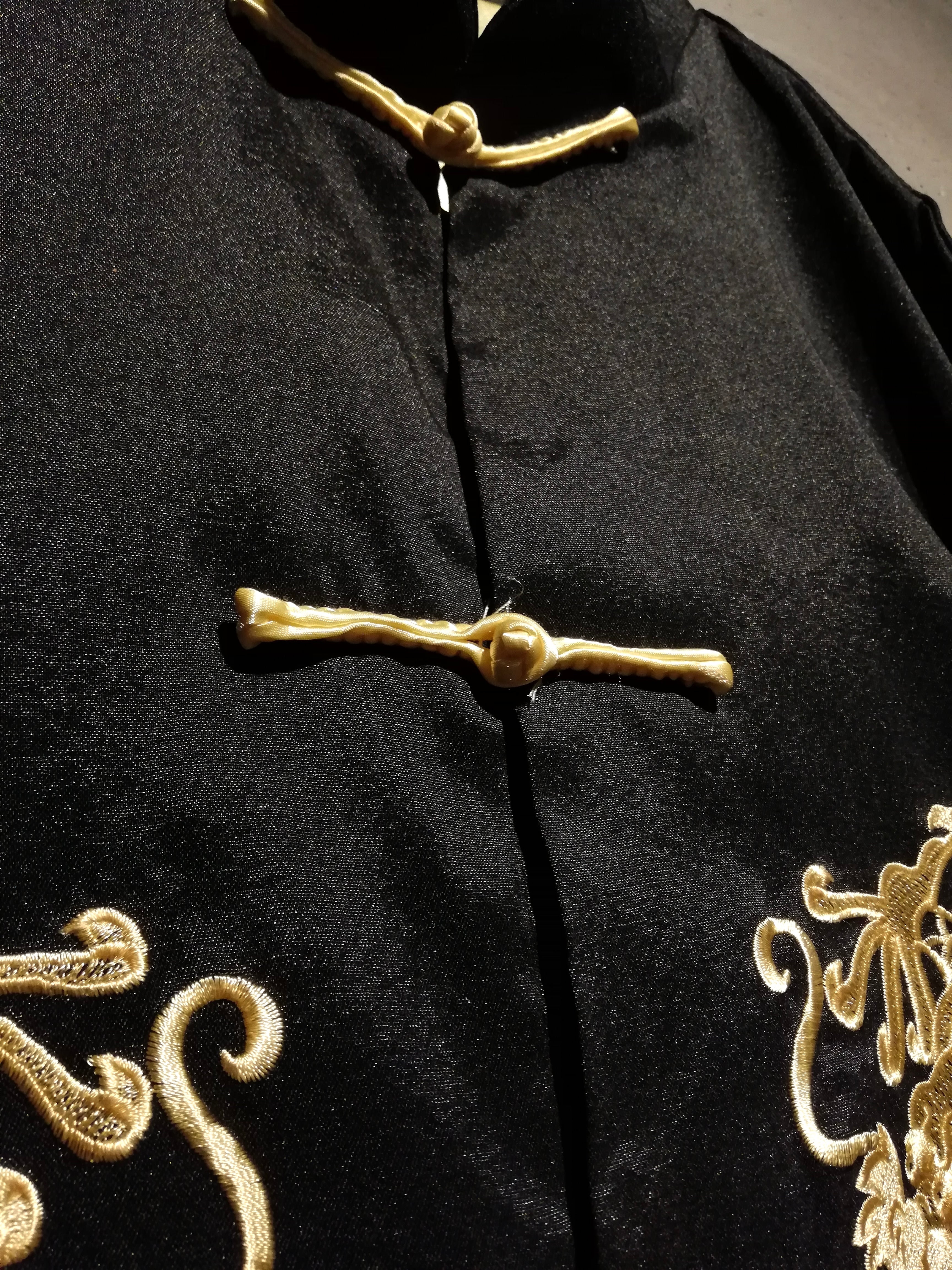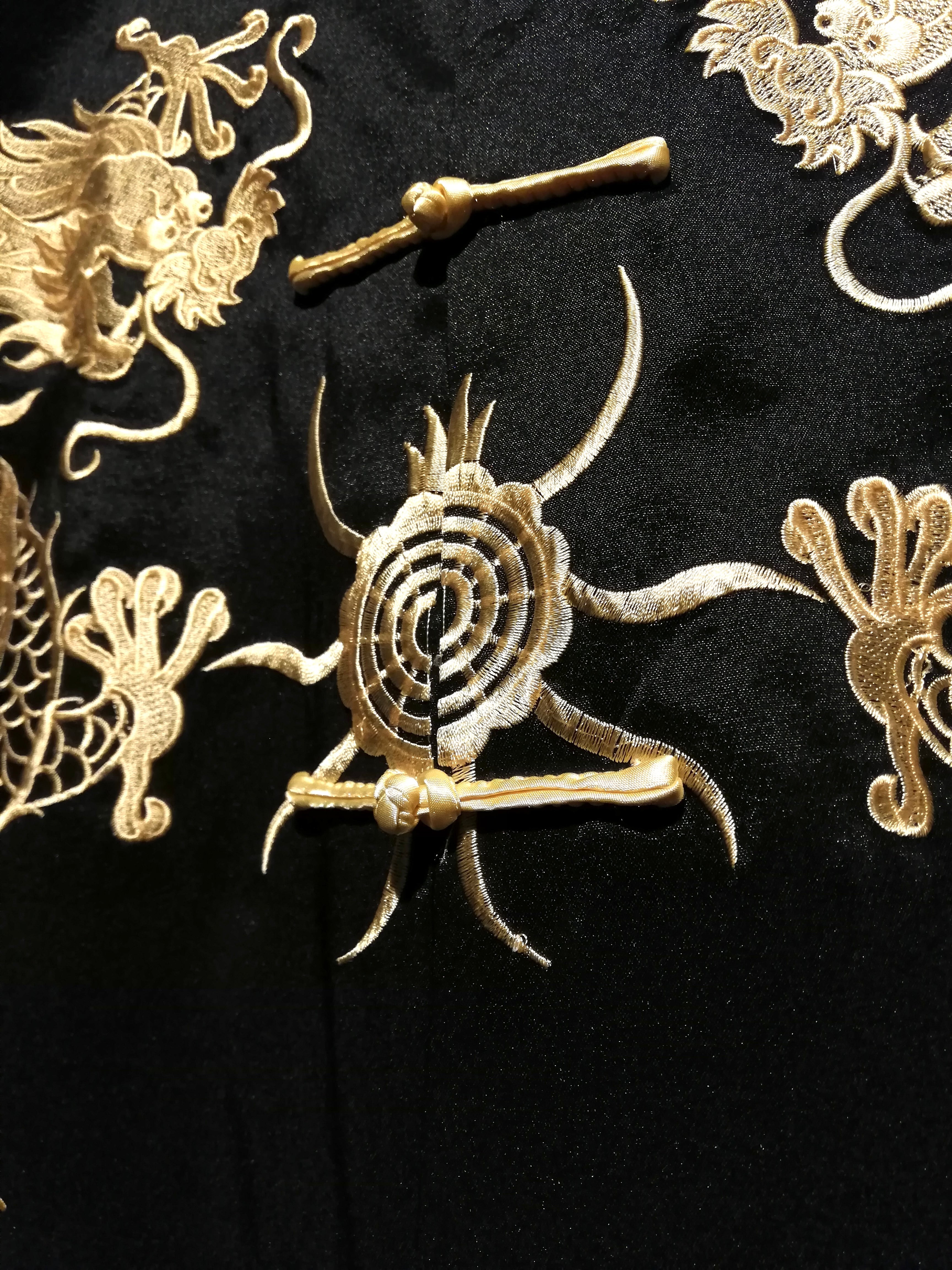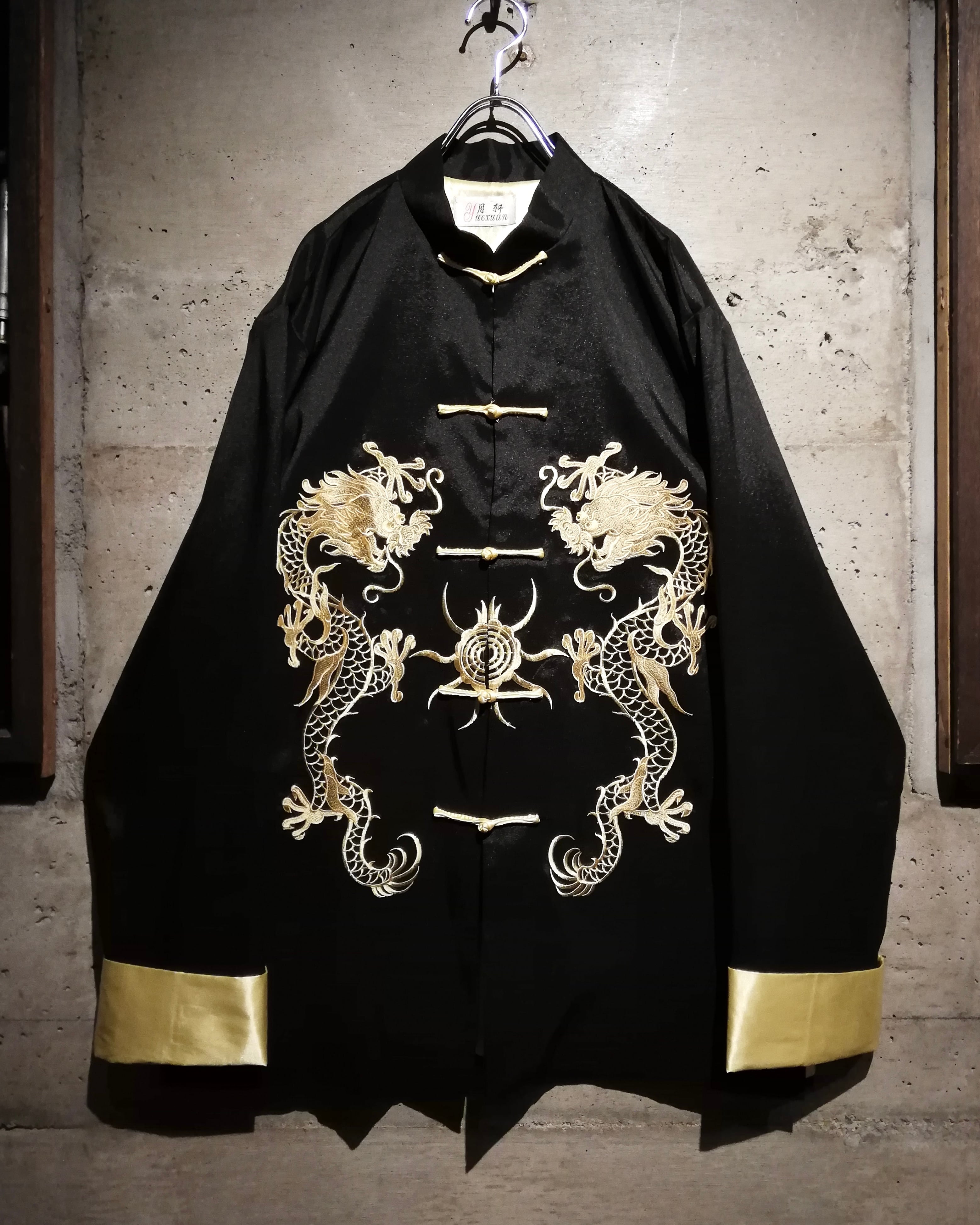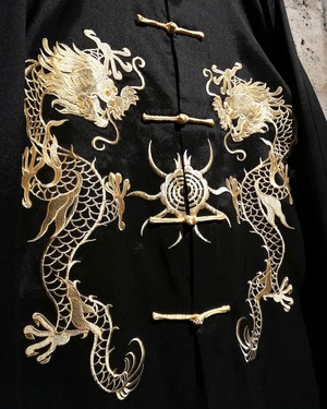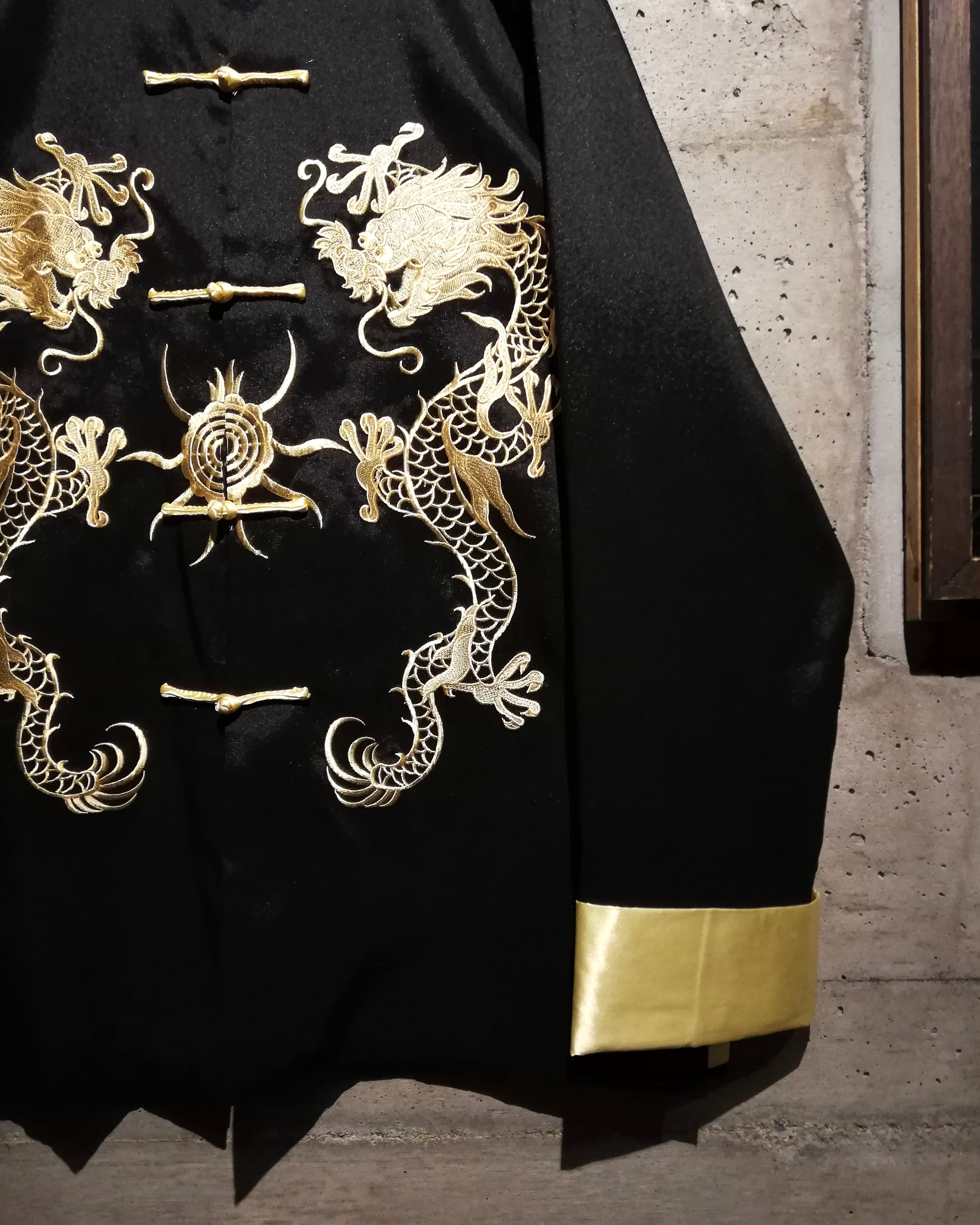 美しい光沢を帯びたブラックのボディに、光り輝くゴールドの龍刺繍を前面に刻み込んだ1着。