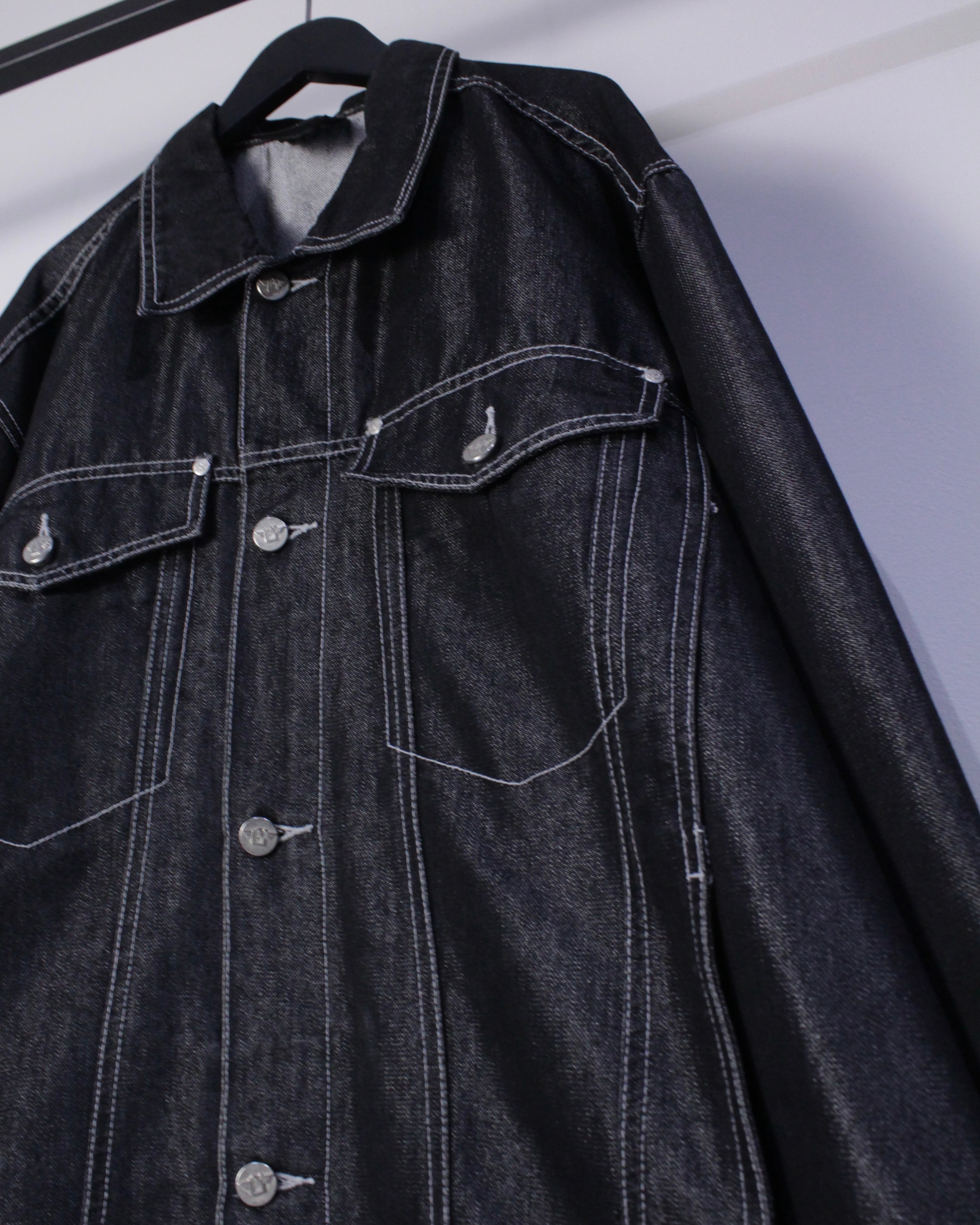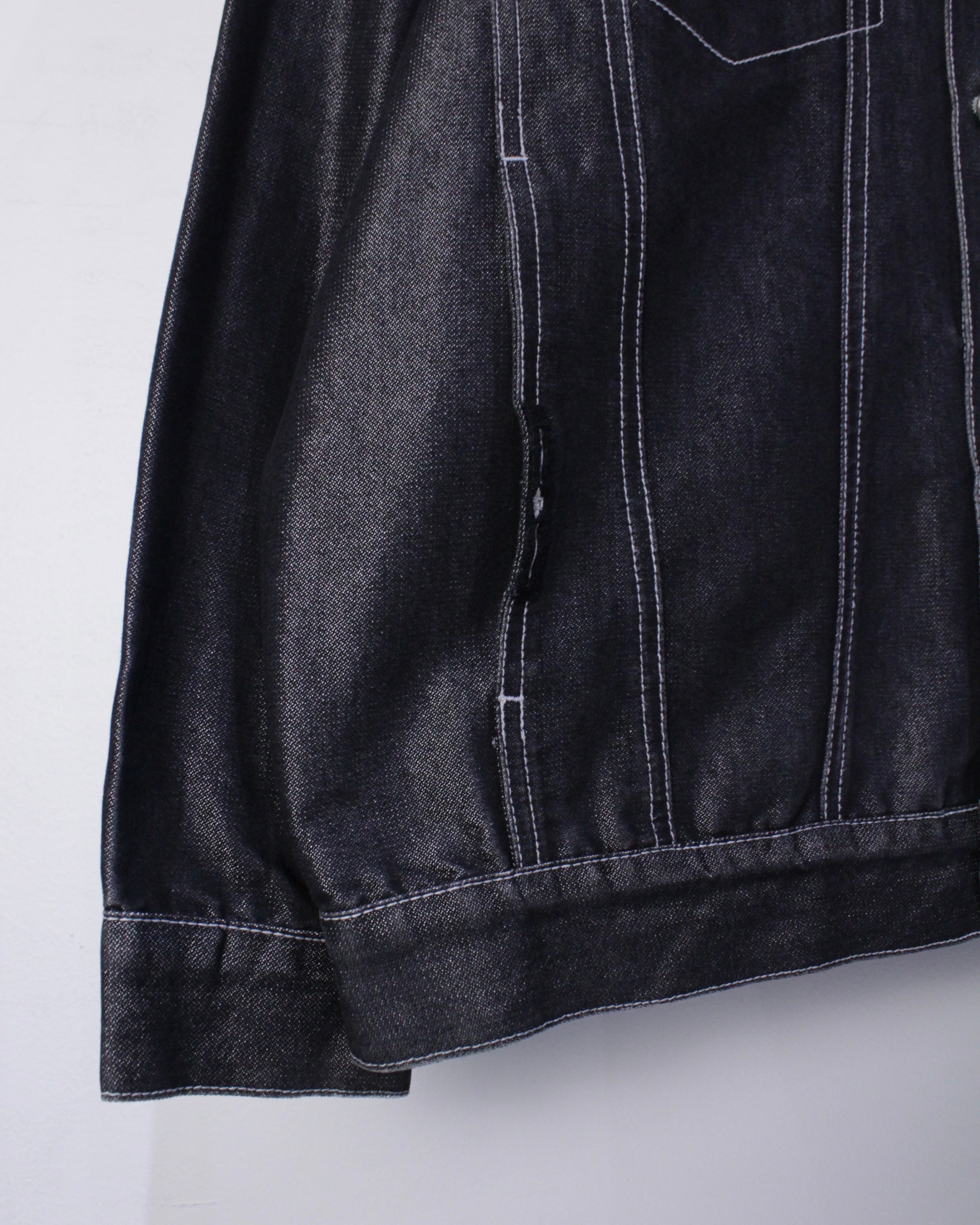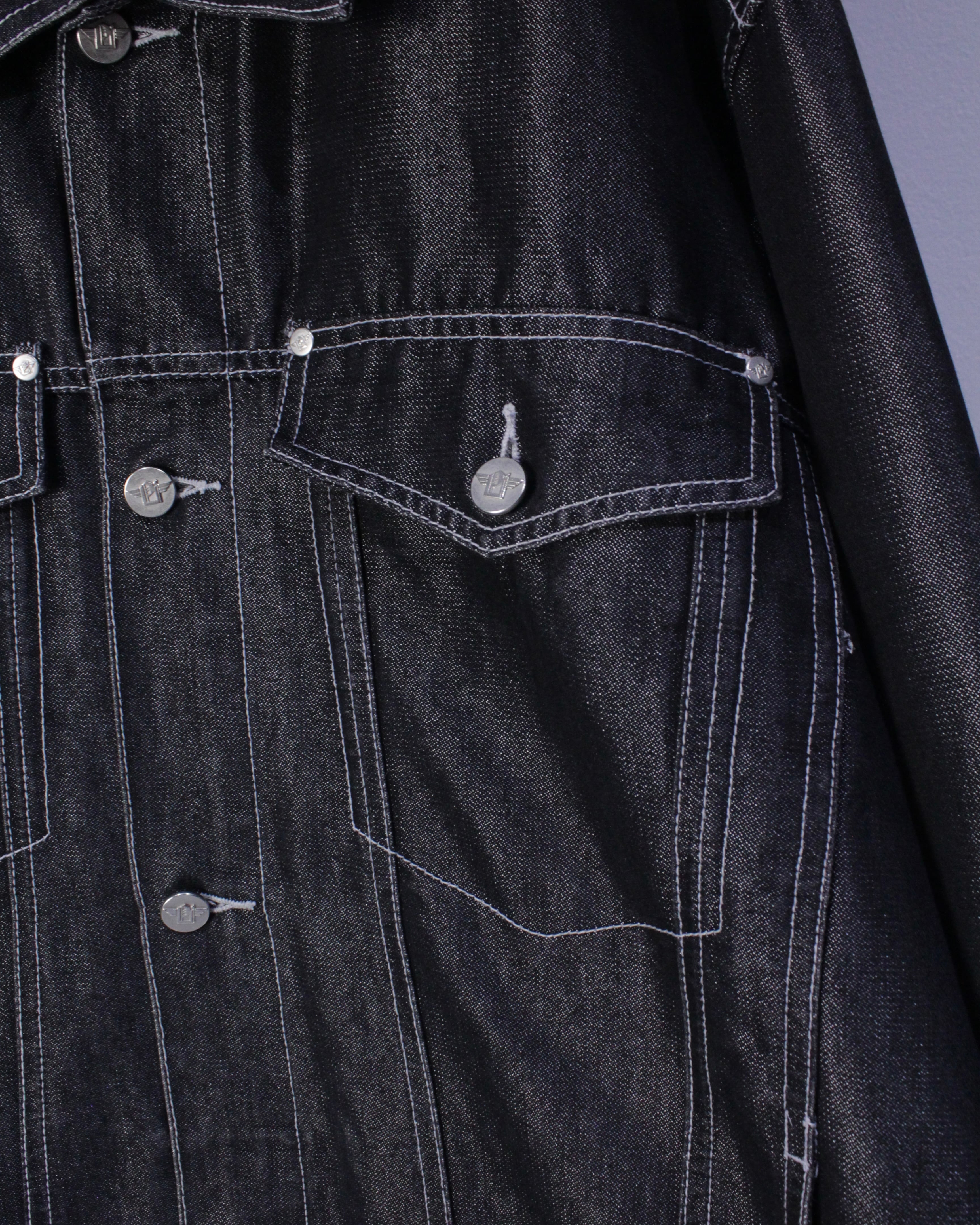 コットン素材をベースに、光り輝くメタリックなポリエステル素材の繊維が織り交ぜられた、ラグジュアリーな雰囲気をムンムンに醸し出すスペシャルなデニムジャケットが入荷。