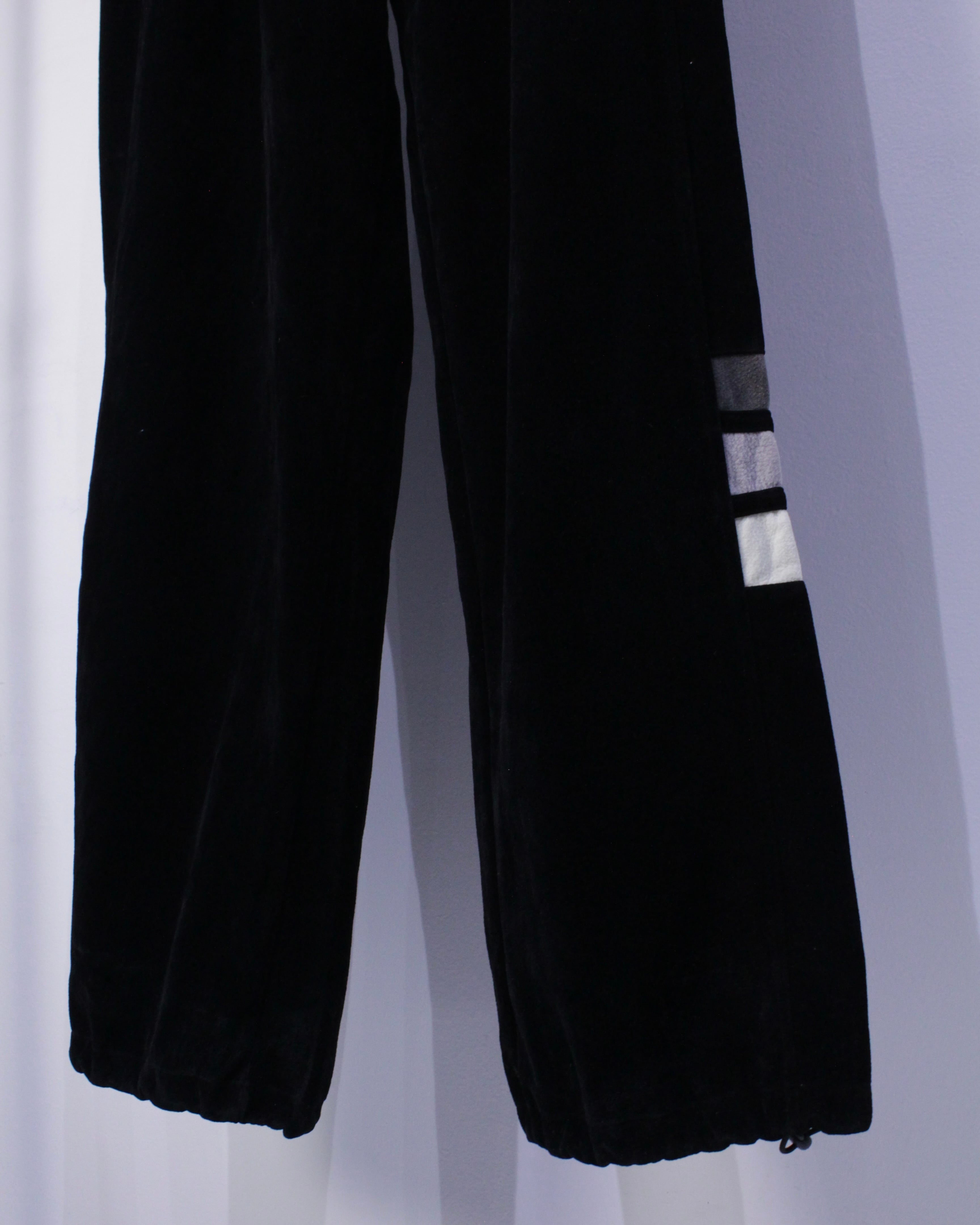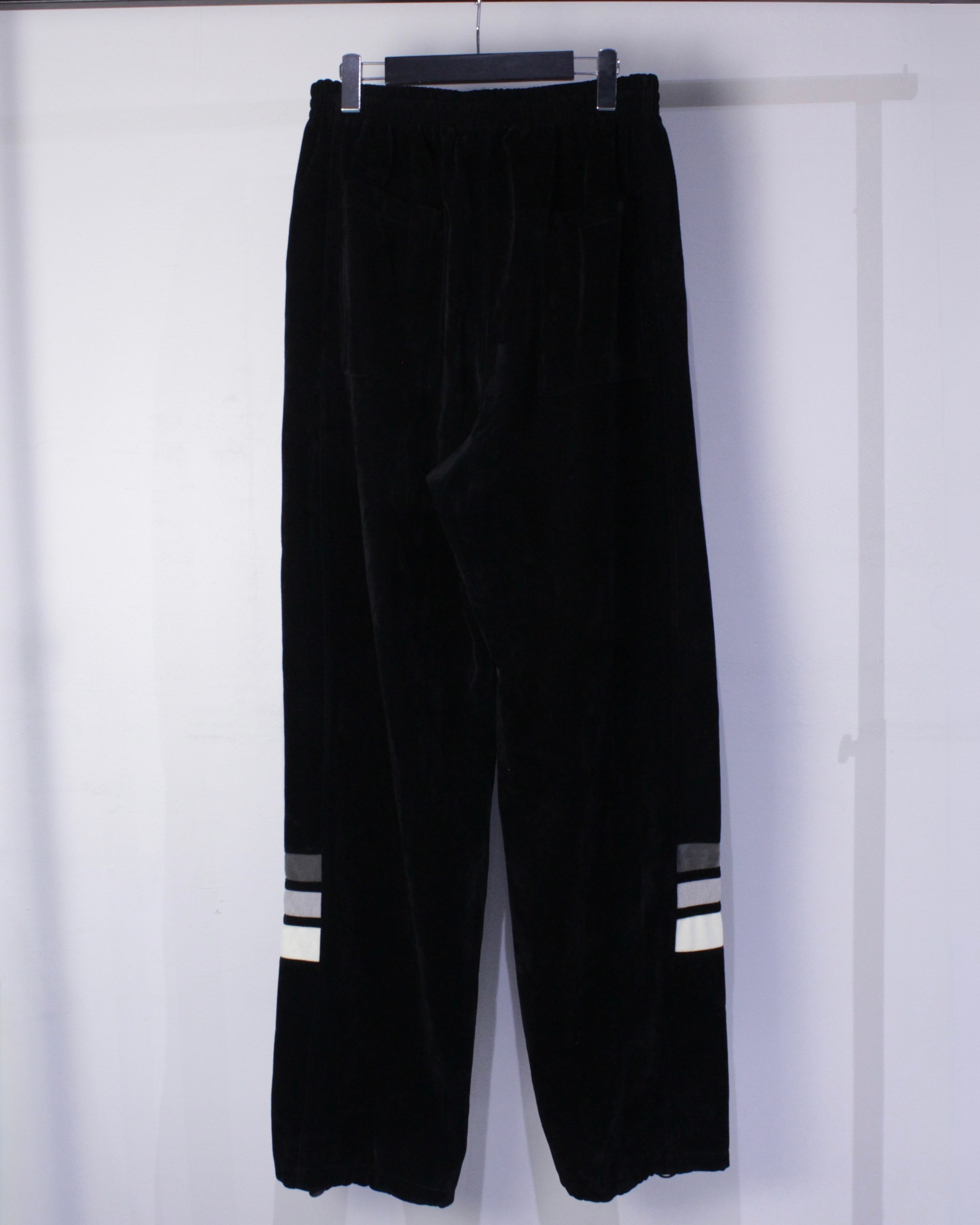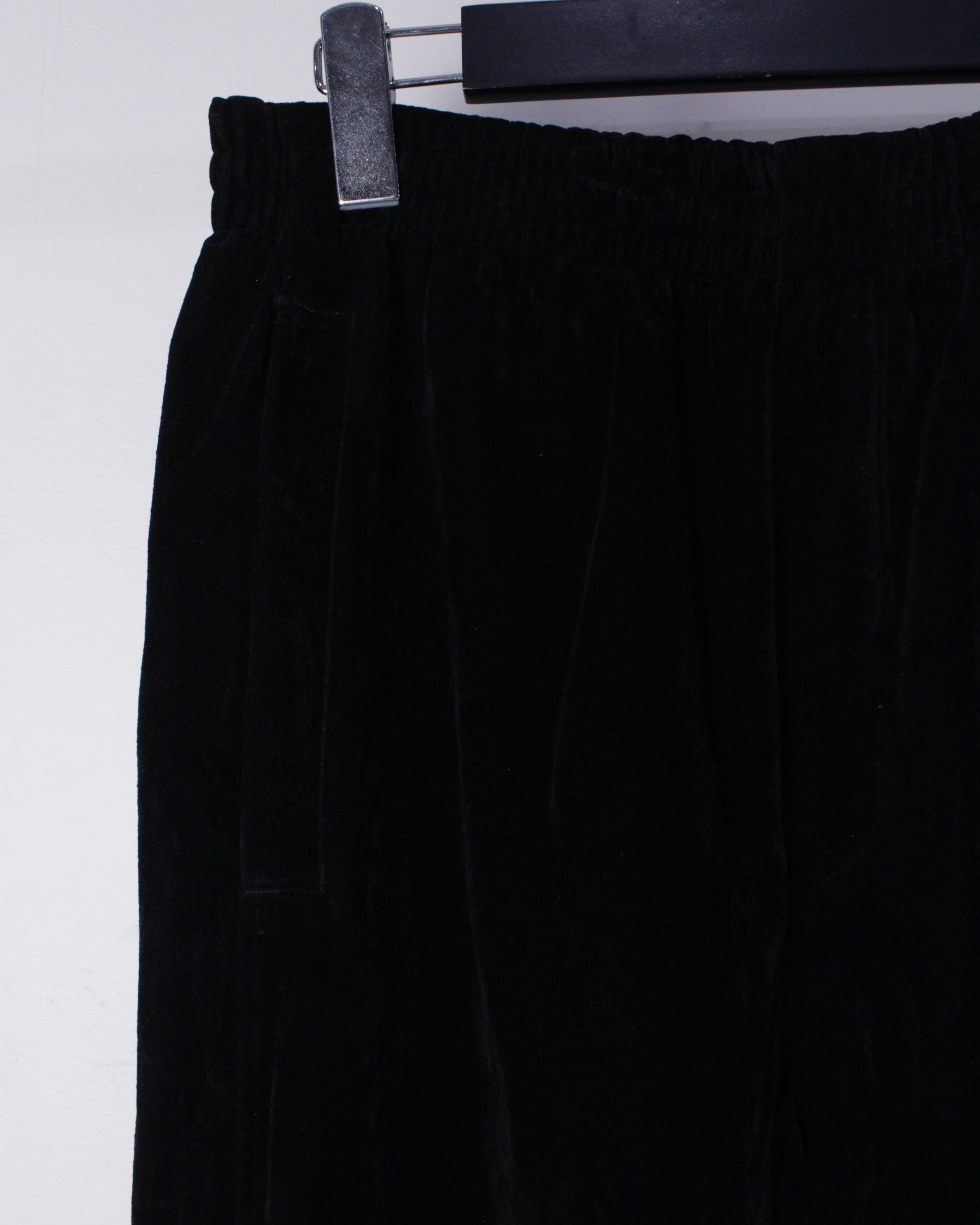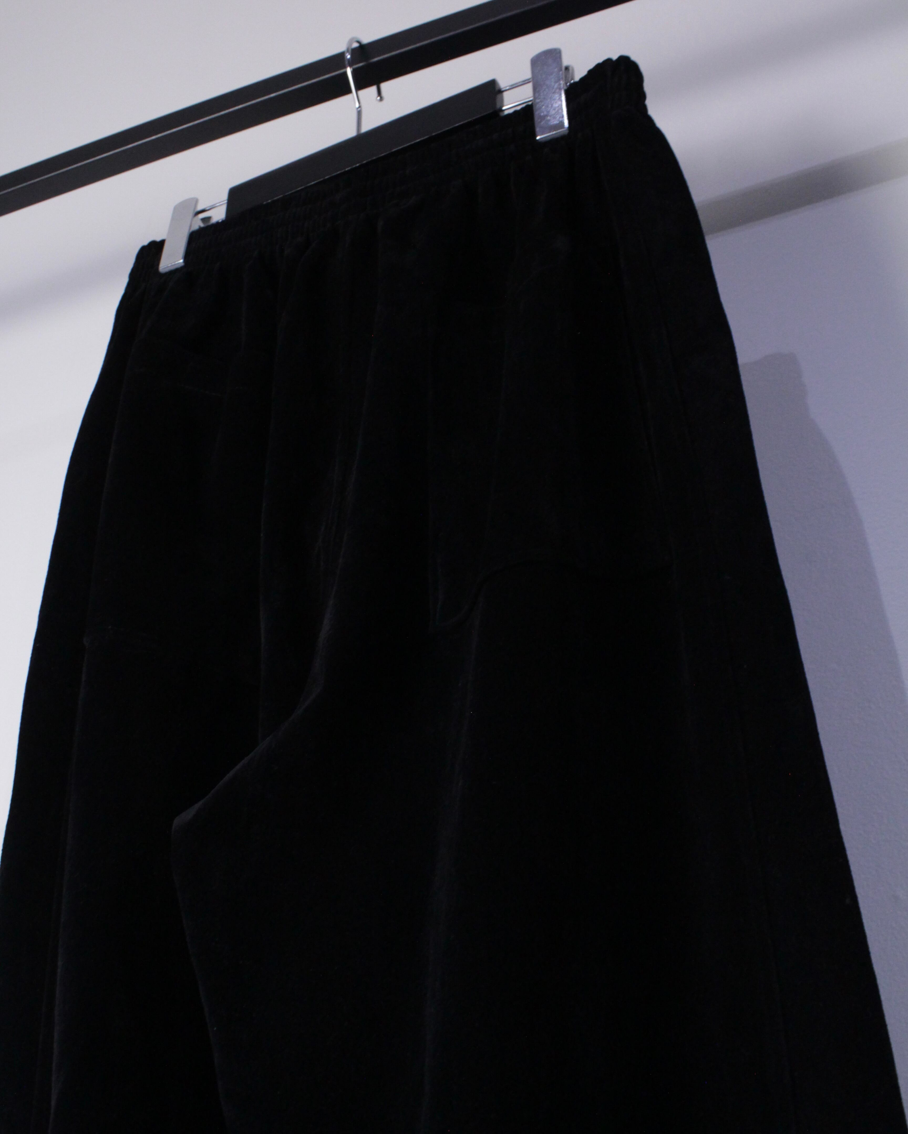 ハリがあり、ベロアのような起毛感のある素材を用いたイージーパンツ。