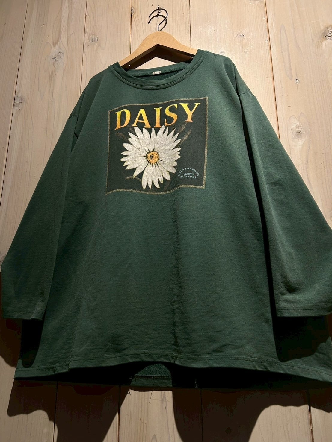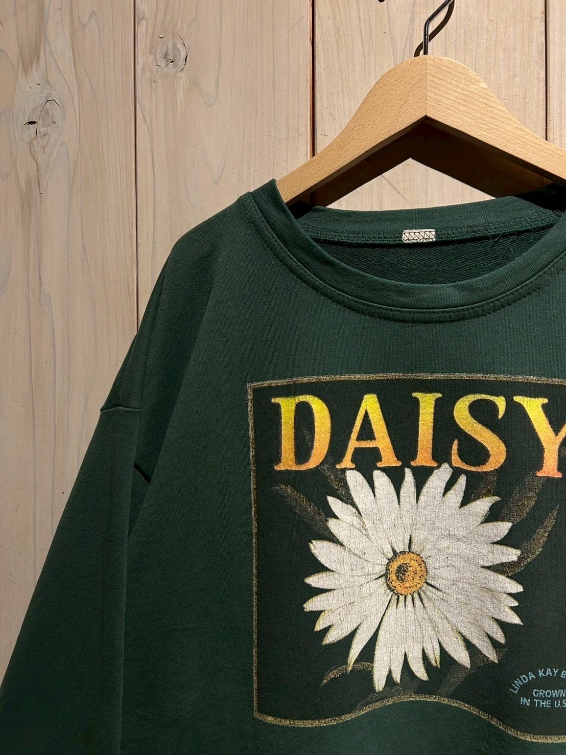 グリーンのボディに、リアルなタッチで描かれたデイジーの花をプリントした1着。シンプルなデザインながら主役を担えるクオリティの高さを誇ります。