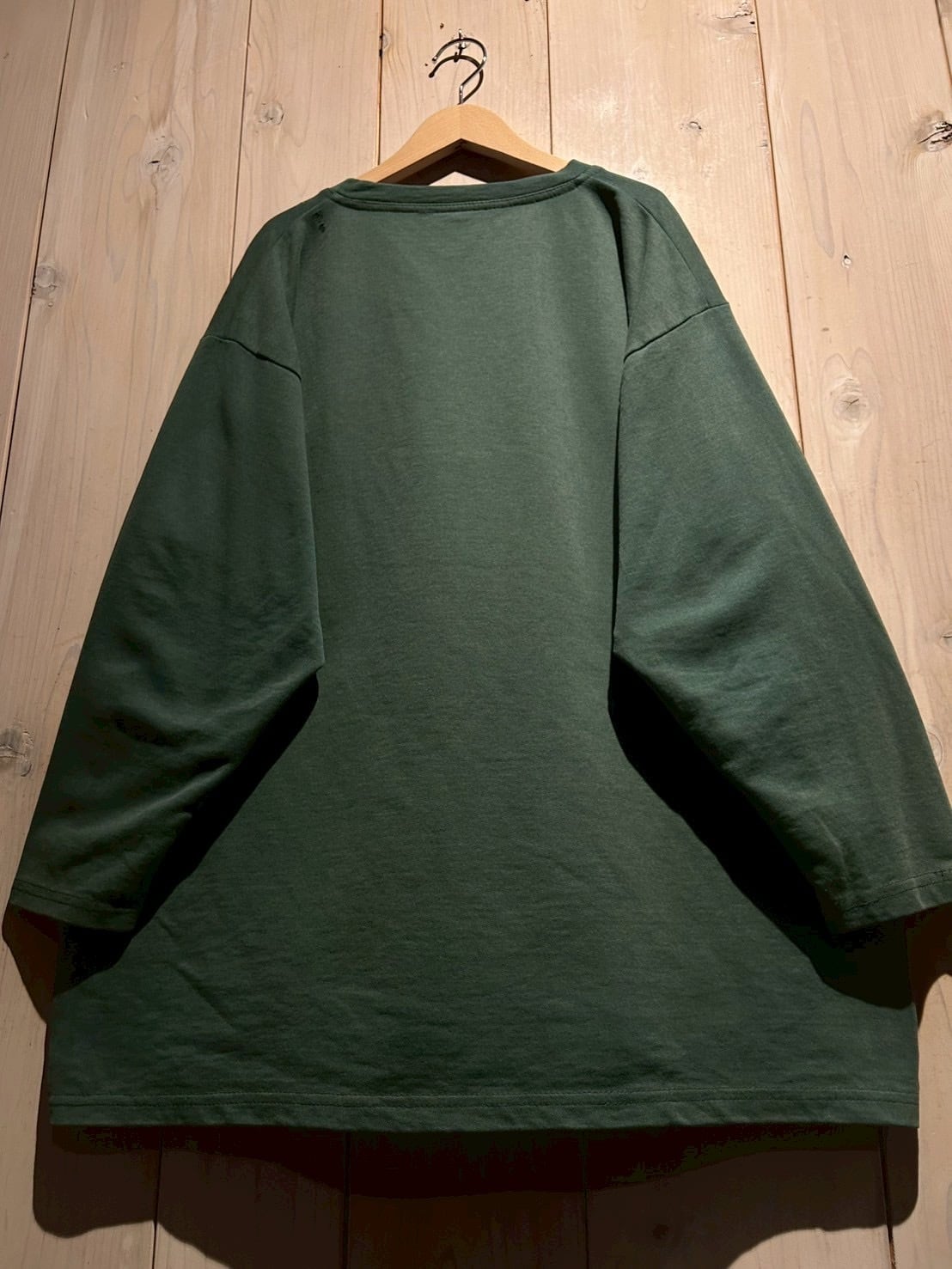 太めのアームホールに広めの身幅を持ったルーズなサイジング。肉厚すぎないロンT以上スウェット未満の質感で、軽やかさとしっかり感を両立。主役級の一枚としてはもちろん、アウターのインナーでチラ見せするのも◎