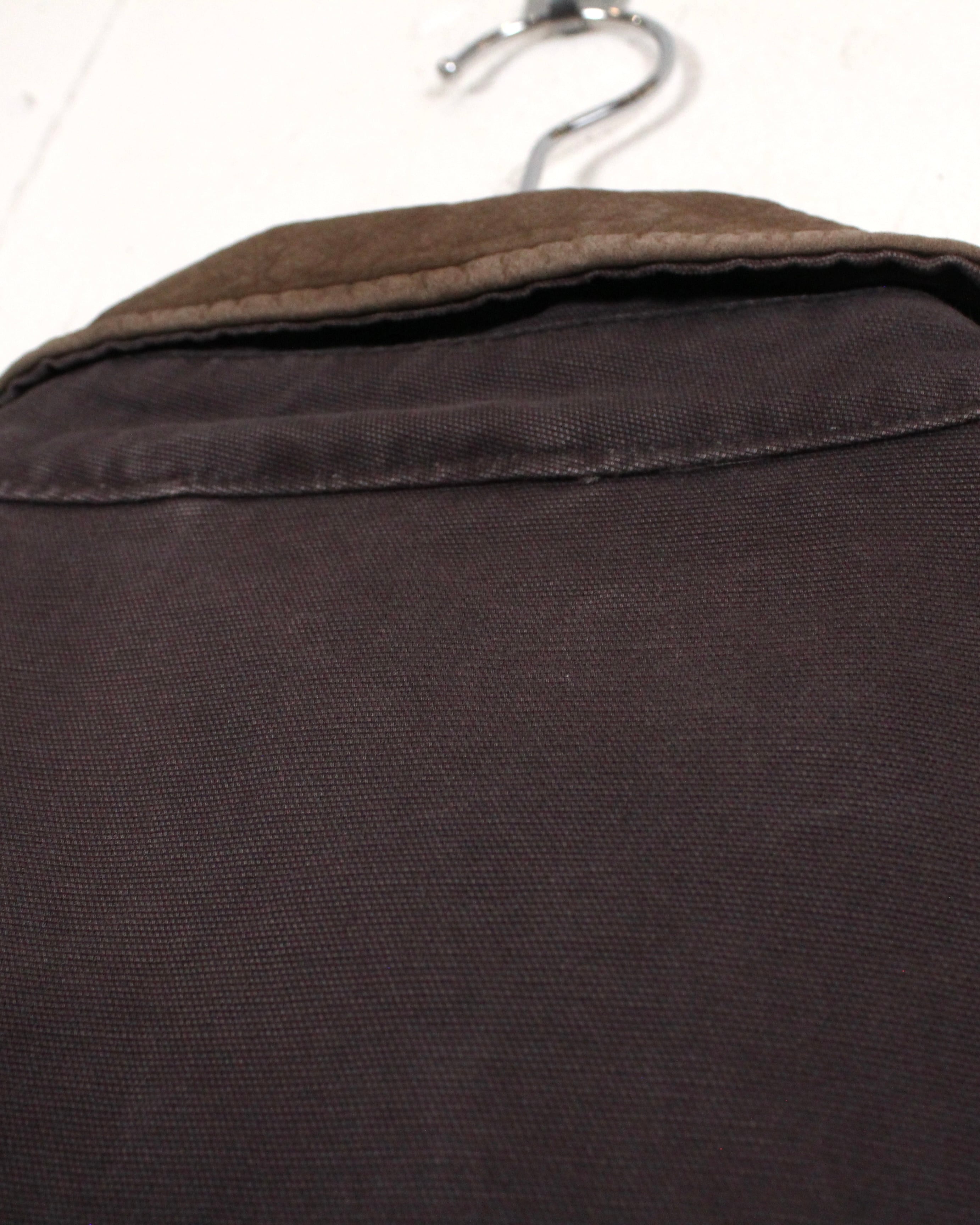 身幅を広く採りながら短丈のシルエット。ガシッとした生地の落ち感で体に沿って美しいシルエットを演出。タフなダック地をボディに用いたことによりガシガシ着る事ができ、長年愛用できる事間違いなしです。
