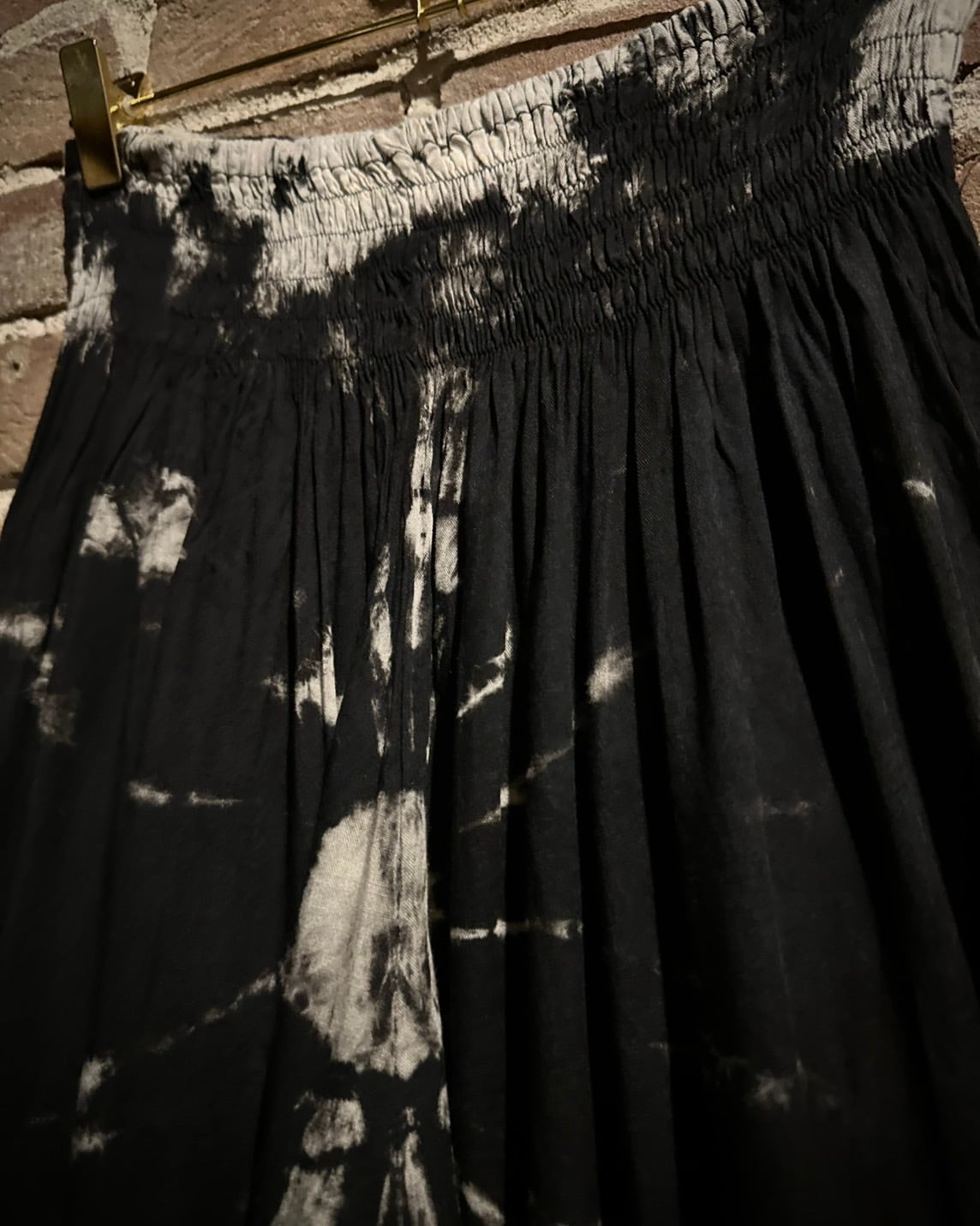 モノトーンのタイダイ染めによって仕上げられた、柔らかな質感のテキスタイルをボディに使用した袴シルエットのイージーパンツ。