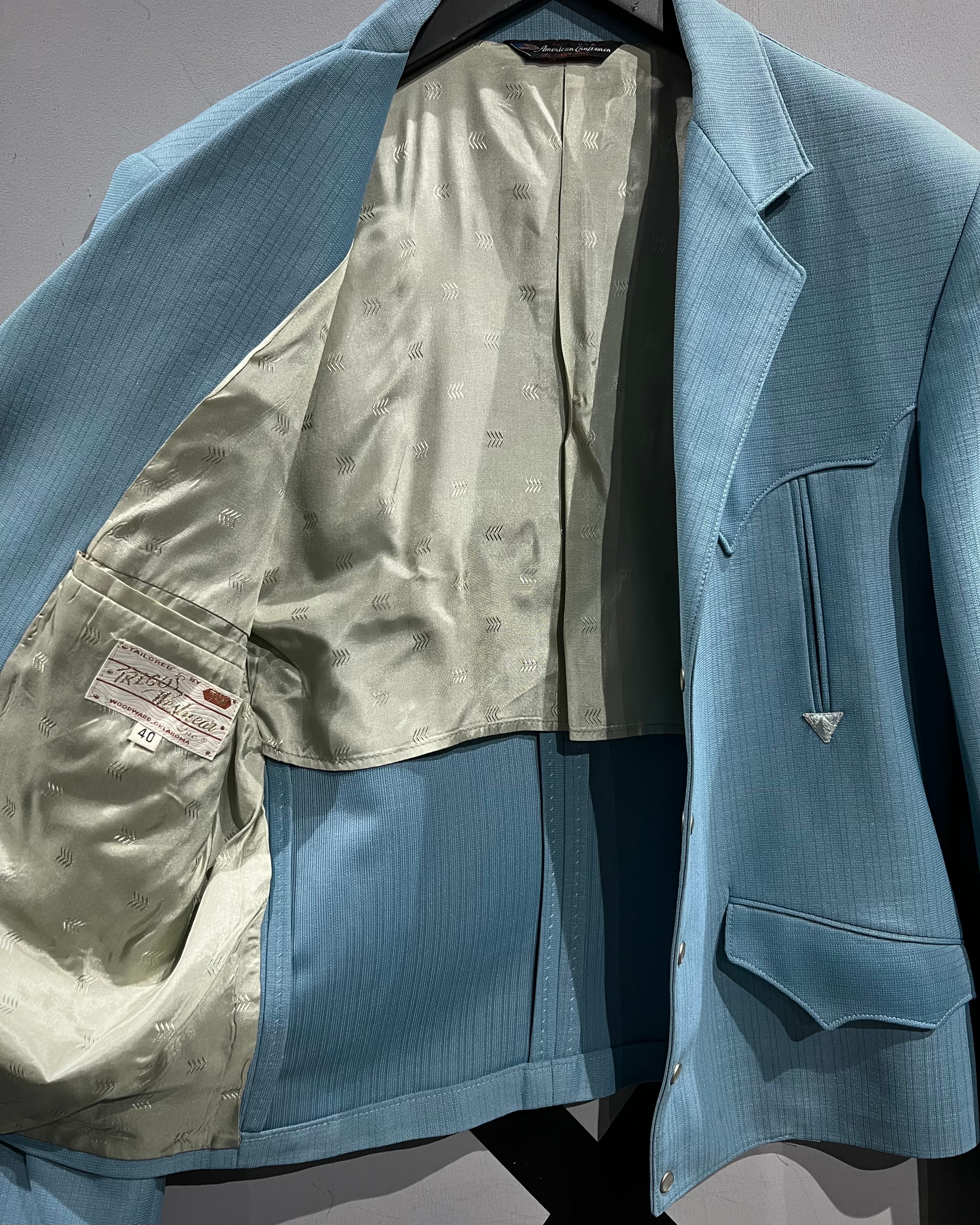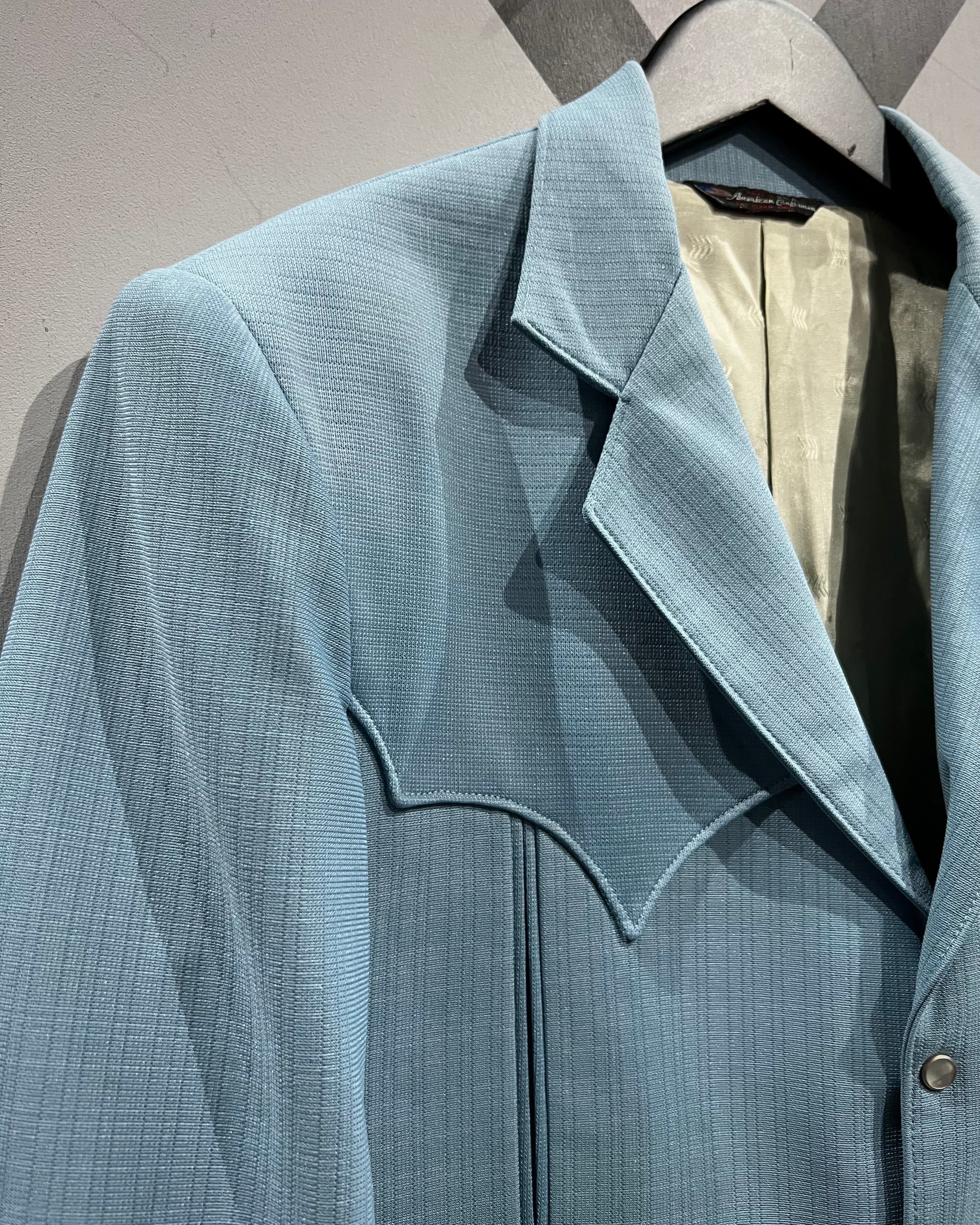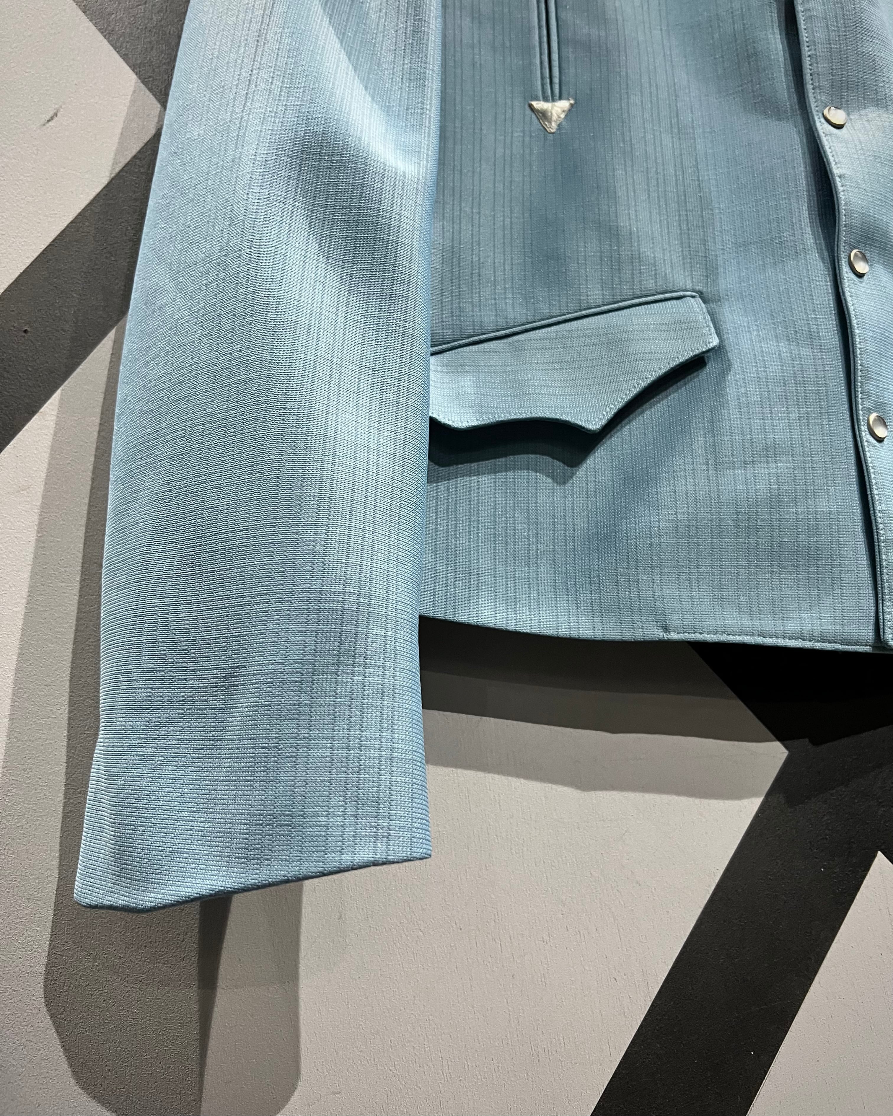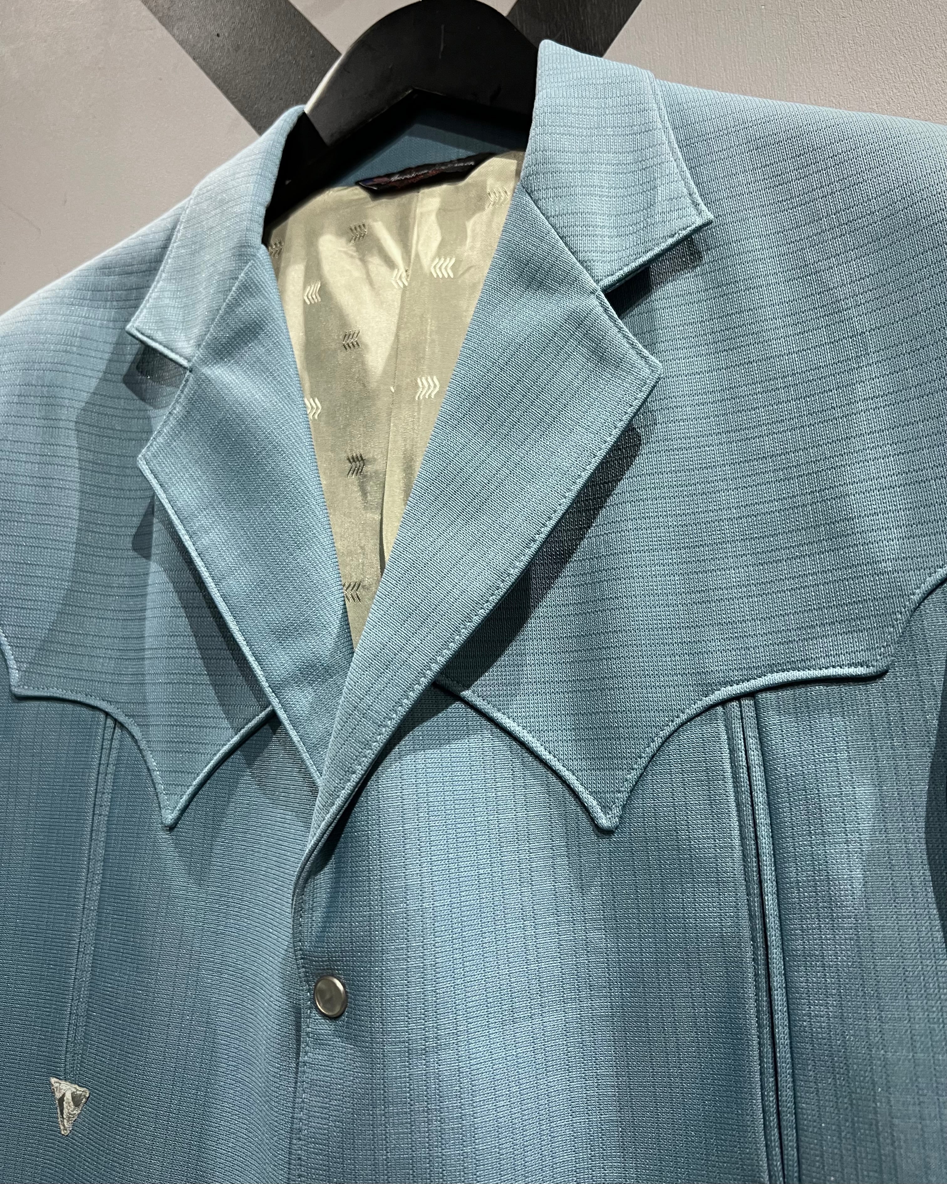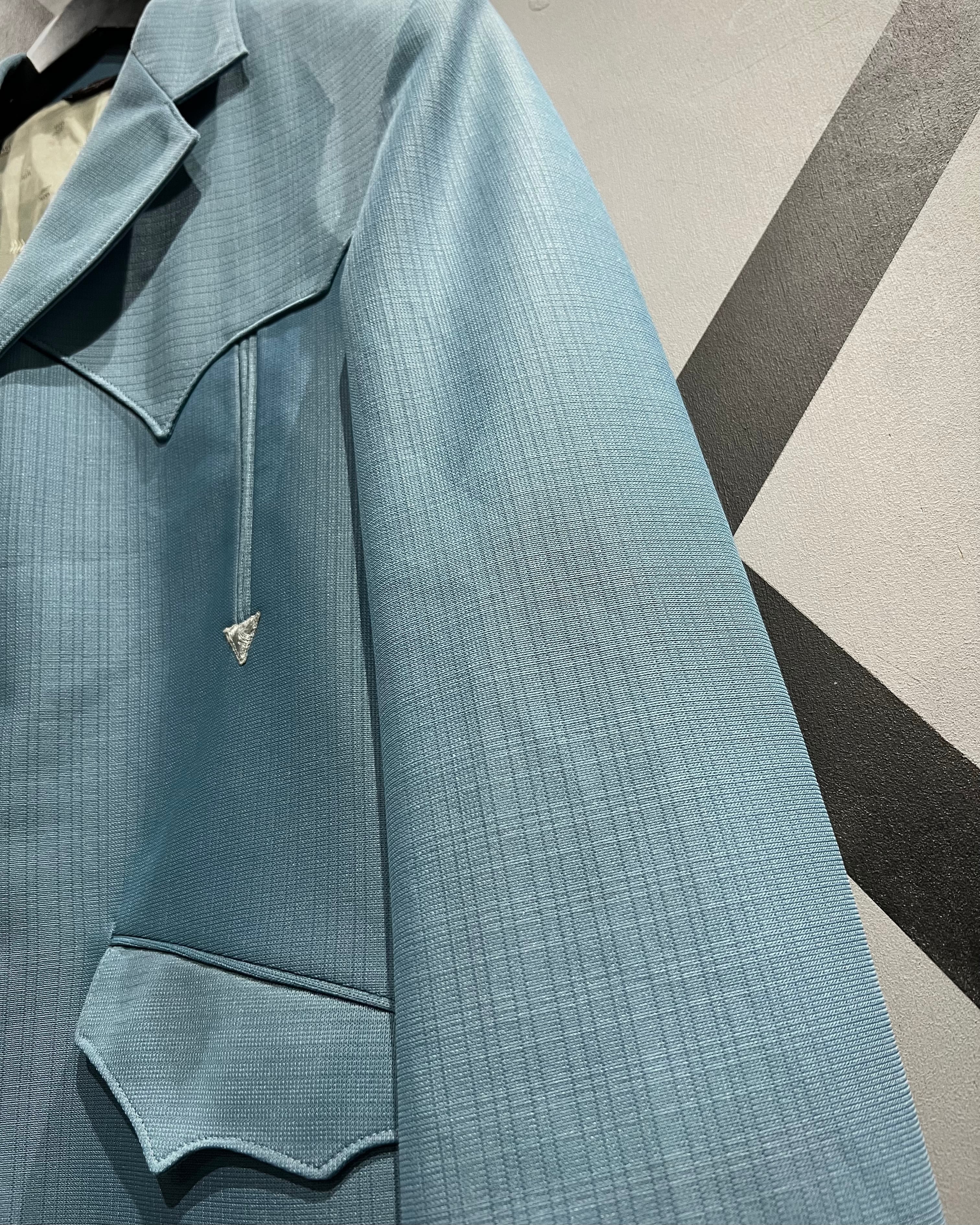 ハリのある上質な素材を用いた、ライトブルーカラーのウエスタンテーラードジャケット。