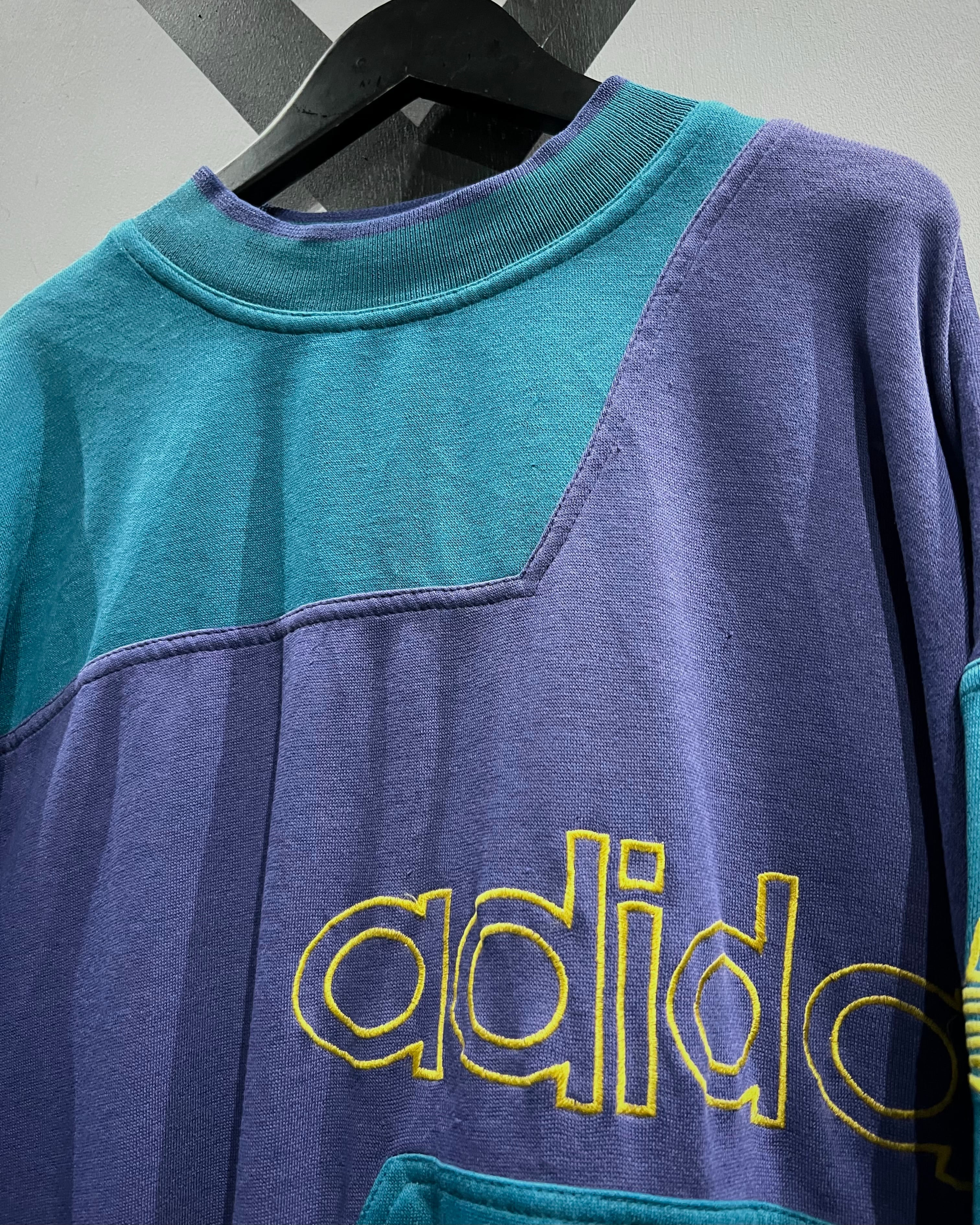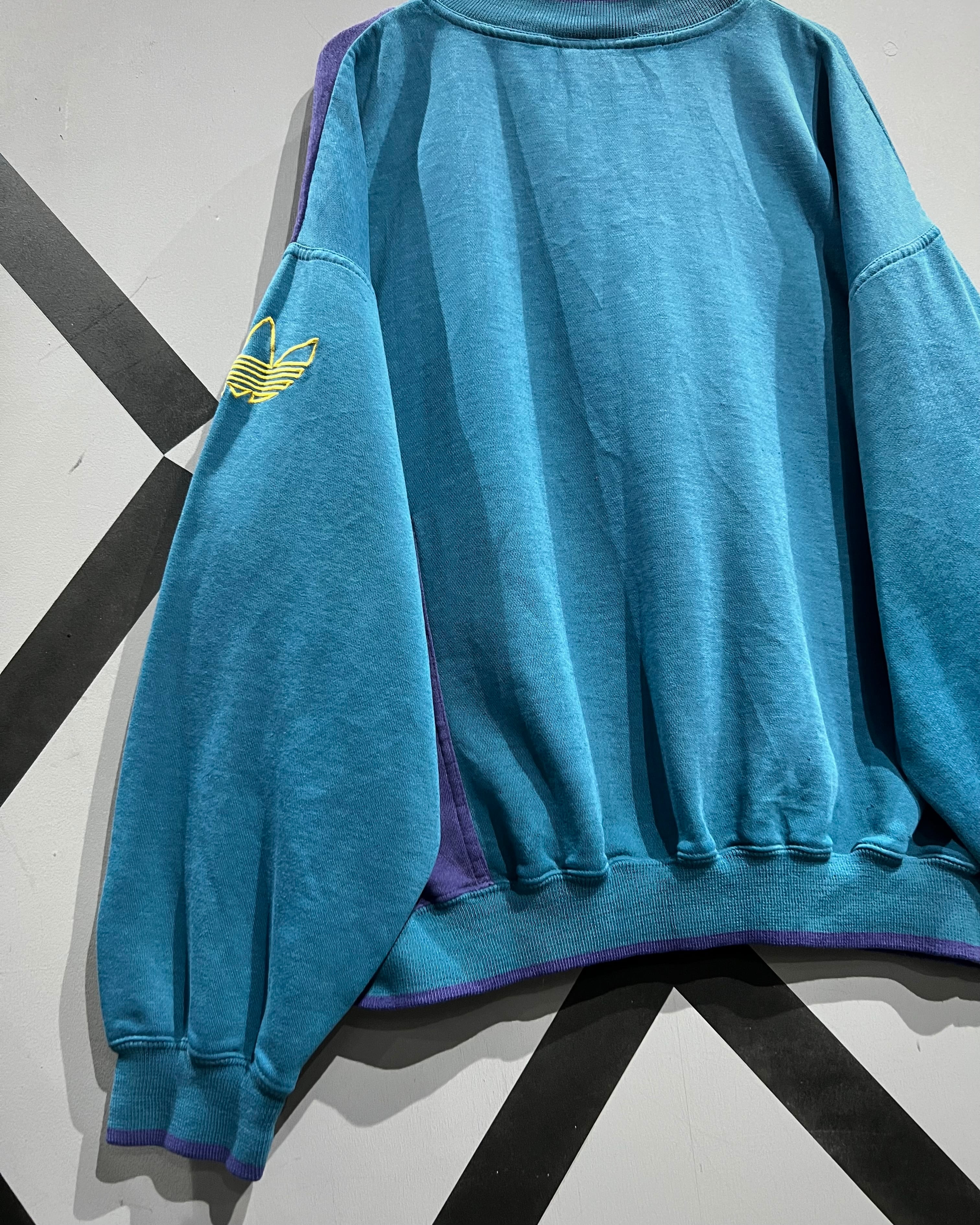 水色と紫の切り替え、左胸にadidasロゴ、アームにはトレフォイルロゴを施した1着。