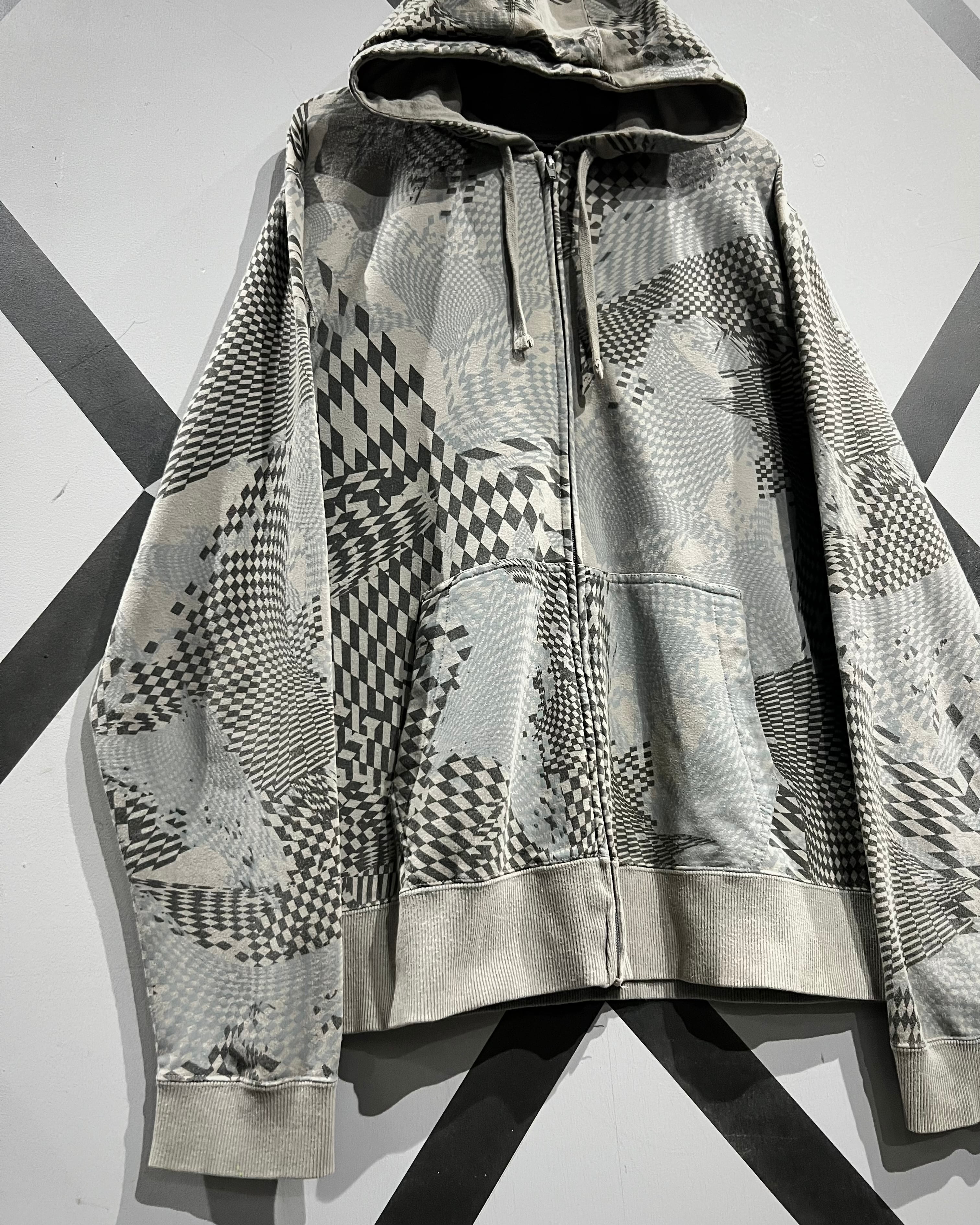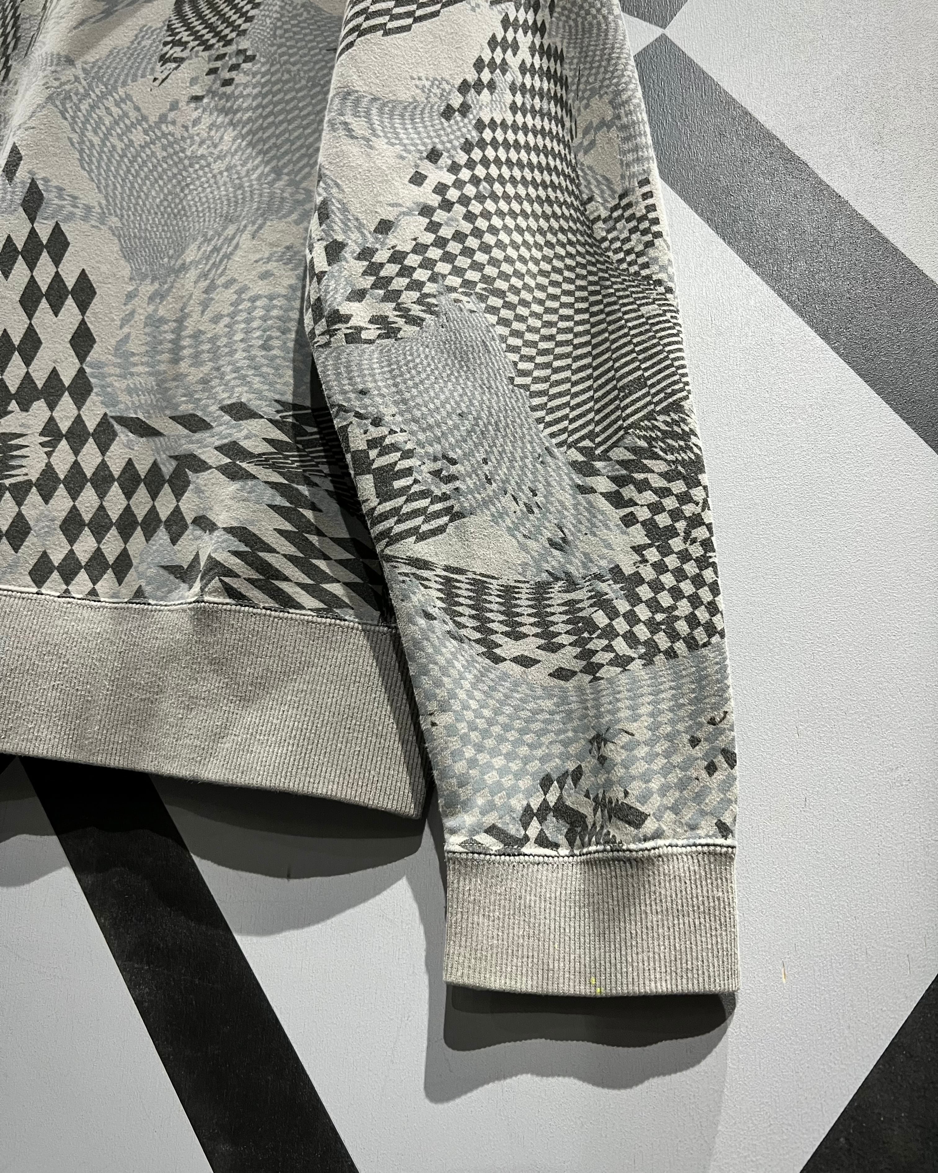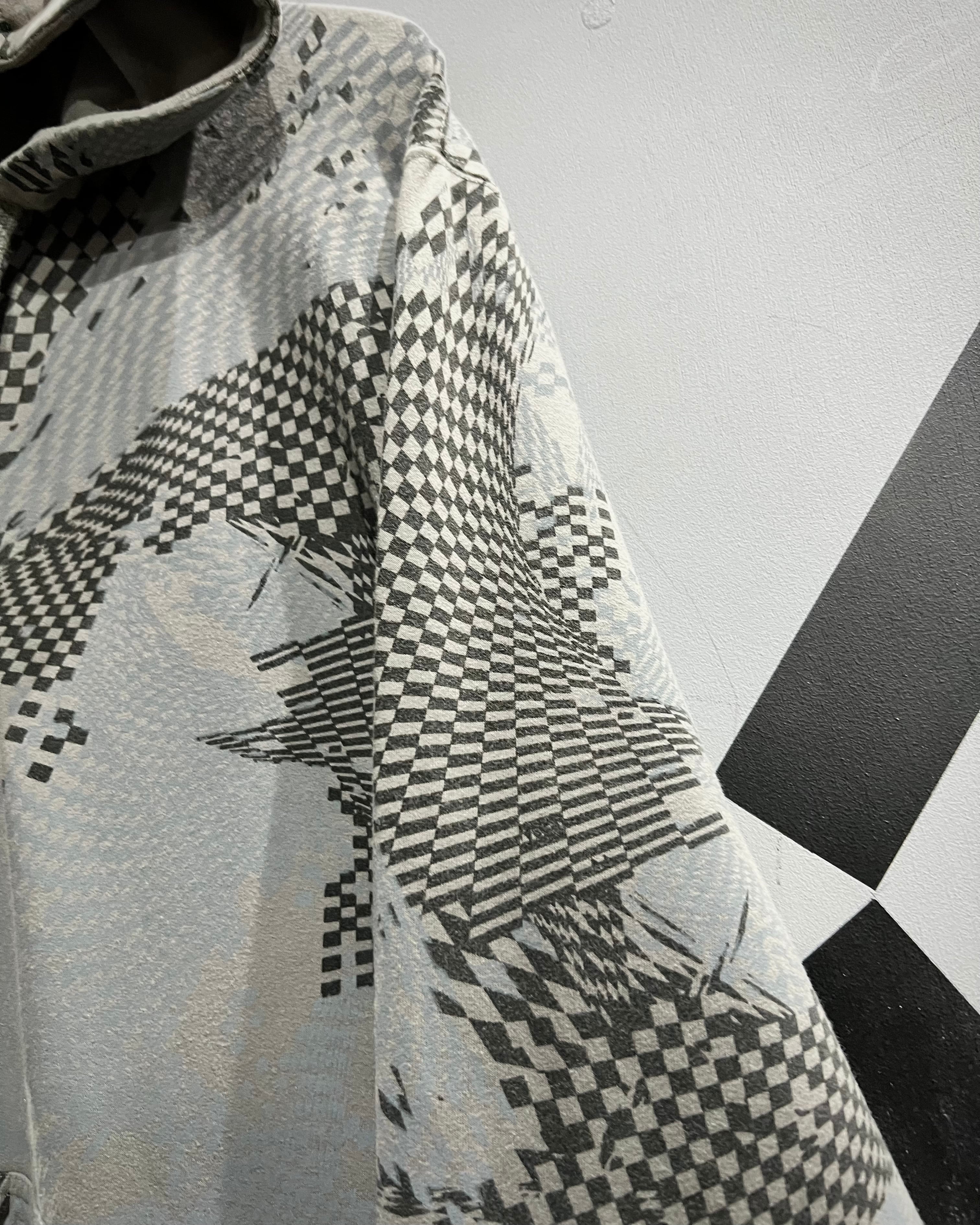 グレーのボディをベースに、幾何学模様を用いた錯覚アートを載せたデザイン性の高い1着。
