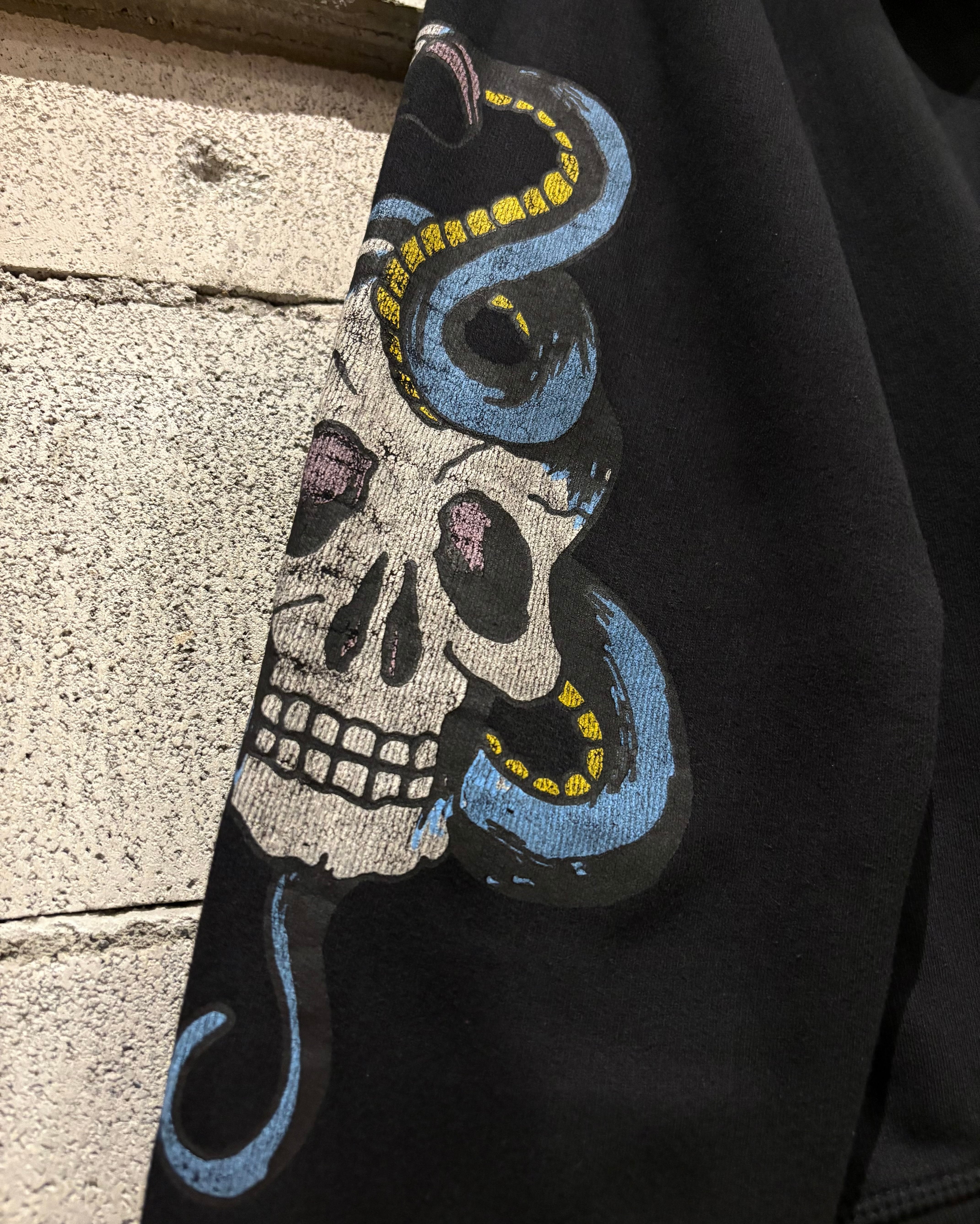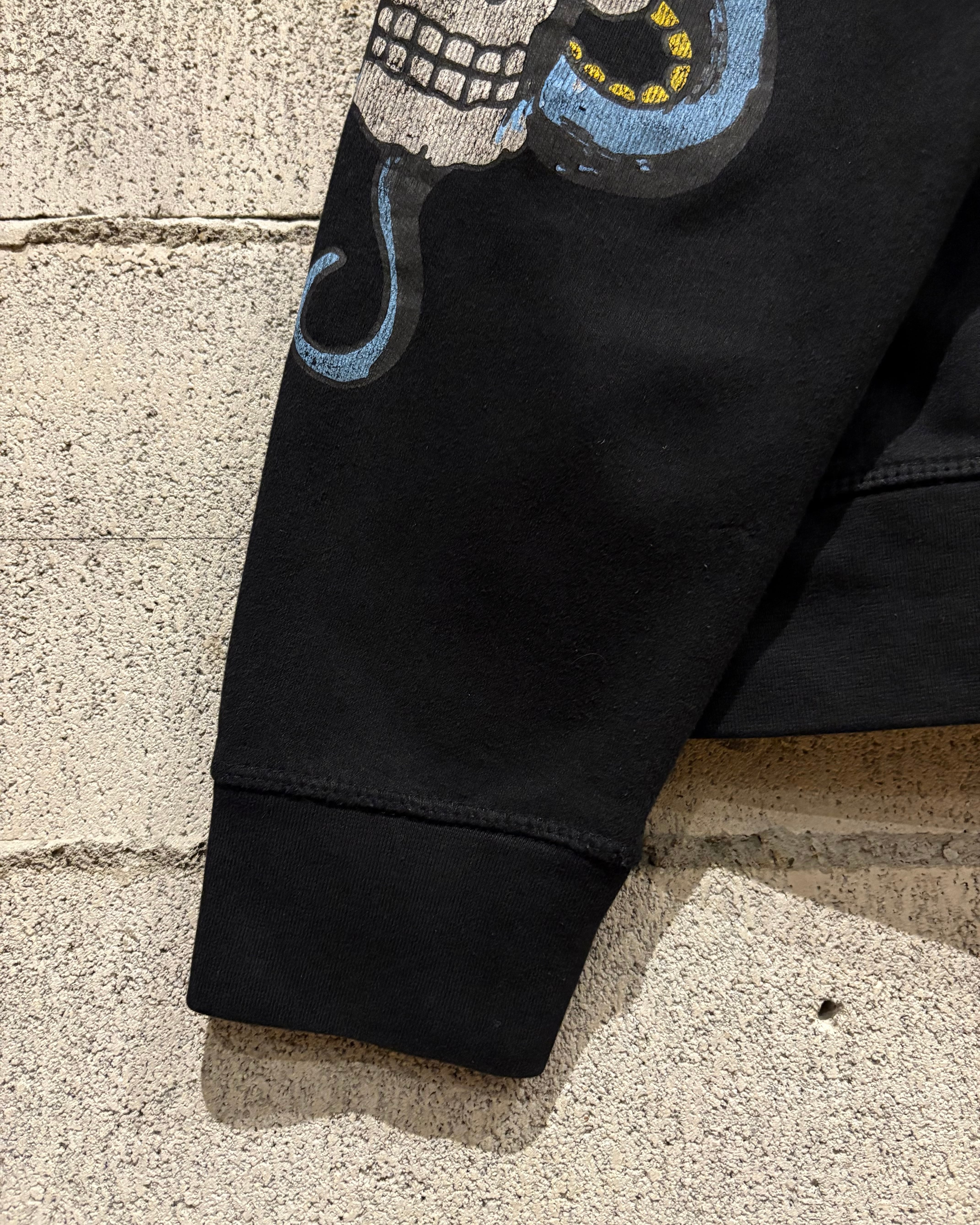 ライトオンスのスウェットのボディに、両胸には虎、左腕にはスカルに蛇をプリントした1着。