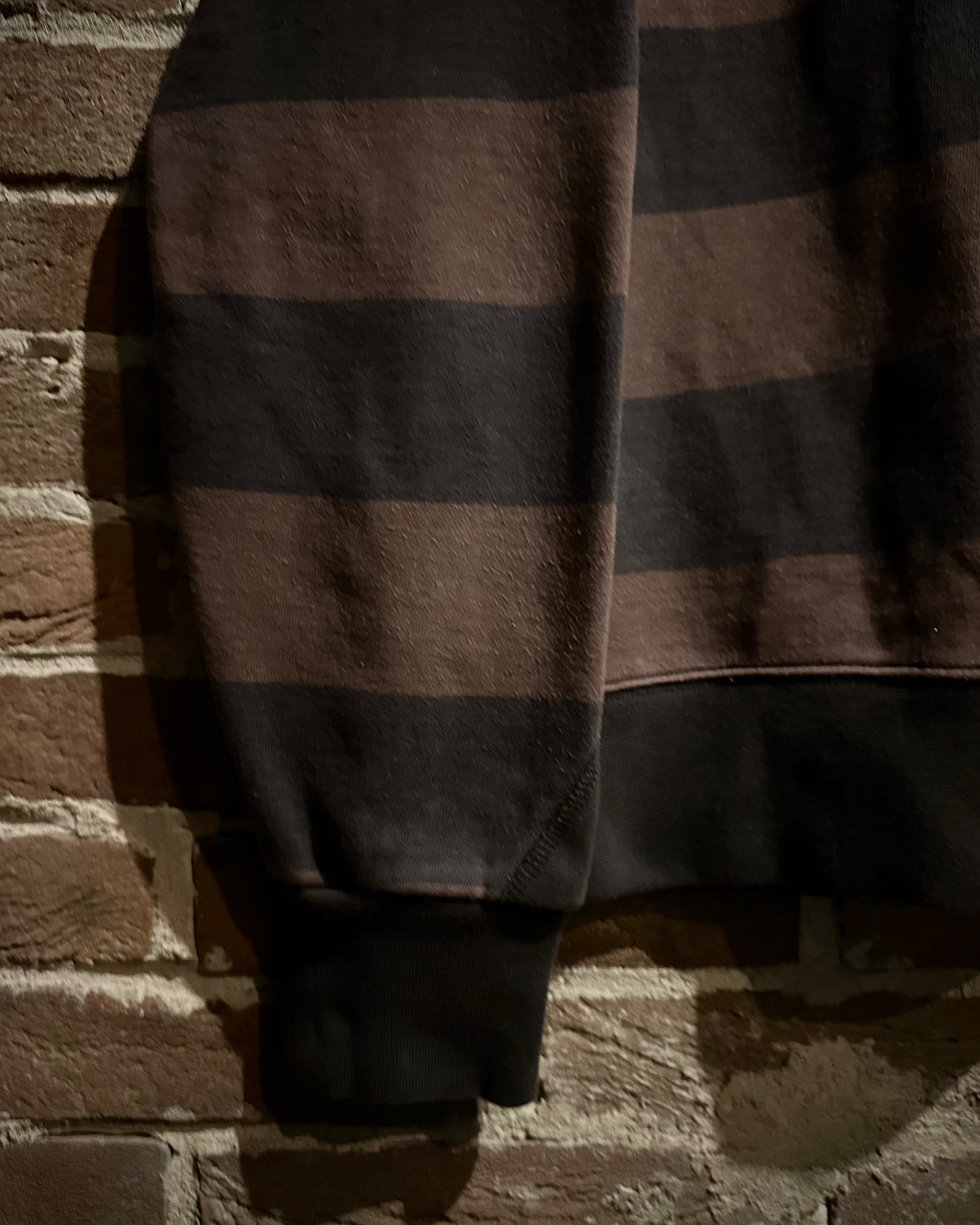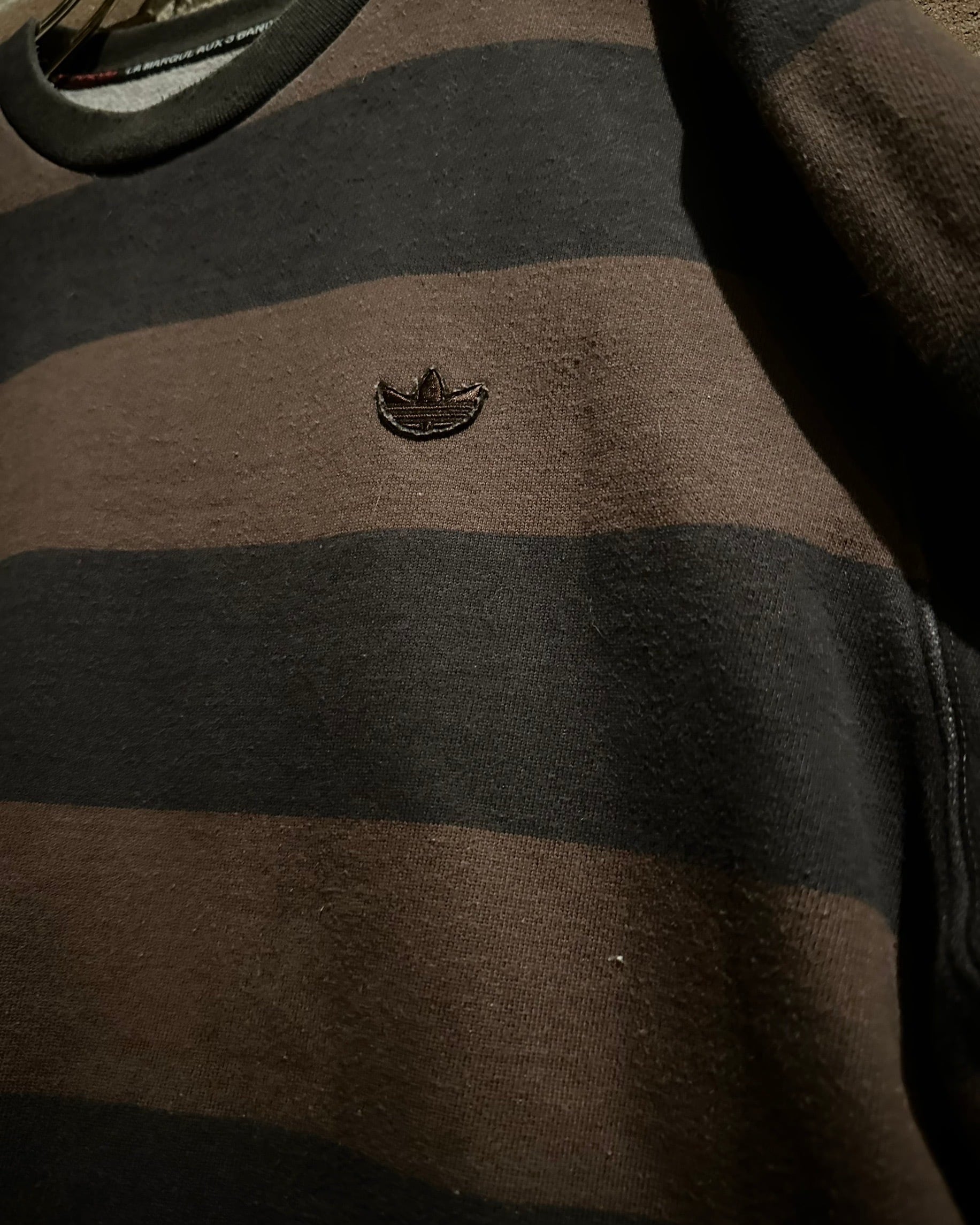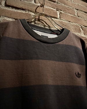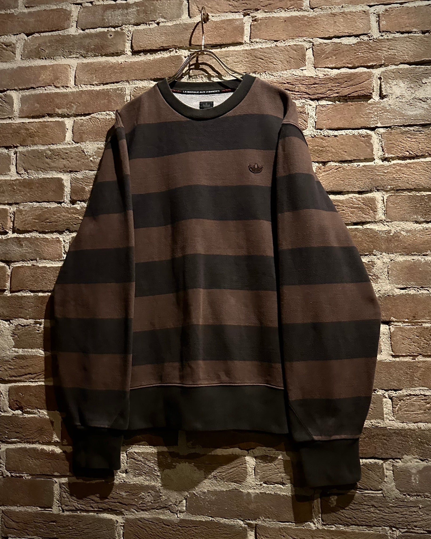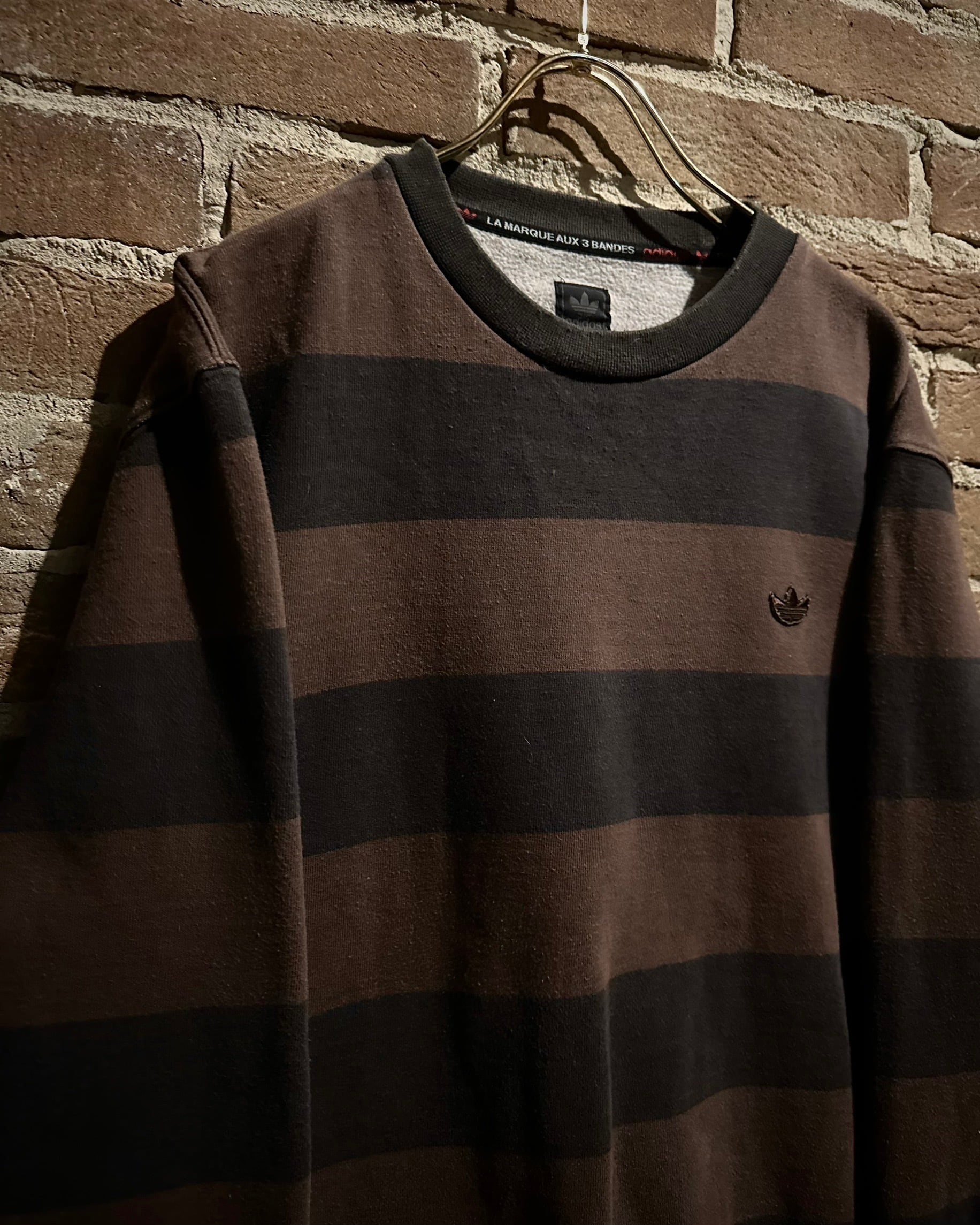 ブラウン×チャコールグレーのボーダー柄を載せた00's "adidas"のプルオーバースウェット。