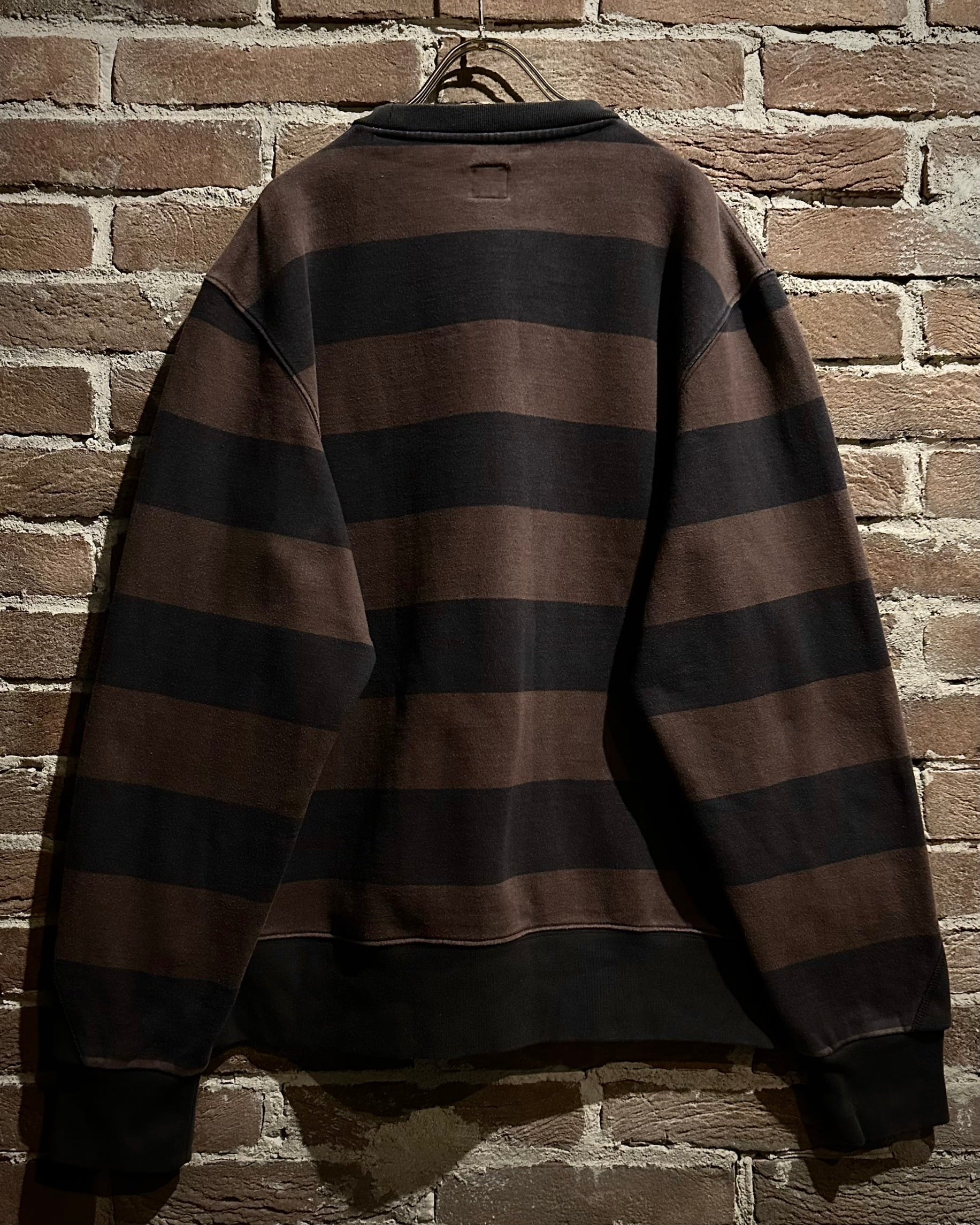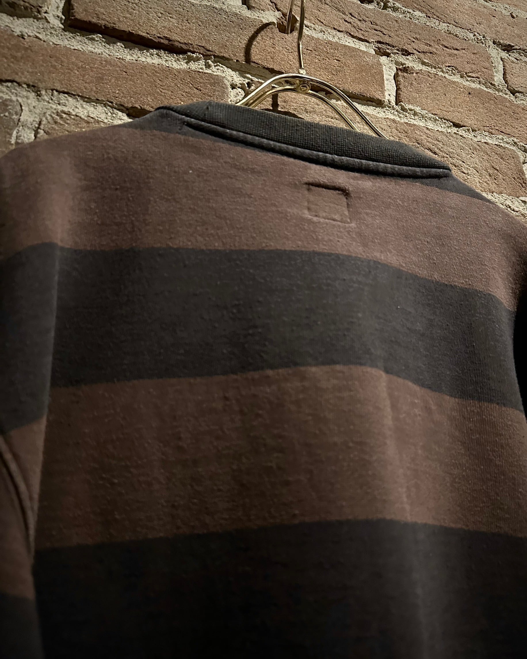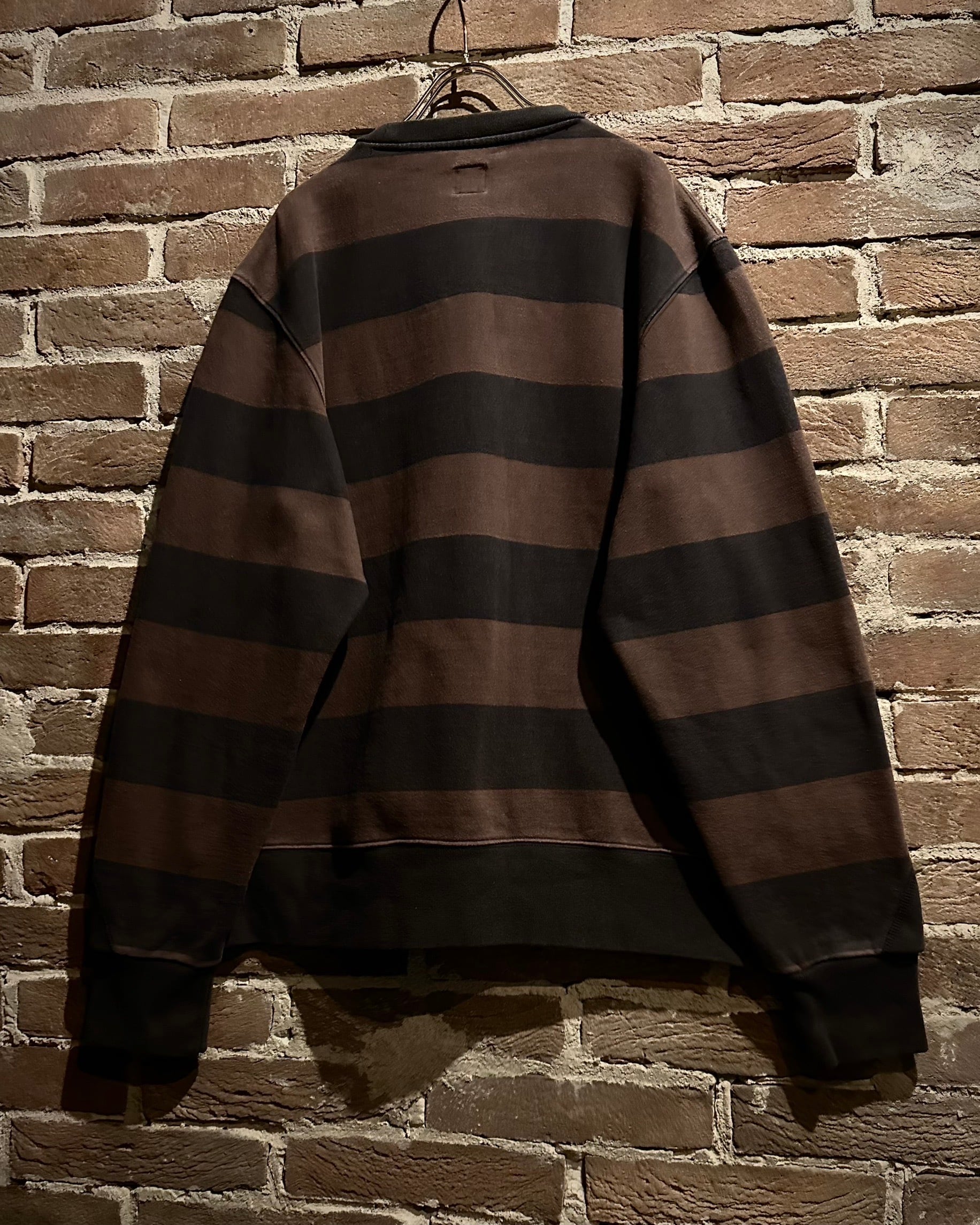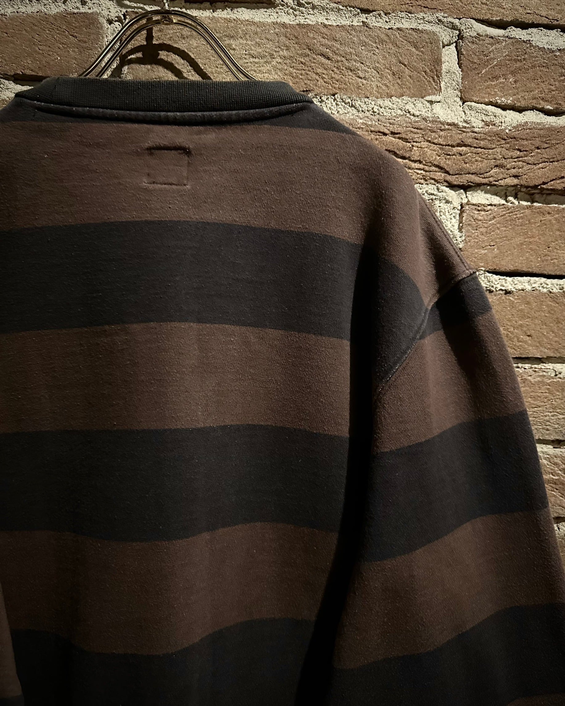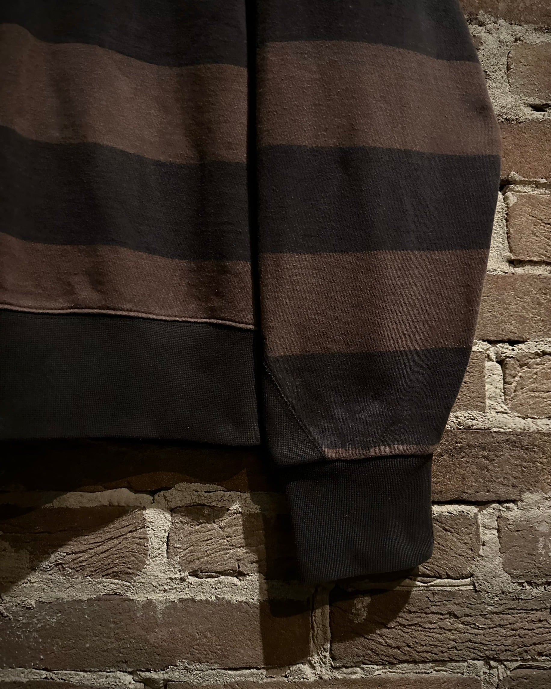 ブラウン×チャコールグレーのボーダー柄を載せた00's "adidas"のプルオーバースウェット。