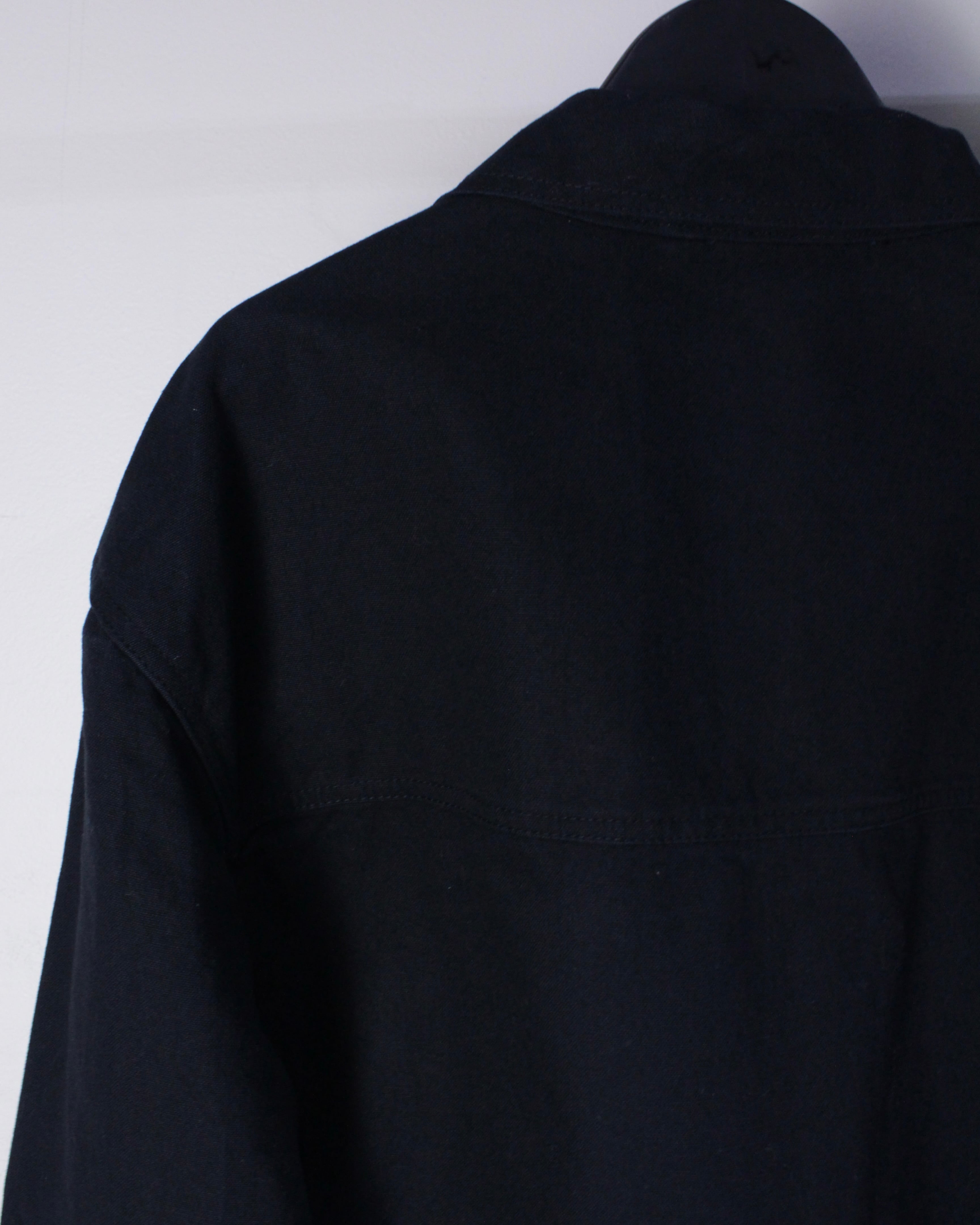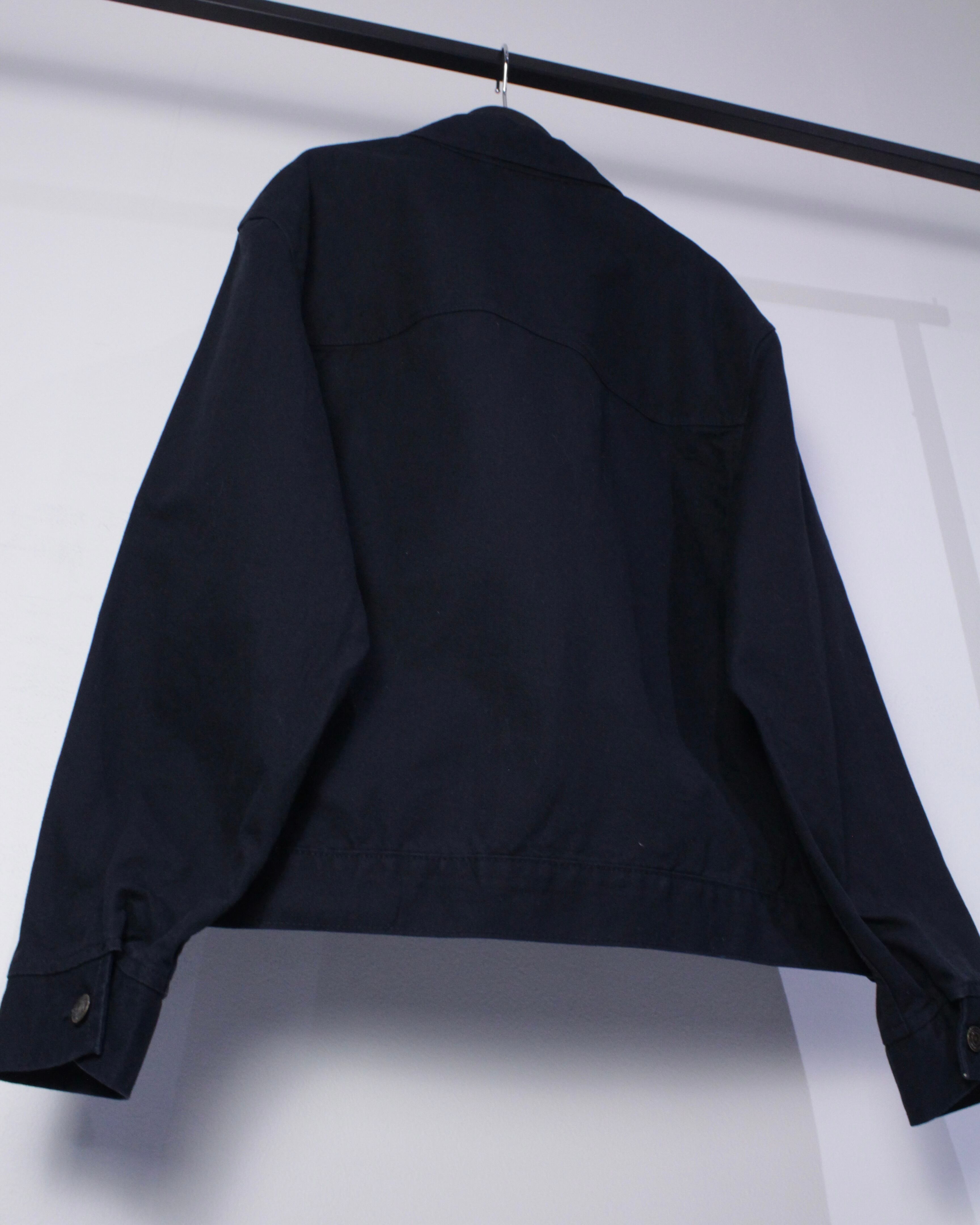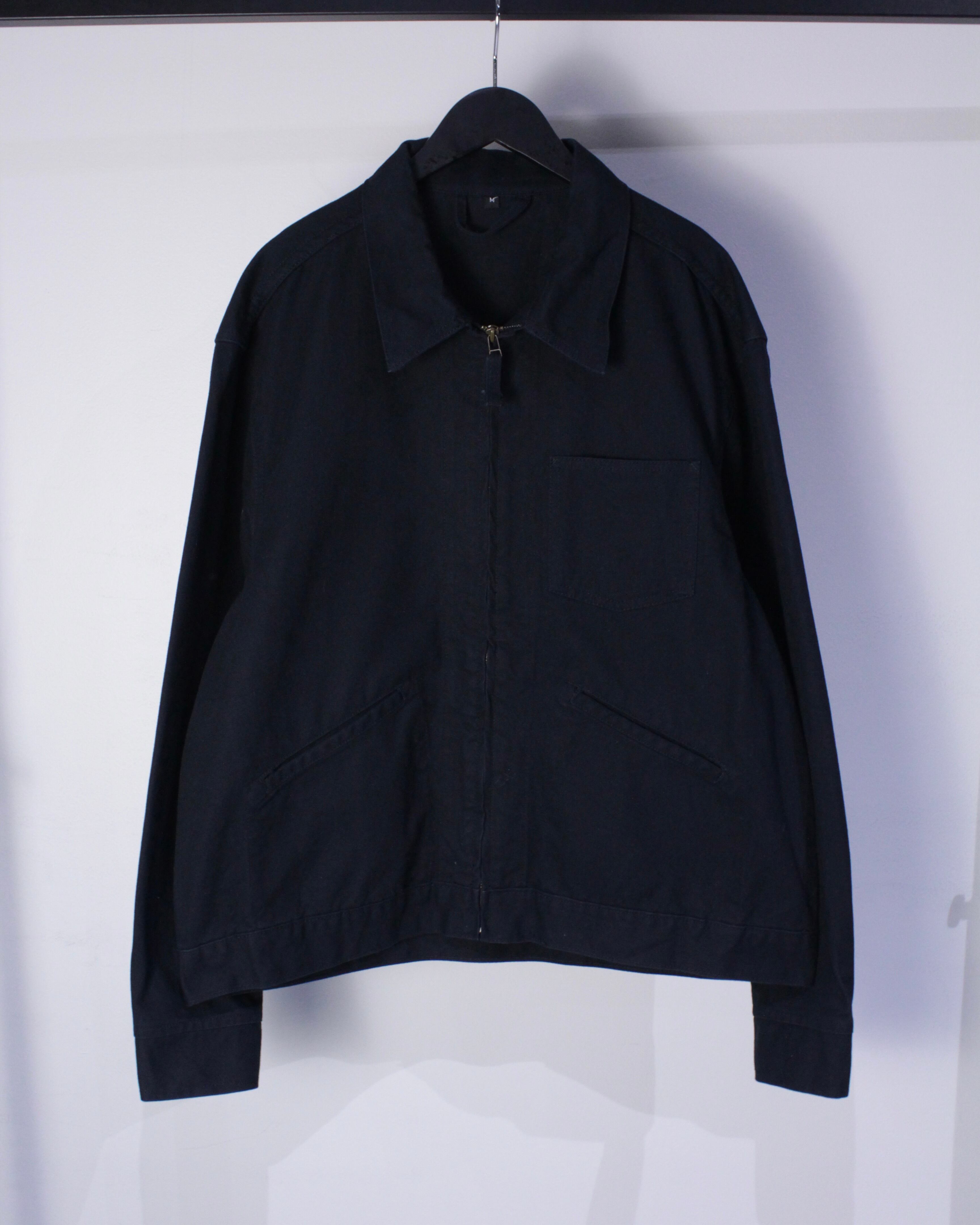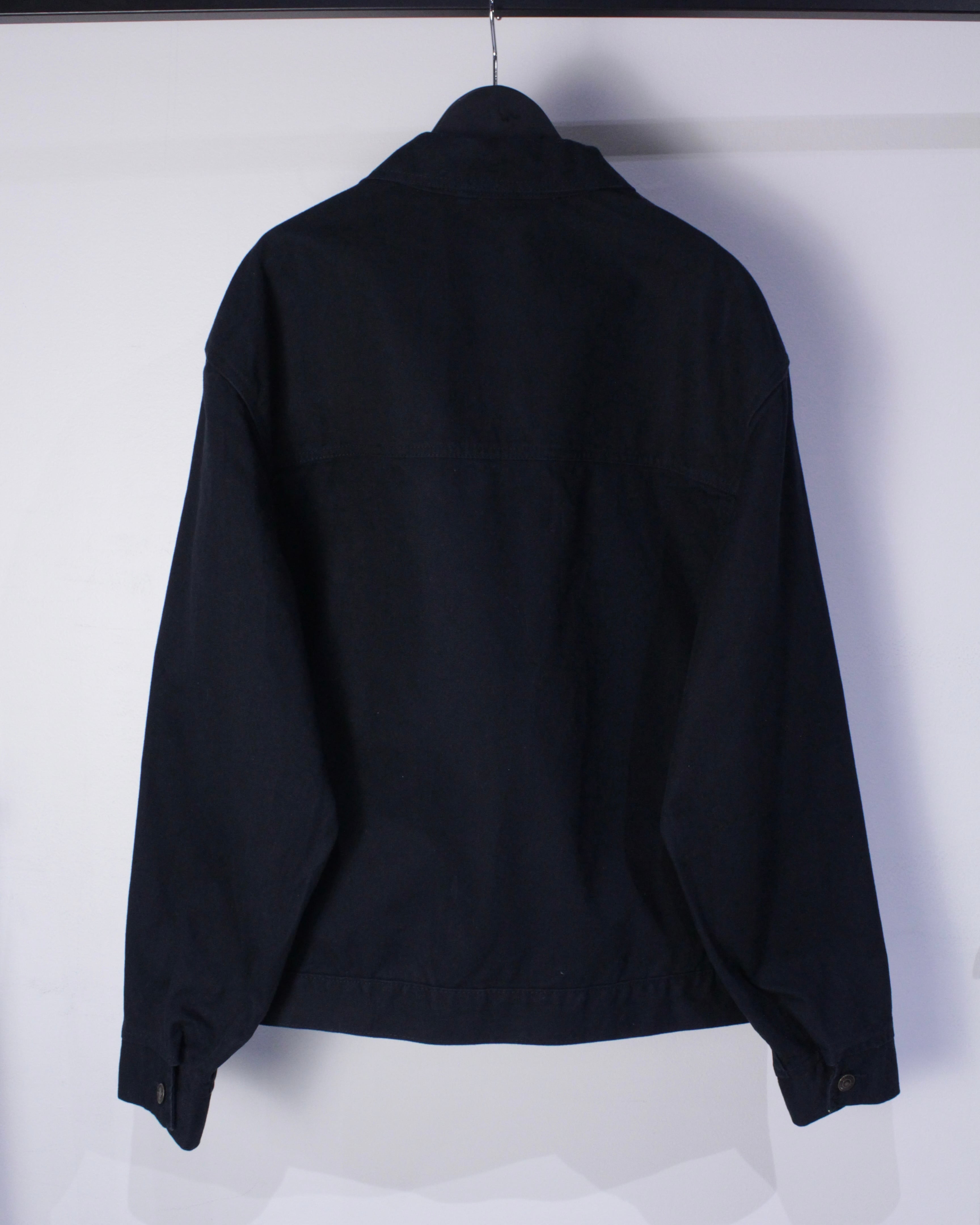 ハリのあるブラックのダック生地をボディに使用したジップアップジャケット。