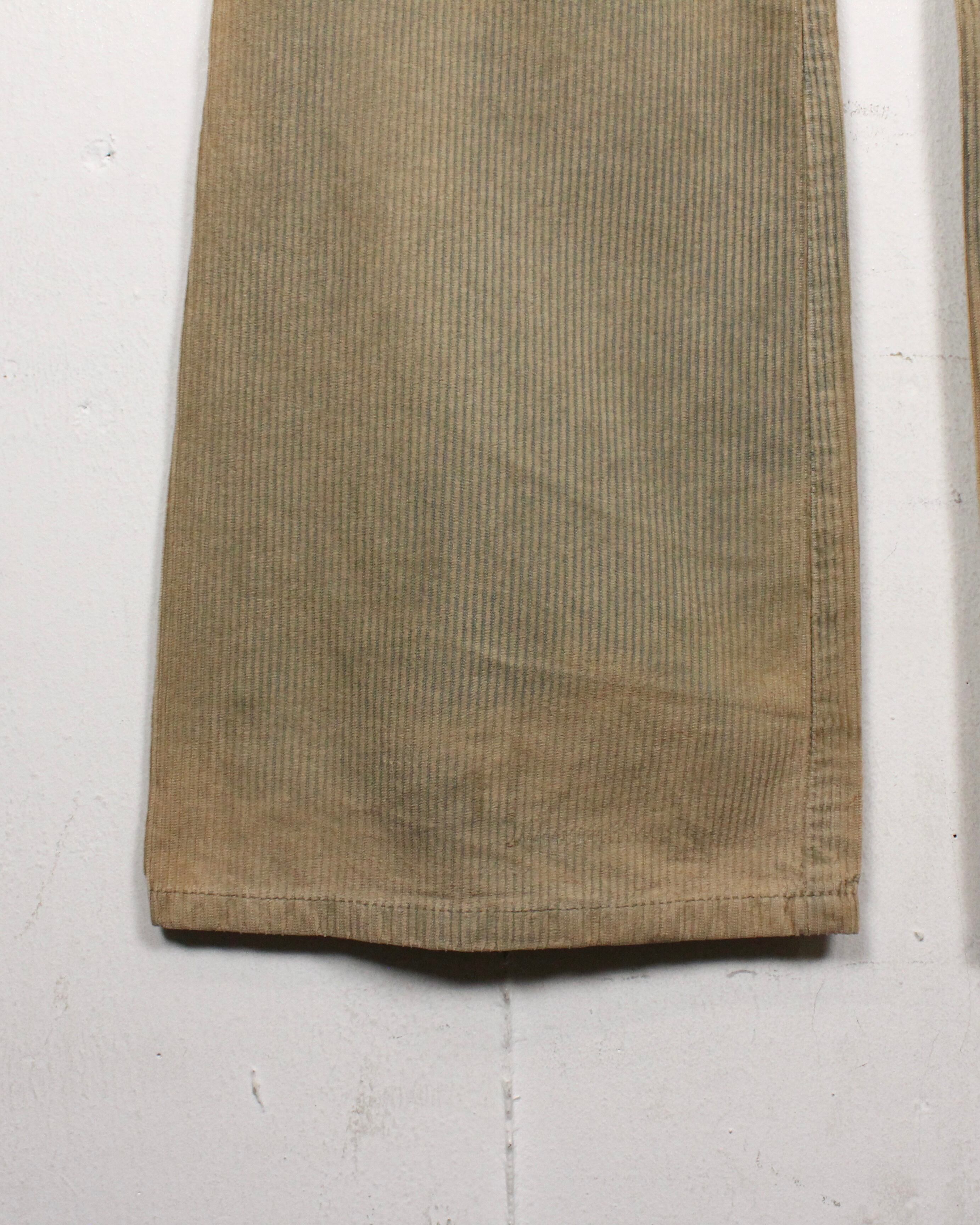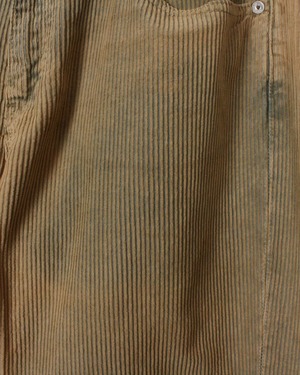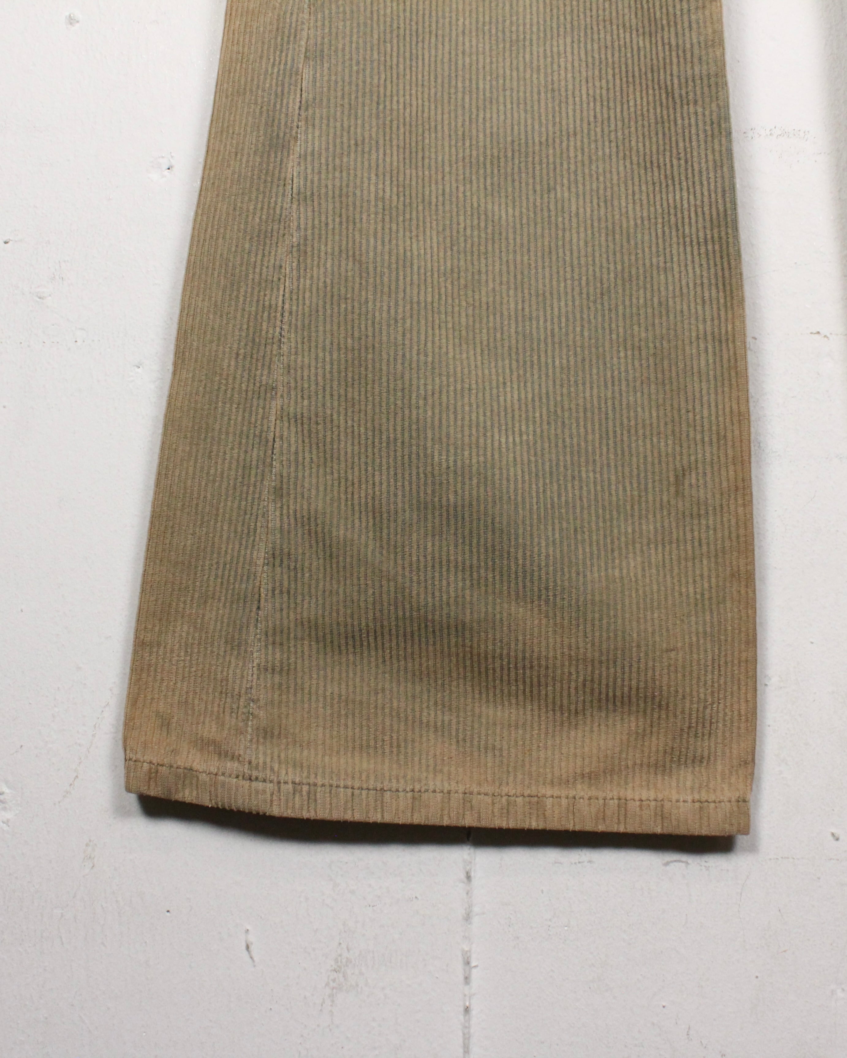 程良くゆとりを持たせた腿周りに、膝下からなだらかな広がりを見せる美しいシルエット。縦に流れるコーデュロイの畝と相まって、縦にスラっと長い見映えを生み出し、スタイルやコーディネートのバランスも美しく際立たせる極上の一本となっております。